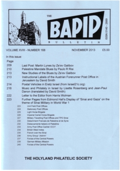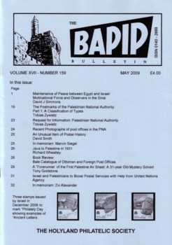 Markings on official and private mail from the Israeli Army (by Dr. H. H. Hirst) | 17–18, 1 plate | 9.700, 9.350 |