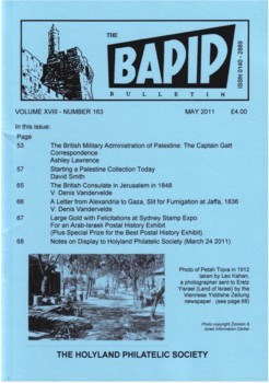 Notes on display to Holyland Philatelic Society (March 24 2011) ; [Jewish settlement in the Ottoman period] | 68, [cover] | 9.900, 1.220 1.270, 0.000 |