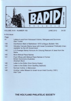 | Tower of David, masthead of the BAPIP Bulletin ; [pictured on 2011 Israeli stamp] | [cover] | 9.240 |