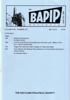 Lloyd Austriaco ship mail from the Holy Land, 1888 to 1914 (by V. Denis Vandervelde) | 186–193 | 1.130 |