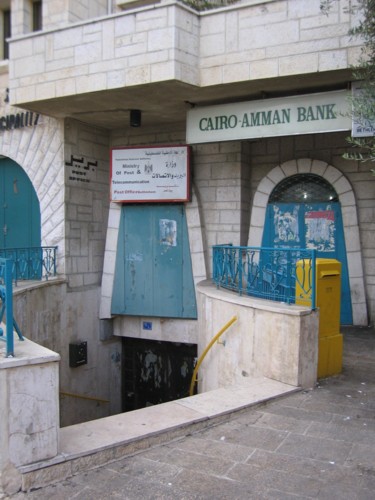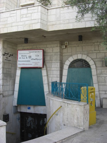 31°42' N, 35°12' E OpenStreetMap Google Maps Wikipedia | Governorate capital with 25,266 inhabitants (Census 2007, 1997: 21,673) and a large Christian minority, dominated by tourism and trading. The post office is inbetween the municpal offices and Cairo-Amman Bank on the west side of Manger Square. The first post office in the city was opened by the Ottoaman authorities in 1870. An Egyptian office worked between 10.06.1948 and 11.10.1948. Jordanian authorities operated a post office (district main PO) between November 1948(exact date?) and 5.06.1967. A post office under control of the Israeli military occupation forces existed from 10.07.1967. | ||||||||||||||