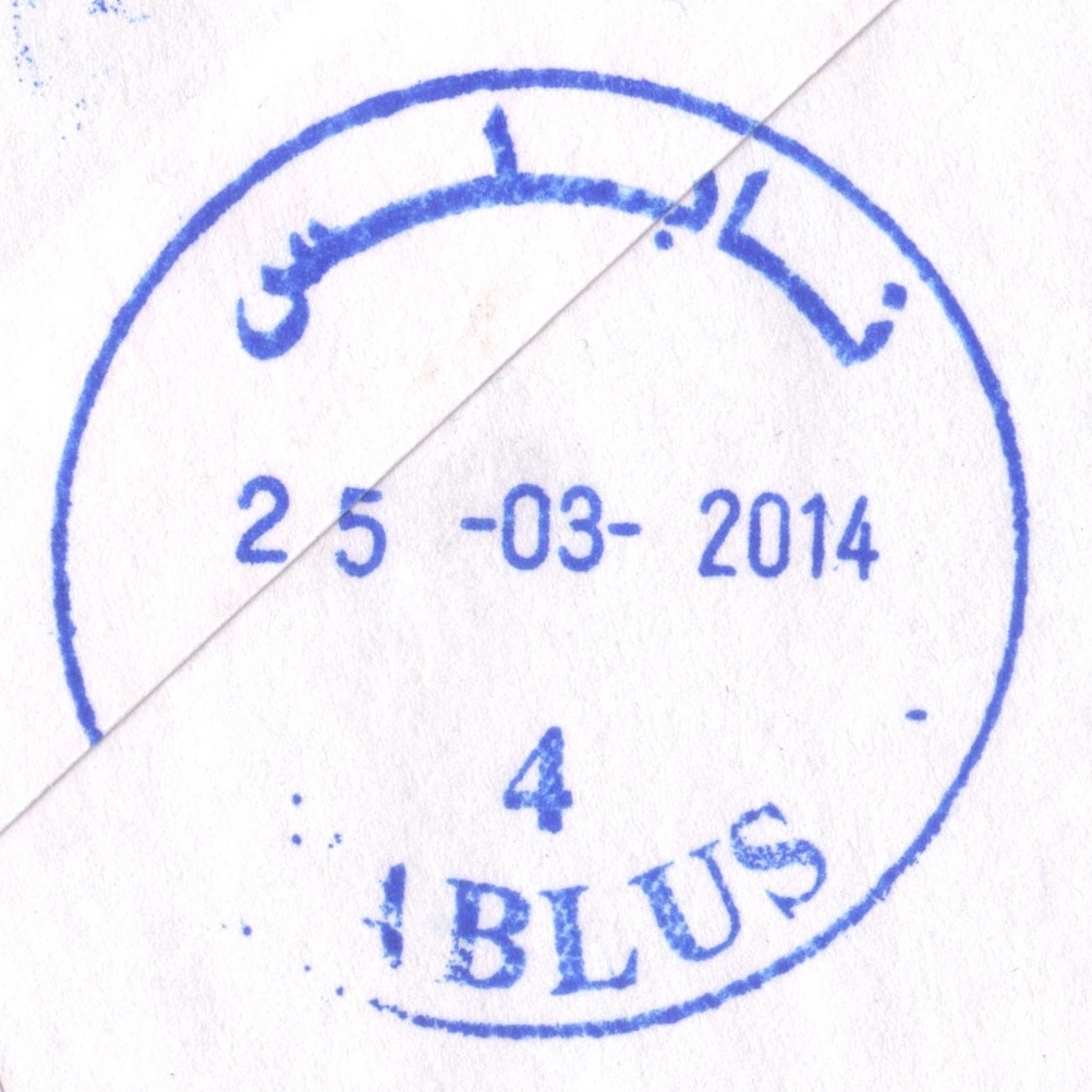 32°13' N, 35°16' E OpenStreetMap Google Maps Wikipedia | Governorate capital with 126,132 inhabitants (Census 2007, 1997: 100,034). The first post office in the city was operned in 1865 by the Ottoman authorities. Jordanian authorities operated a post office (district main PO) from (?)##. A post office under control of the Israeli military occupation forces existed from 13.07.1967, a 'Nablus Market Branch' (pmk: 'Nablus 3') opened 16.06.1971 but closed 31.03.1973. The current main office is on King Faisal road, next to PalTel and municipal offices. | ||||||||||