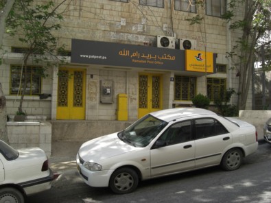 31°54' N, 35°12' E OpenStreetMap Google Maps Wikipedia | Seat of the PNA administration and most ministries. Ramallah forms an almost contiguous conurbation with al-Bireh (the Governorate muhfaza), Beitunia and further surrounding villages. The main POs is on al-Barid Street on the corner of Muntaza Street (Park St). Jordanian authorities operated a post office (district main PO) between 20.11.1948(exact date?) and 5.06.1967. A post office under control of the Israeli military occupation forces existed from 11.07.1967. | ||||||||||