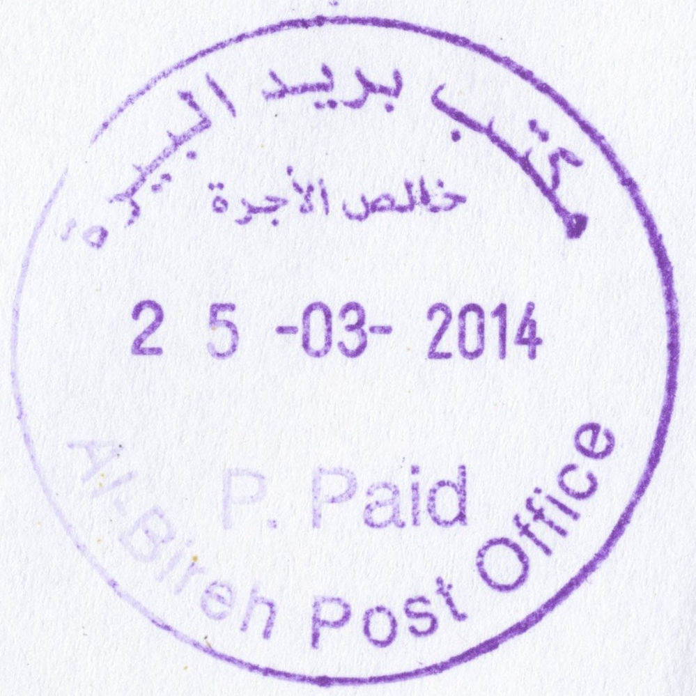 31°54' N, 35°13' E OpenStreetMap Google Maps Wikipedia | The largest city and capital of Ramallah & al-Bireh Governorate, just E of Ramallah itself, forming one contiguous conurbation. Population in Census 2007 was 38,202 (1997: 27,856, 1982: 13,037, 1945: ca. 3,000). The post office is in the "Palestine Post Building" (Directorate General of MTIT) on al-Muntazah street. An Ottoman office was first opened in 1910 . Jordanian authorities operated a post office (upgraded from a postal agency on 16.02.1956) between 6.07.1952 and 5.06.1967. A post office under control of the Israeli military occupation forces existed from 27.08.1967. | ||||||||||