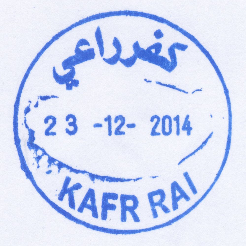 ![]() | Kafr Rai كفر راعي Kfer Raei, Kafr Ra'i | Pop.: 7,364 Govern.: Jen Opened: 6.03.2003 PO Number: 712 Postcode: 270 | |||||||||