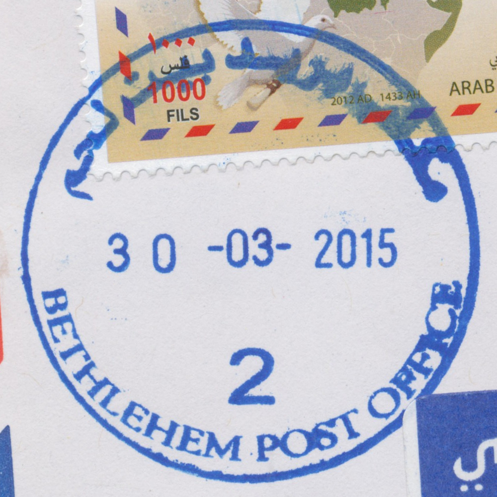 31°42' N, 35°12' E OpenStreetMap Google Maps Wikipedia | Governorate capital with 25,266 inhabitants (Census 2007, 1997: 21,673) and a large Christian minority, dominated by tourism and trading. The post office is inbetween the municpal offices and Cairo-Amman Bank on the west side of Manger Square. The first post office in the city was opened by the Ottoaman authorities in 1870. An Egyptian office worked between 10.06.1948 and 11.10.1948. Jordanian authorities operated a post office (district main PO) between November 1948(exact date?) and 5.06.1967. A post office under control of the Israeli military occupation forces existed from 10.07.1967. | ||||||||||||||
