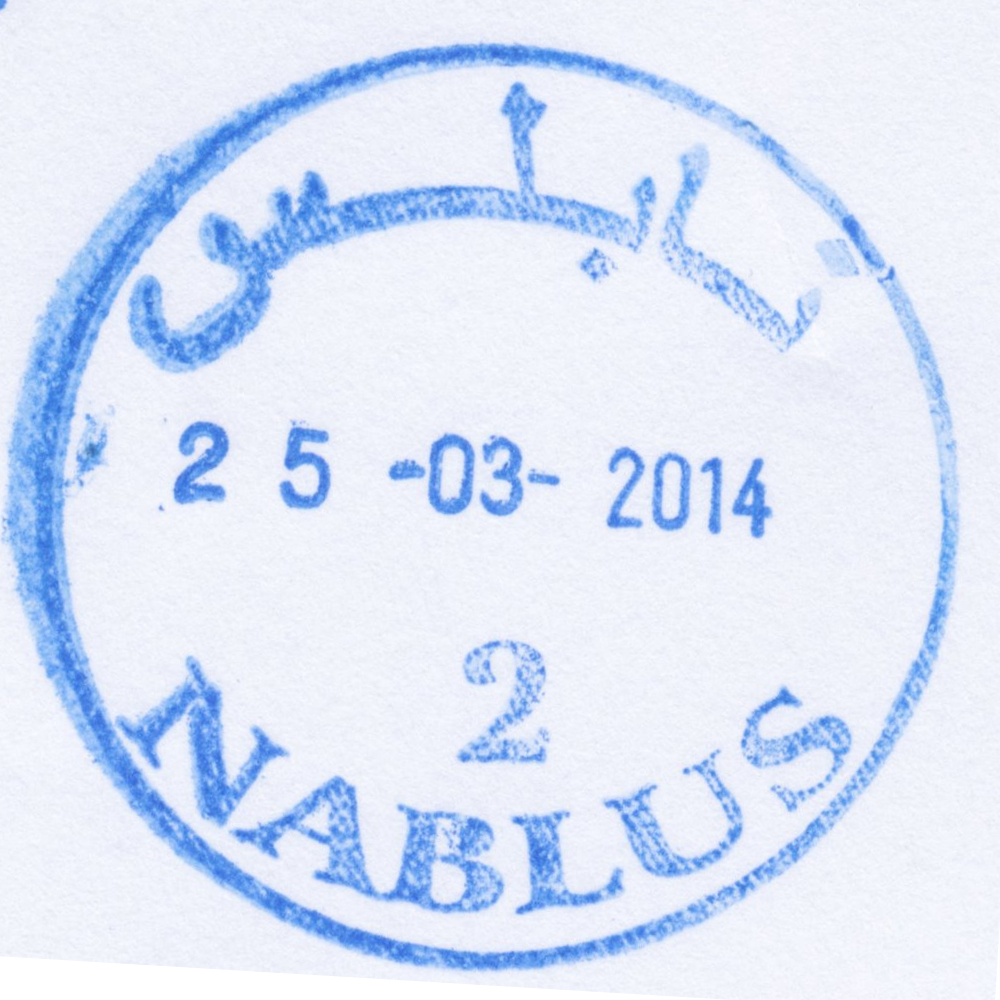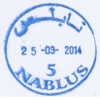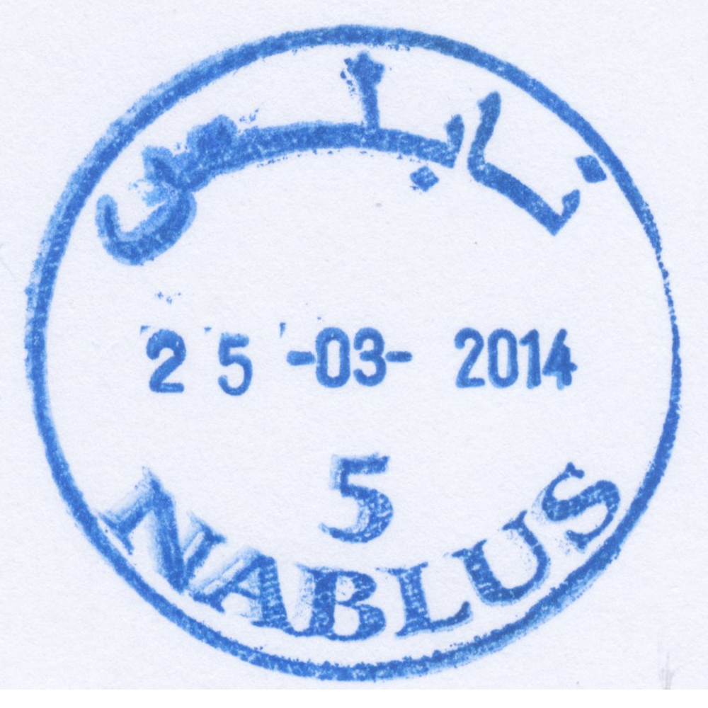 32°13' N, 35°16' E OpenStreetMap Google Maps Wikipedia | Governorate capital with 126,132 inhabitants (Census 2007, 1997: 100,034). The first post office in the city was operned in 1865 by the Ottoman authorities. Jordanian authorities operated a post office (district main PO) from (?)##. A post office under control of the Israeli military occupation forces existed from 13.07.1967, a 'Nablus Market Branch' (pmk: 'Nablus 3') opened 16.06.1971 but closed 31.03.1973. The current main office is on King Faisal road, next to PalTel and municipal offices. | ||||||||||