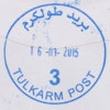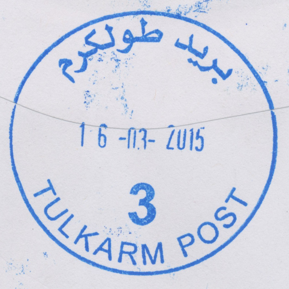 32°19' N, 35°02' E OpenStreetMap Google Maps Wikipedia | Governorate capital with (when including Tulkarm Camp & Dhinnaba) a population of 61,941 (Census 2007, 1997: 50,293), directly on the Green Line and now almost entirely surrounded by the Apatheid Wall. The first post office in the city opened under Ottoman rule in 1906. Jordanian authorities operated a post office (district main PO) from (date?)##. A post office under control of the Israeli military occupation forces existed from 16.07.1967. The nearest other post office is Nur Shams Camp (situated in East Dhinnaba) with Deir al-Gusun, Bala'a, Anabta, and Beit Lid further away. | ||||||||||