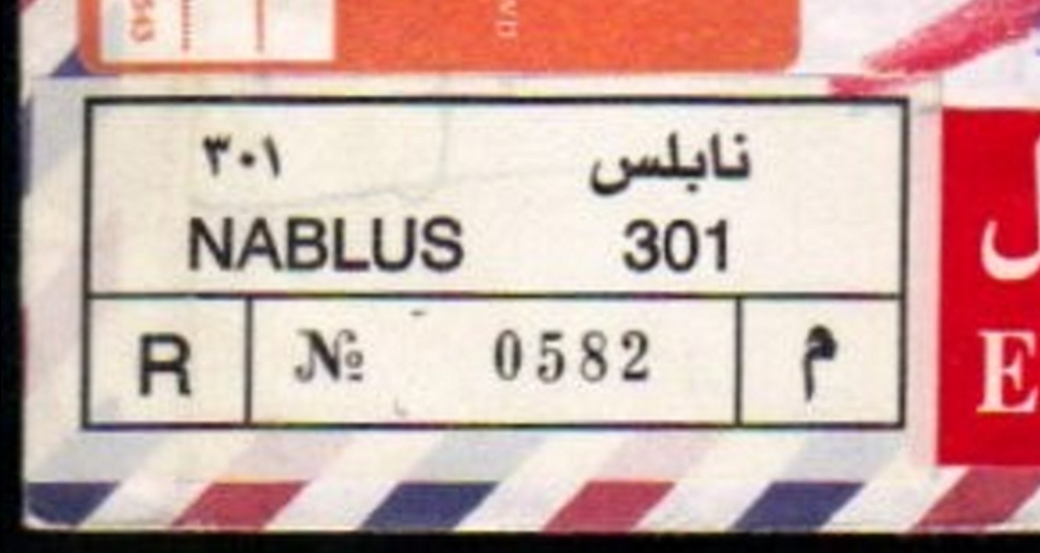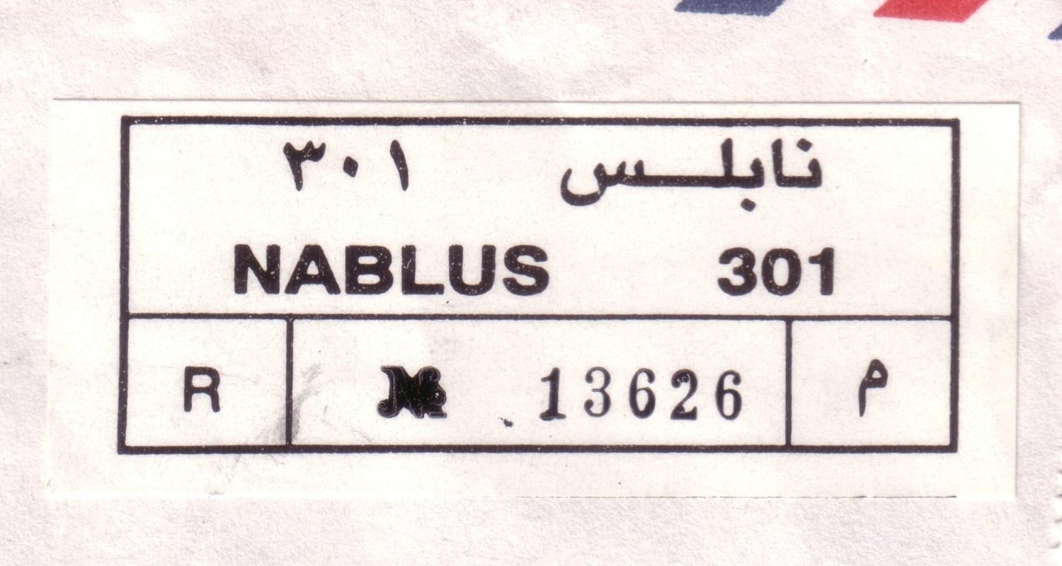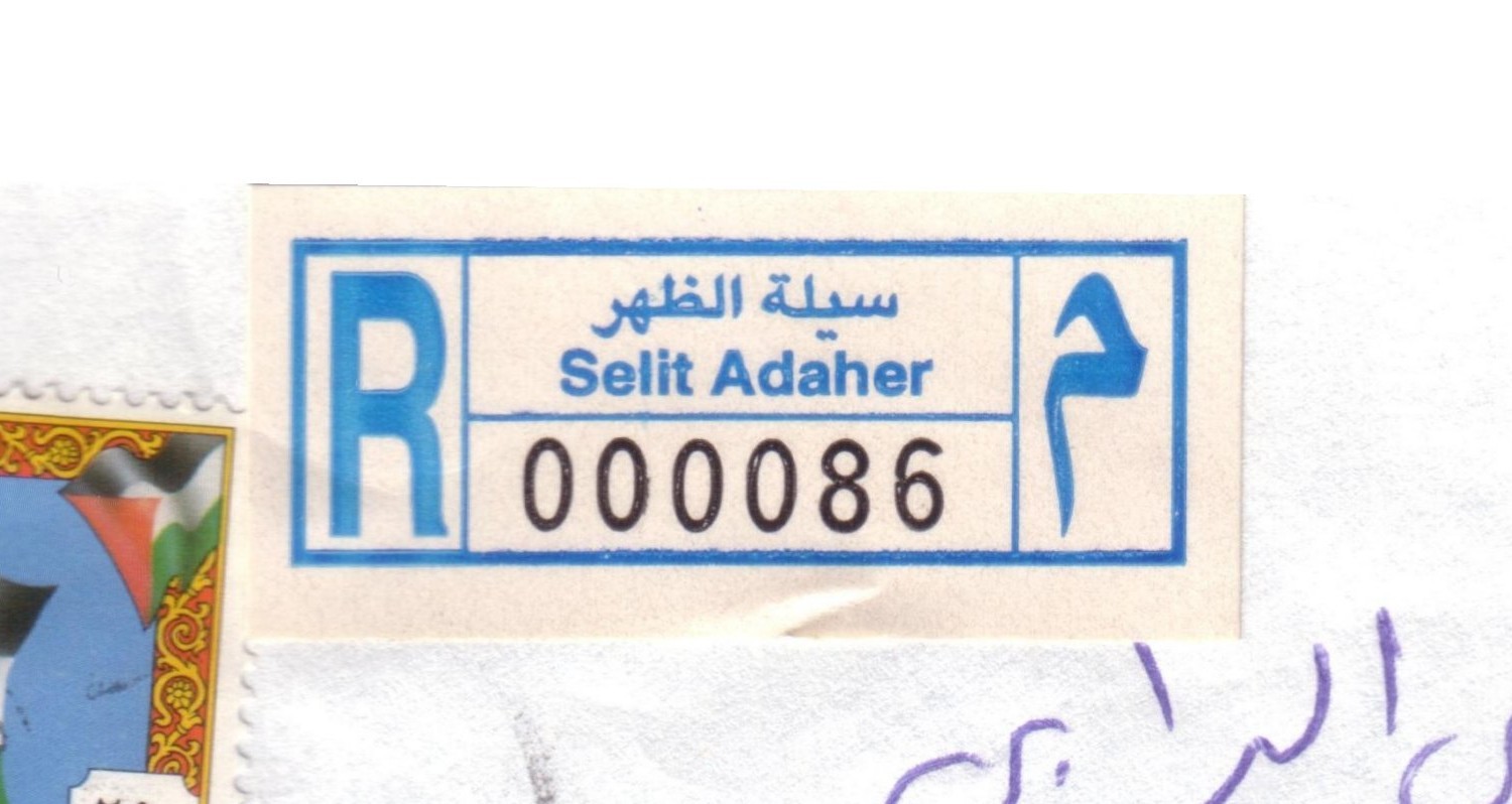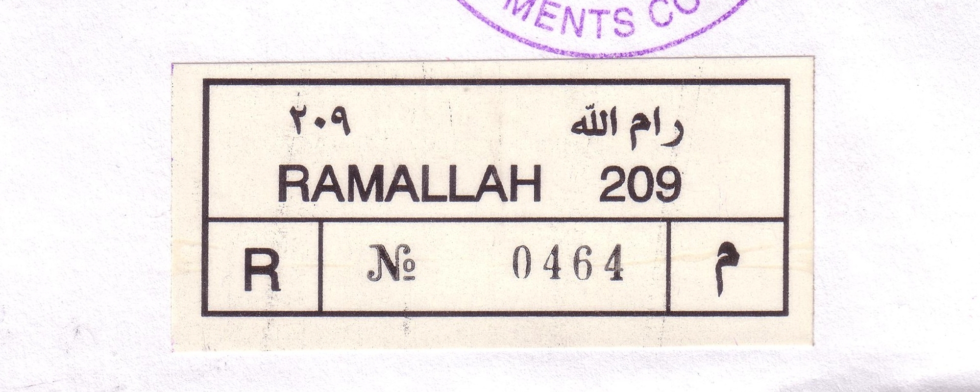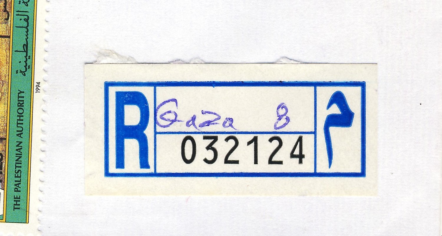 In 1995 the post offices under PNA control (ie. in the Gaza Strip and Jericho) were equipped with the B1 labels, and the newly opened offices during 1995 and 1996 in the Westbank were given labels B2, and from June 1996 A1. The former is common to both Gaza and the Westbank, whereas the latter is only used in the Westbank. Type B2x starts appearing in July 1995 in Jericho, with sporadic use only in Westbank offices (like Ramallah Central Sorting) but more widepread in the Gaza Strip. From June 1997, the A2 labels appear in smaller, often newly established offices, in Westbank towns. Use of A2 (apart from a few instances) ends in 1999.