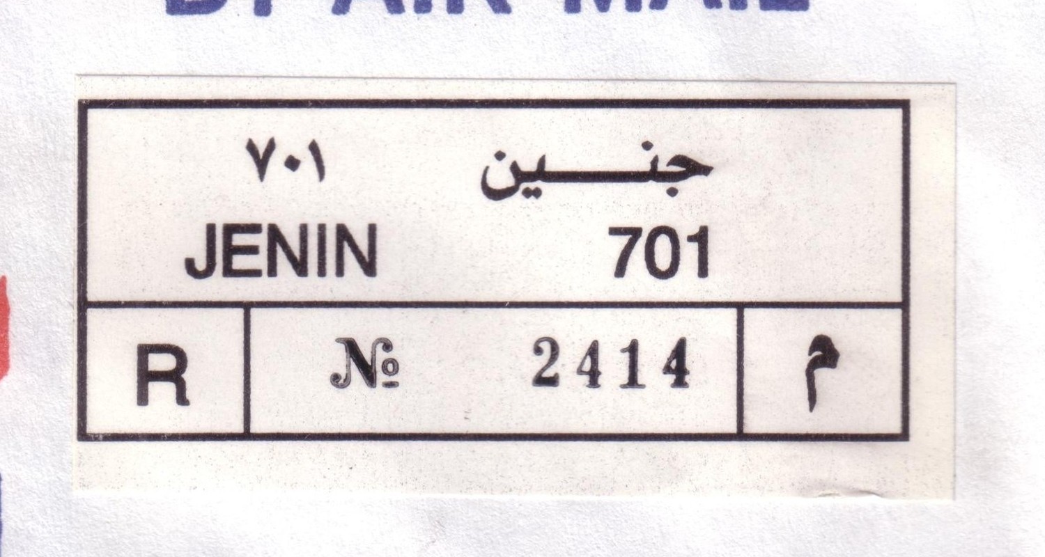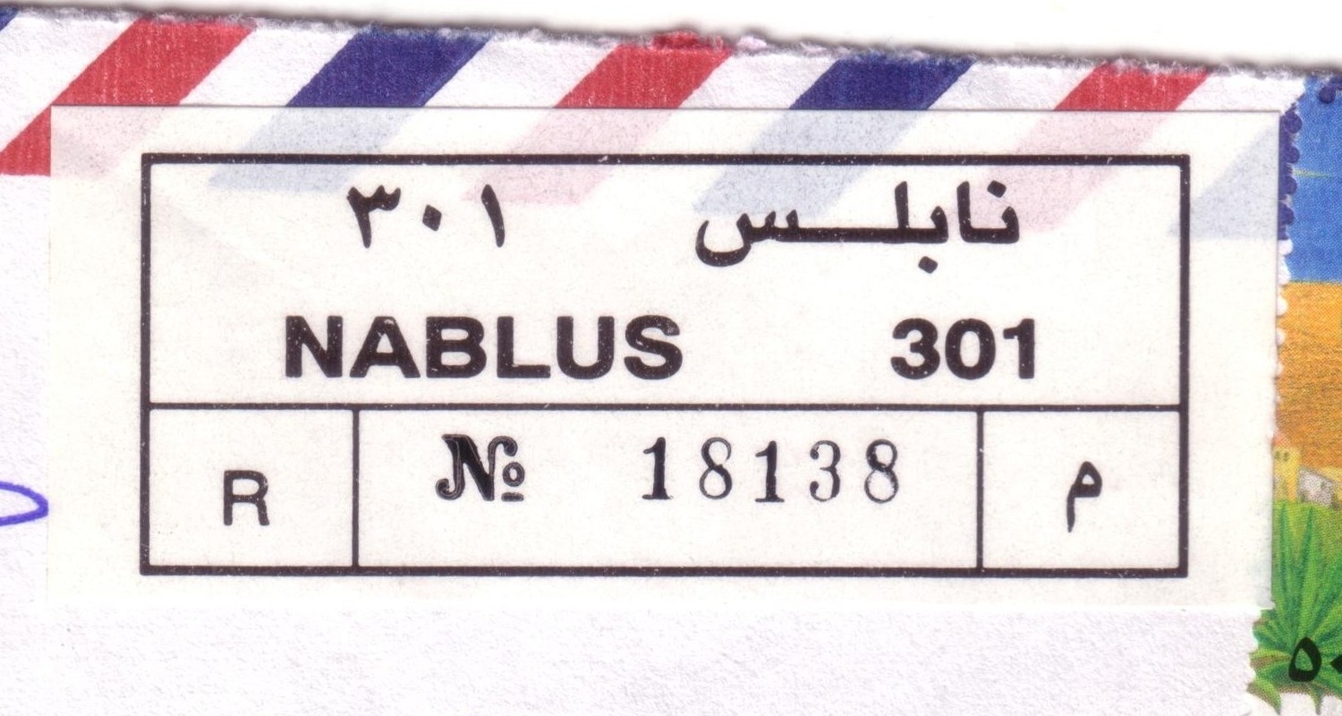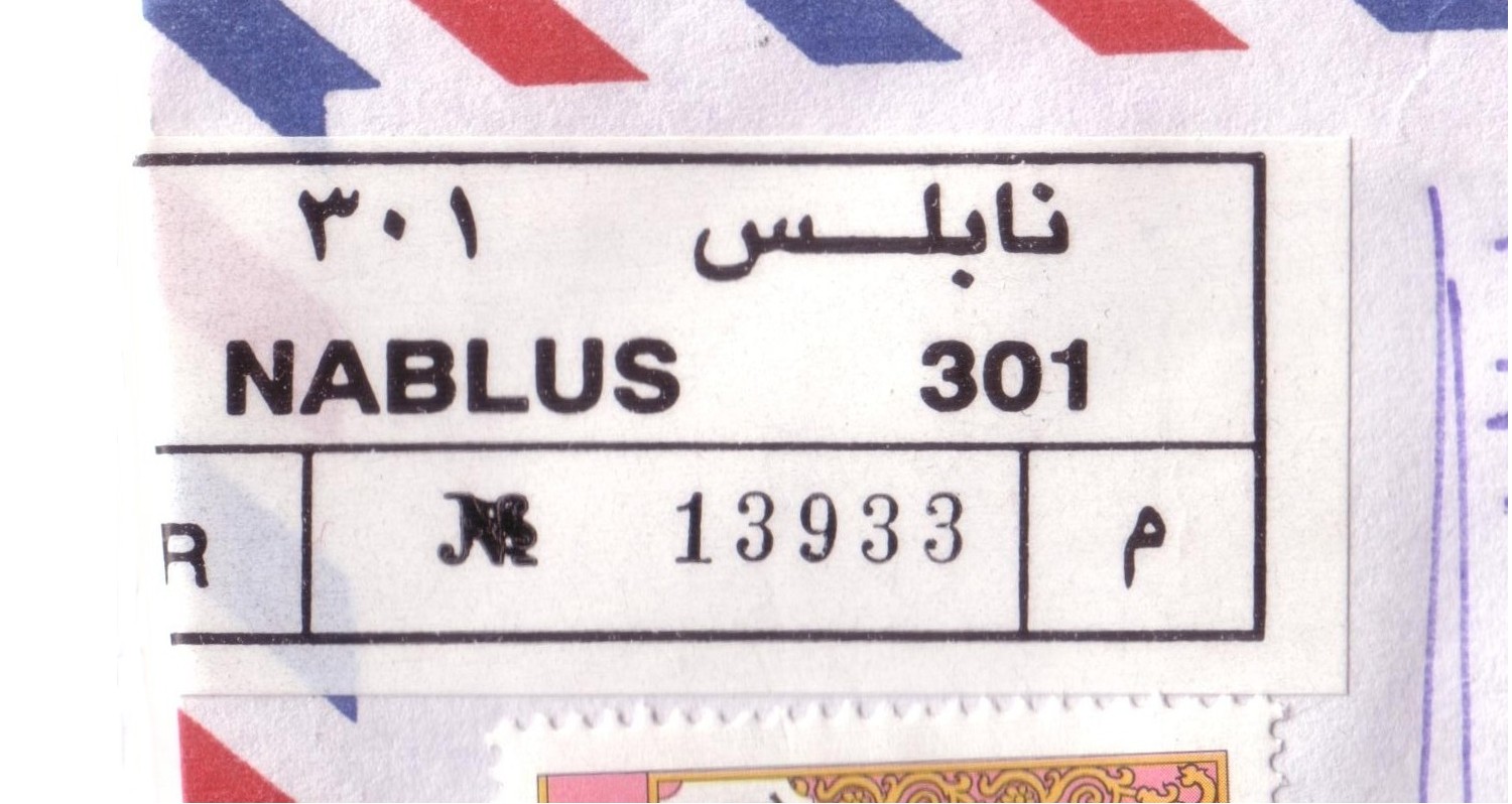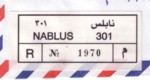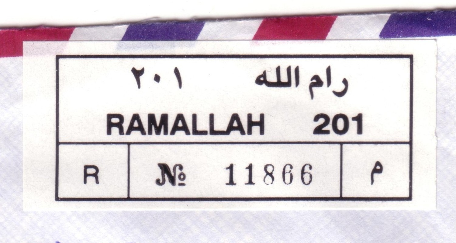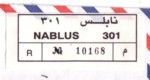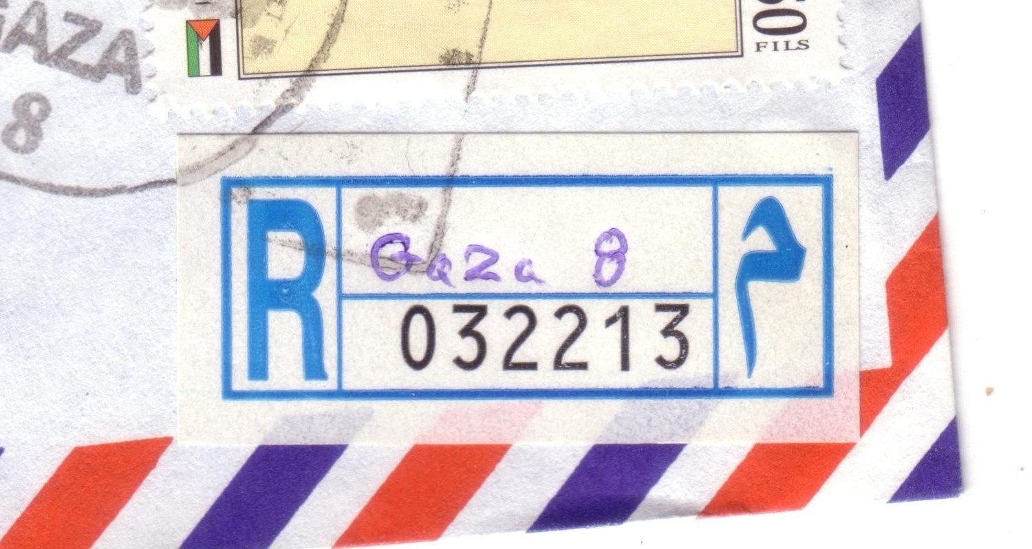 In 1995 the post offices under PNA control (ie. in the Gaza Strip and Jericho) were equipped with the B1 labels, and the newly opened offices during 1995 and 1996 in the Westbank were given labels B2, and from June 1996 A1. The former is common to both Gaza and the Westbank, whereas the latter is only used in the Westbank. Type B2x starts appearing in July 1995 in Jericho, with sporadic use only in Westbank offices (like Ramallah Central Sorting) but more widepread in the Gaza Strip. From June 1997, the A2 labels appear in smaller, often newly established offices, in Westbank towns. Use of A2 (apart from a few instances) ends in 1999.
