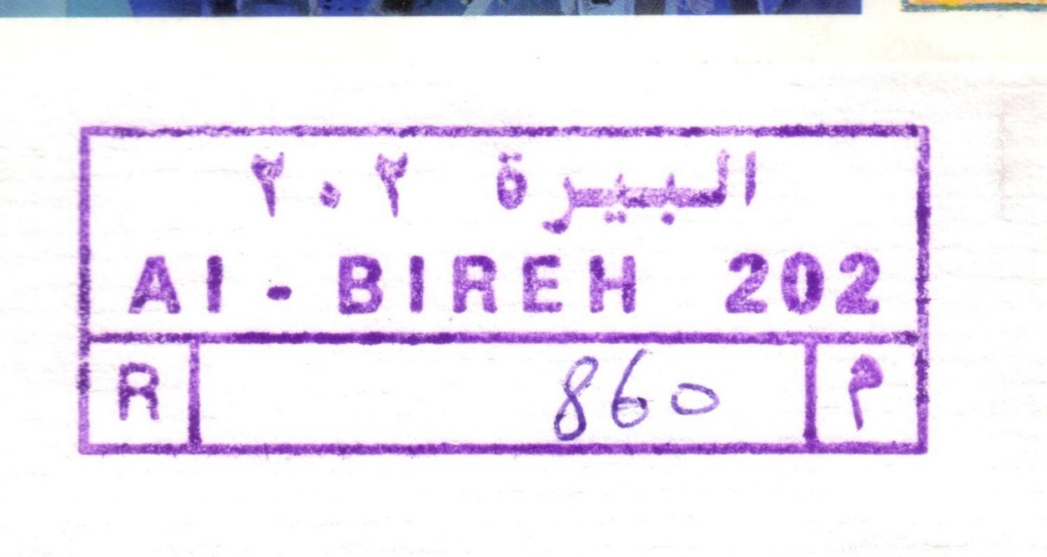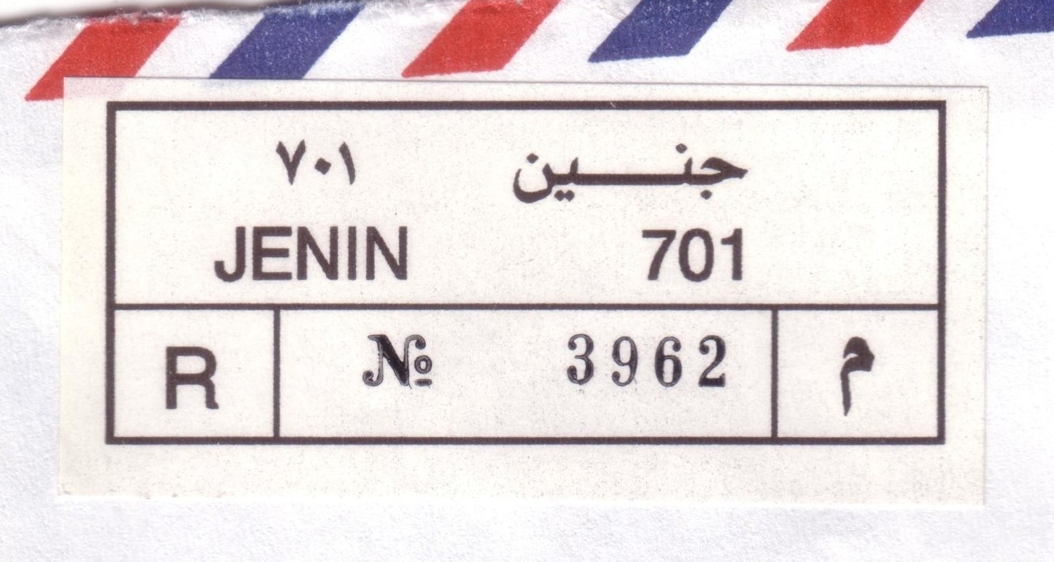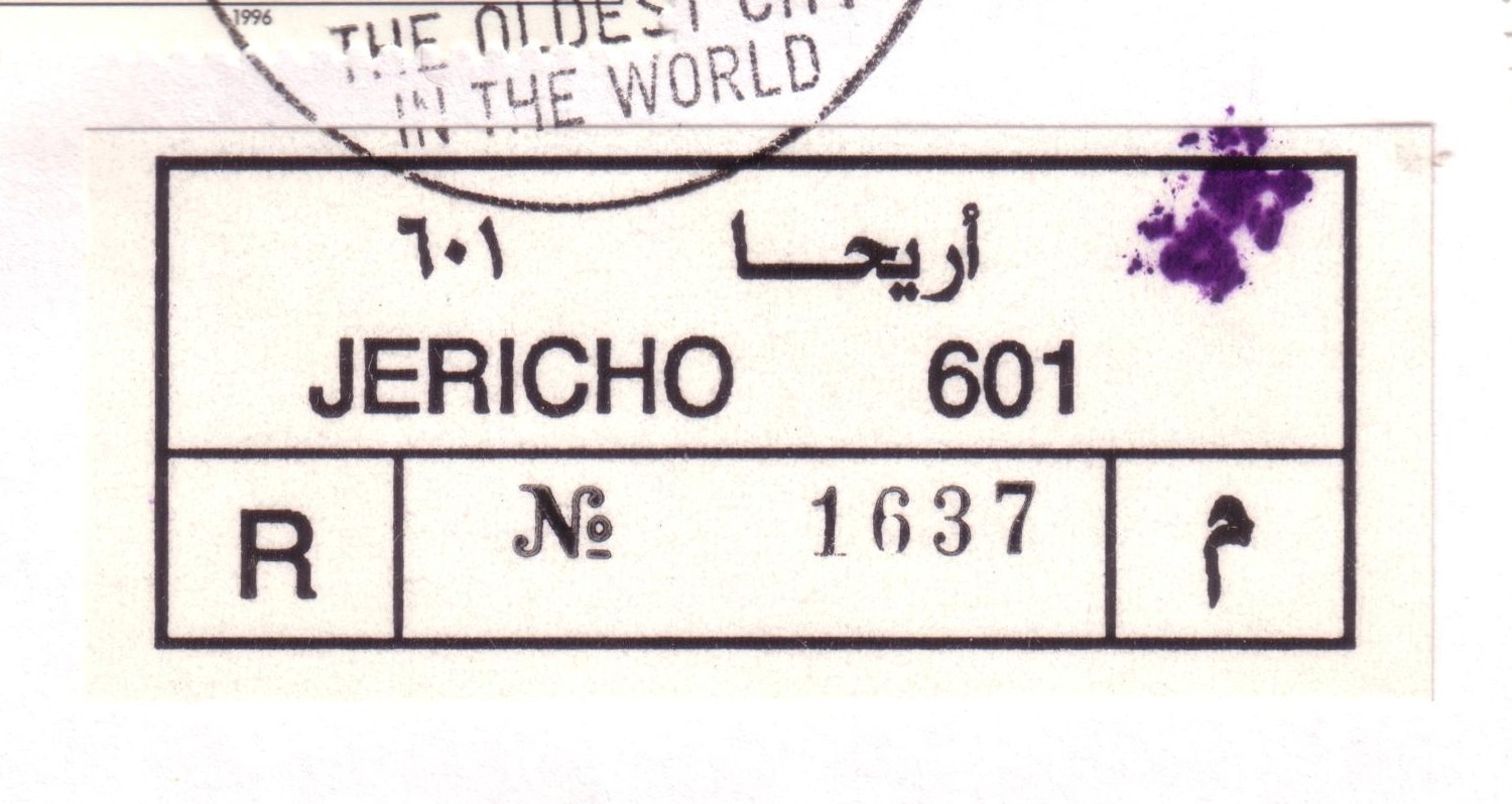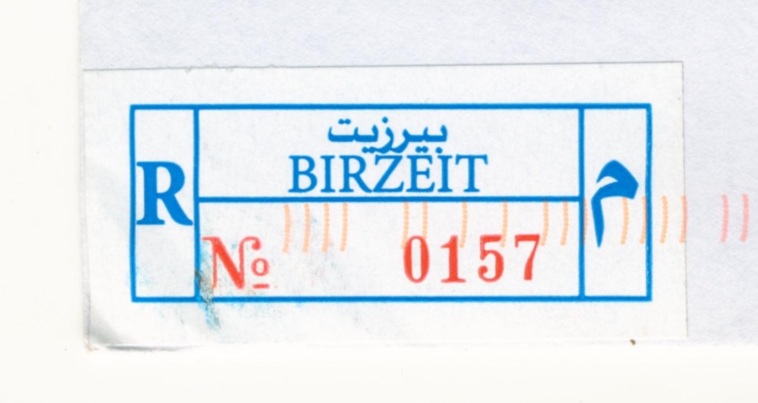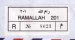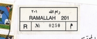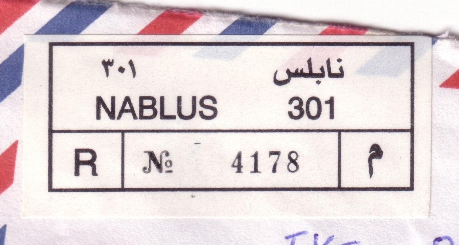 In 1995 the post offices under PNA control (ie. in the Gaza Strip and Jericho) were equipped with the B1 labels, and the newly opened offices during 1995 and 1996 in the Westbank were given labels B2, and from June 1996 A1. The former is common to both Gaza and the Westbank, whereas the latter is only used in the Westbank. Type B2x starts appearing in July 1995 in Jericho, with sporadic use only in Westbank offices (like Ramallah Central Sorting) but more widepread in the Gaza Strip. From June 1997, the A2 labels appear in smaller, often newly established offices, in Westbank towns. Use of A2 (apart from a few instances) ends in 1999.