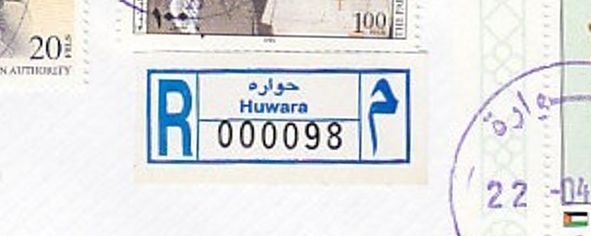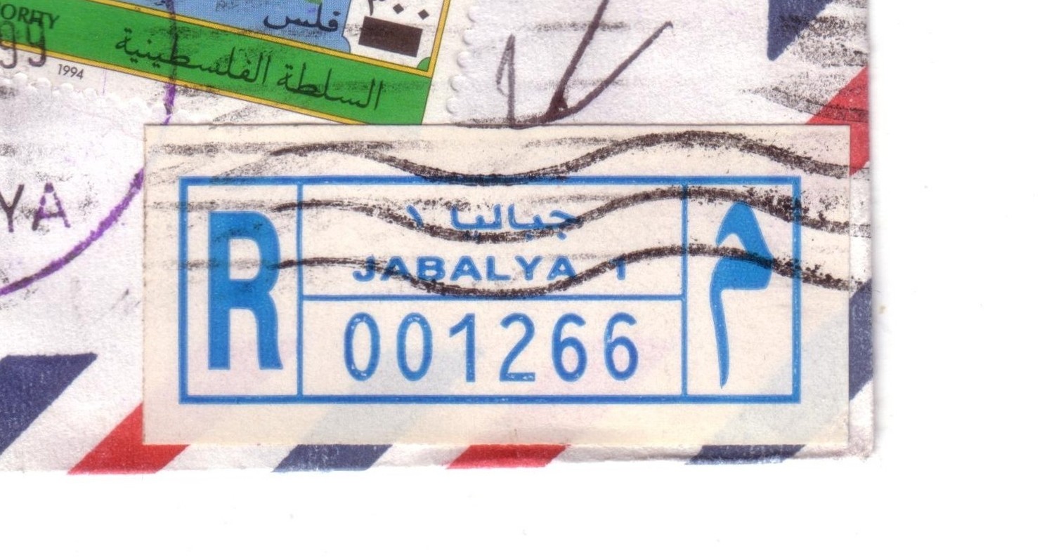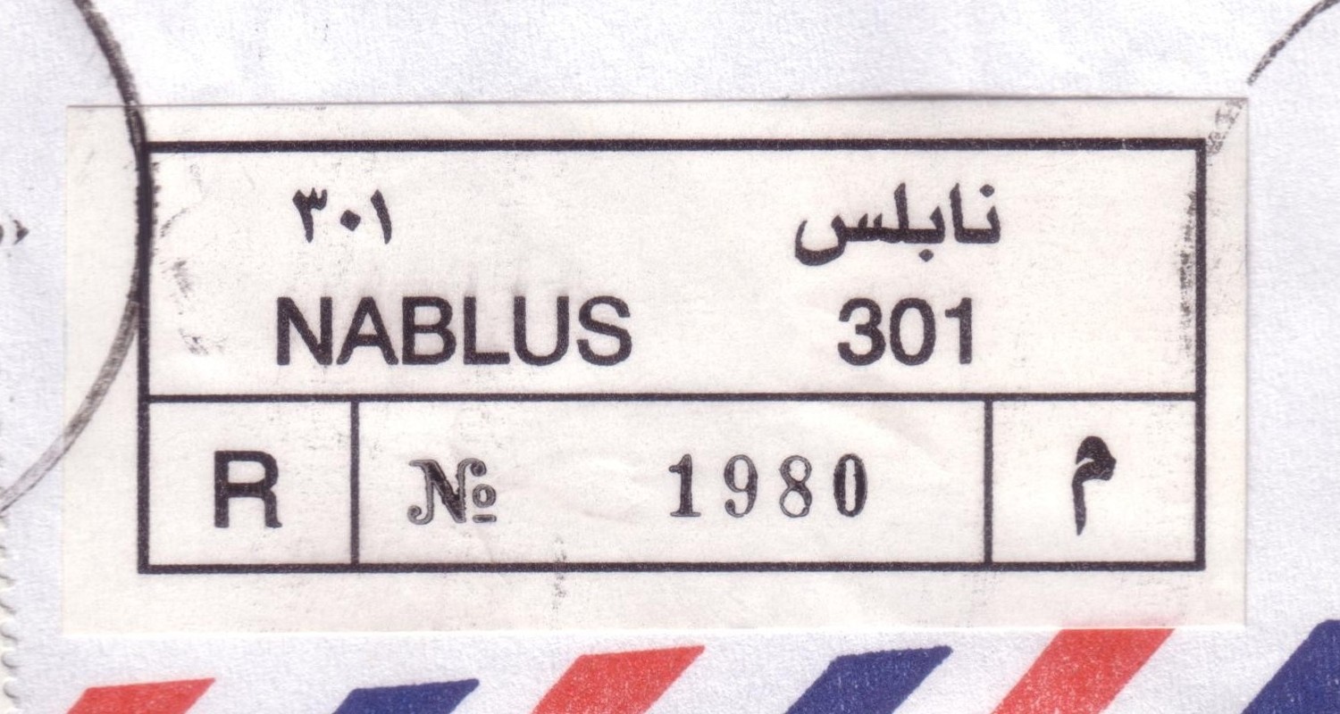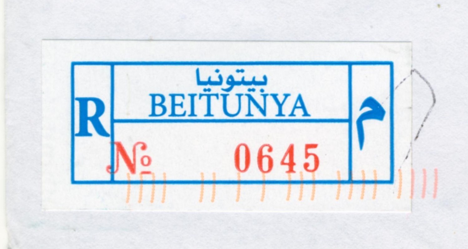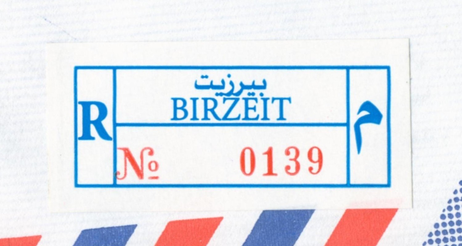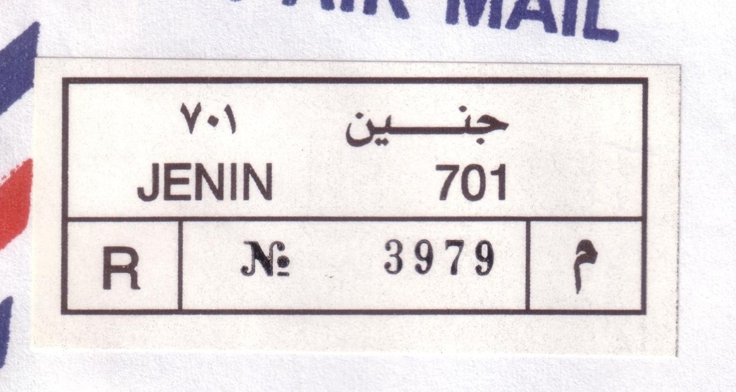 In 1995 the post offices under PNA control (ie. in the Gaza Strip and Jericho) were equipped with the B1 labels, and the newly opened offices during 1995 and 1996 in the Westbank were given labels B2, and from June 1996 A1. The former is common to both Gaza and the Westbank, whereas the latter is only used in the Westbank. Type B2x starts appearing in July 1995 in Jericho, with sporadic use only in Westbank offices (like Ramallah Central Sorting) but more widepread in the Gaza Strip. From June 1997, the A2 labels appear in smaller, often newly established offices, in Westbank towns. Use of A2 (apart from a few instances) ends in 1999.