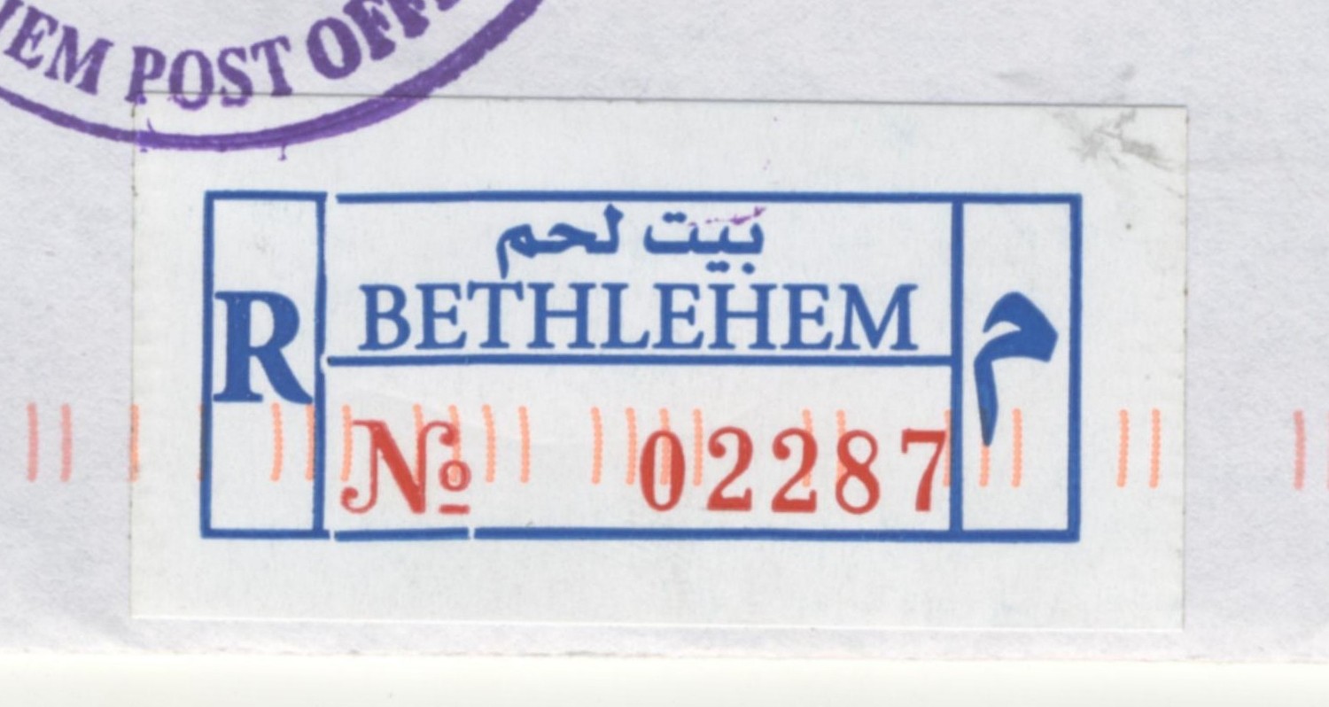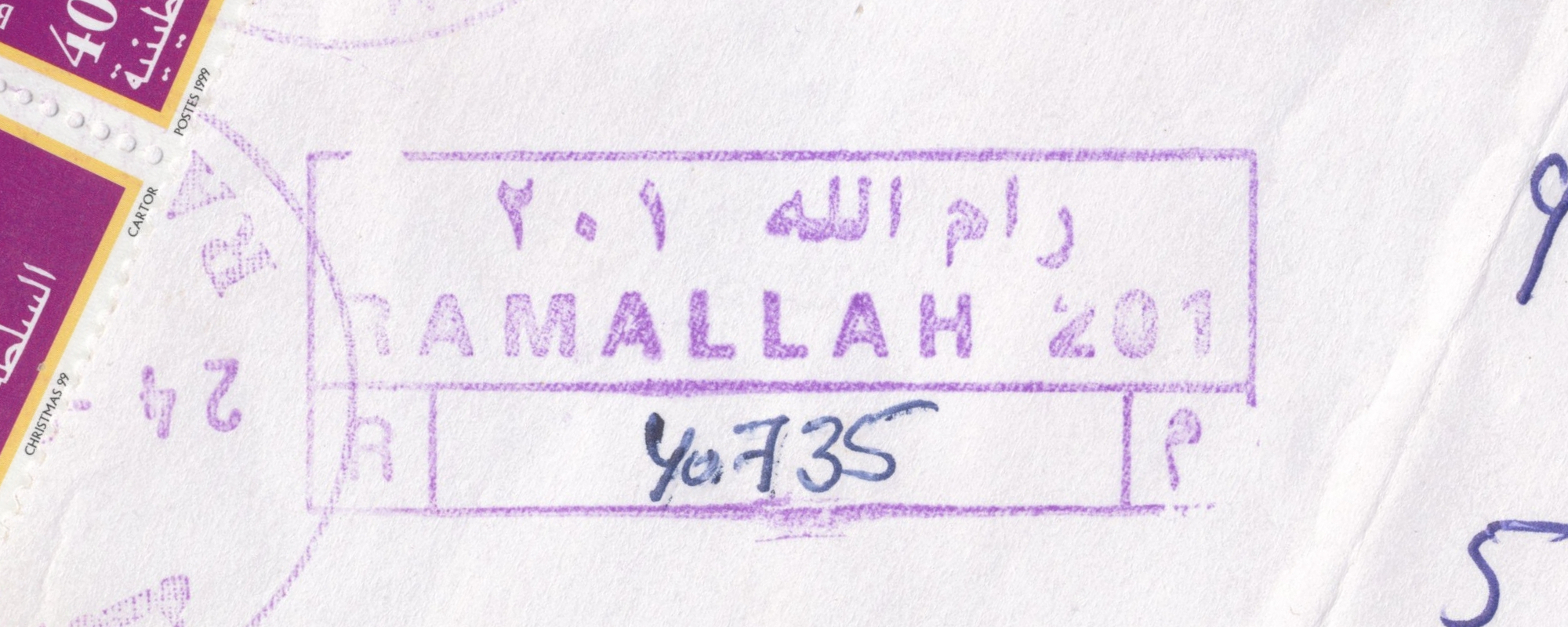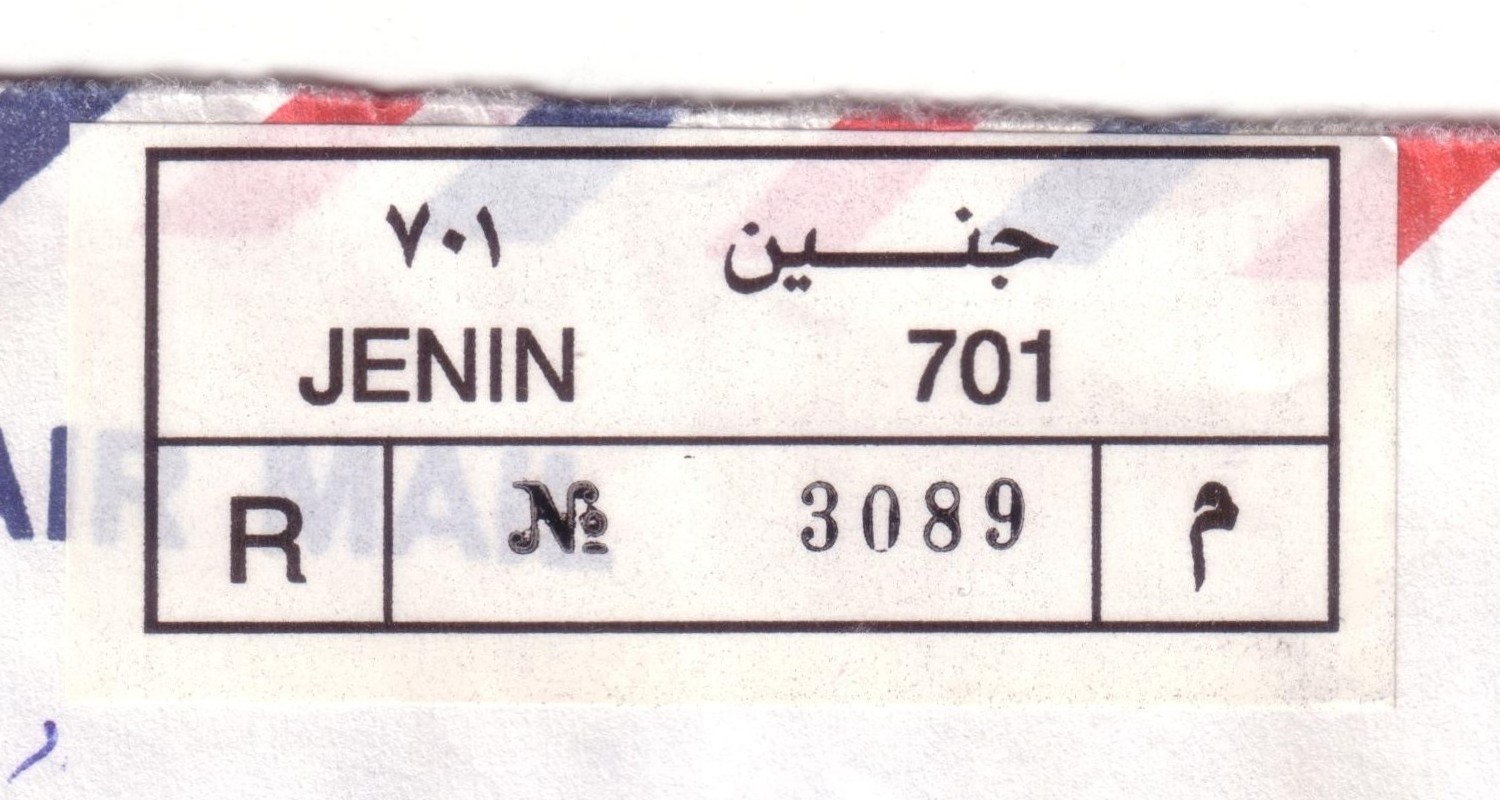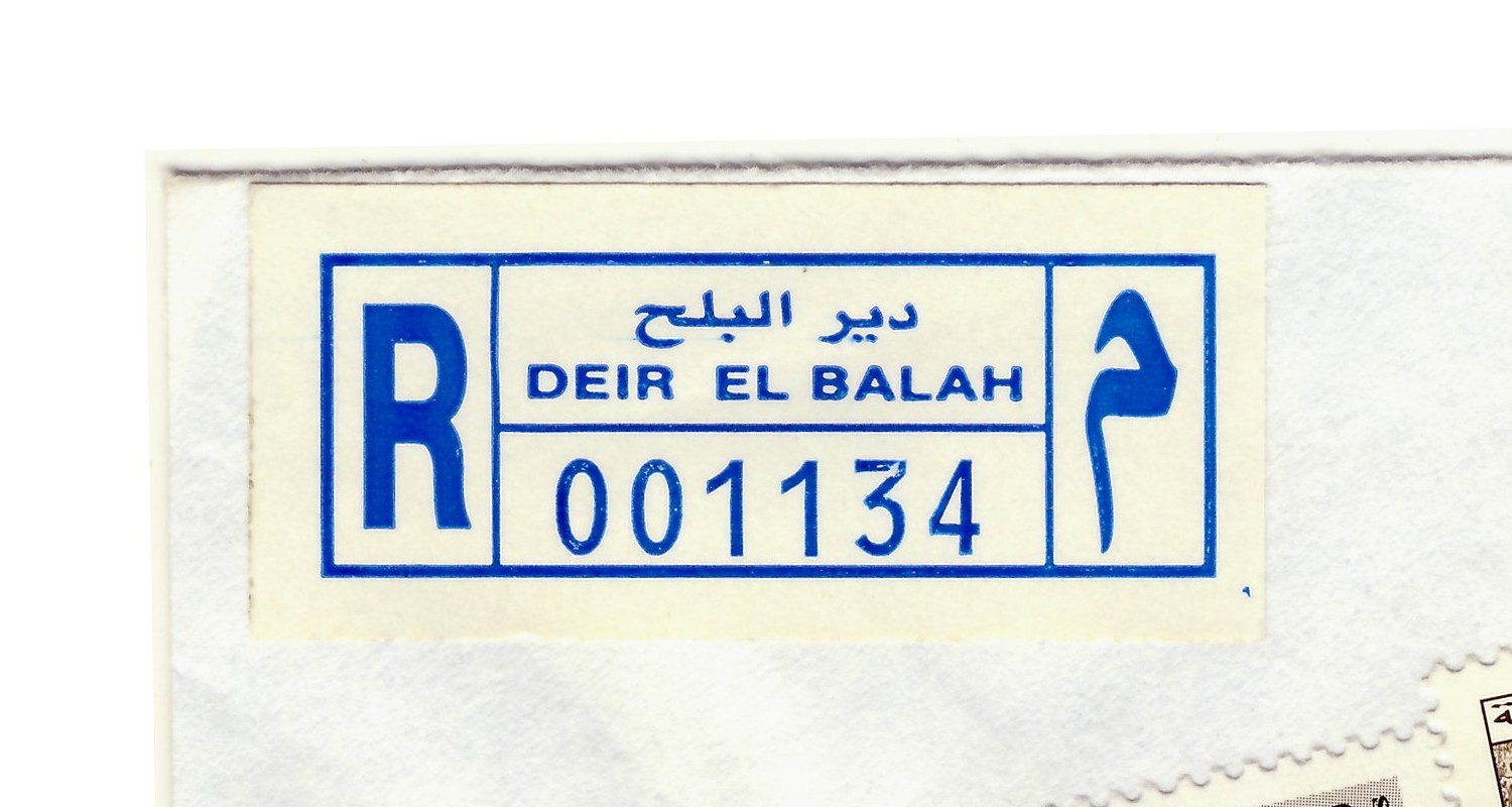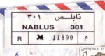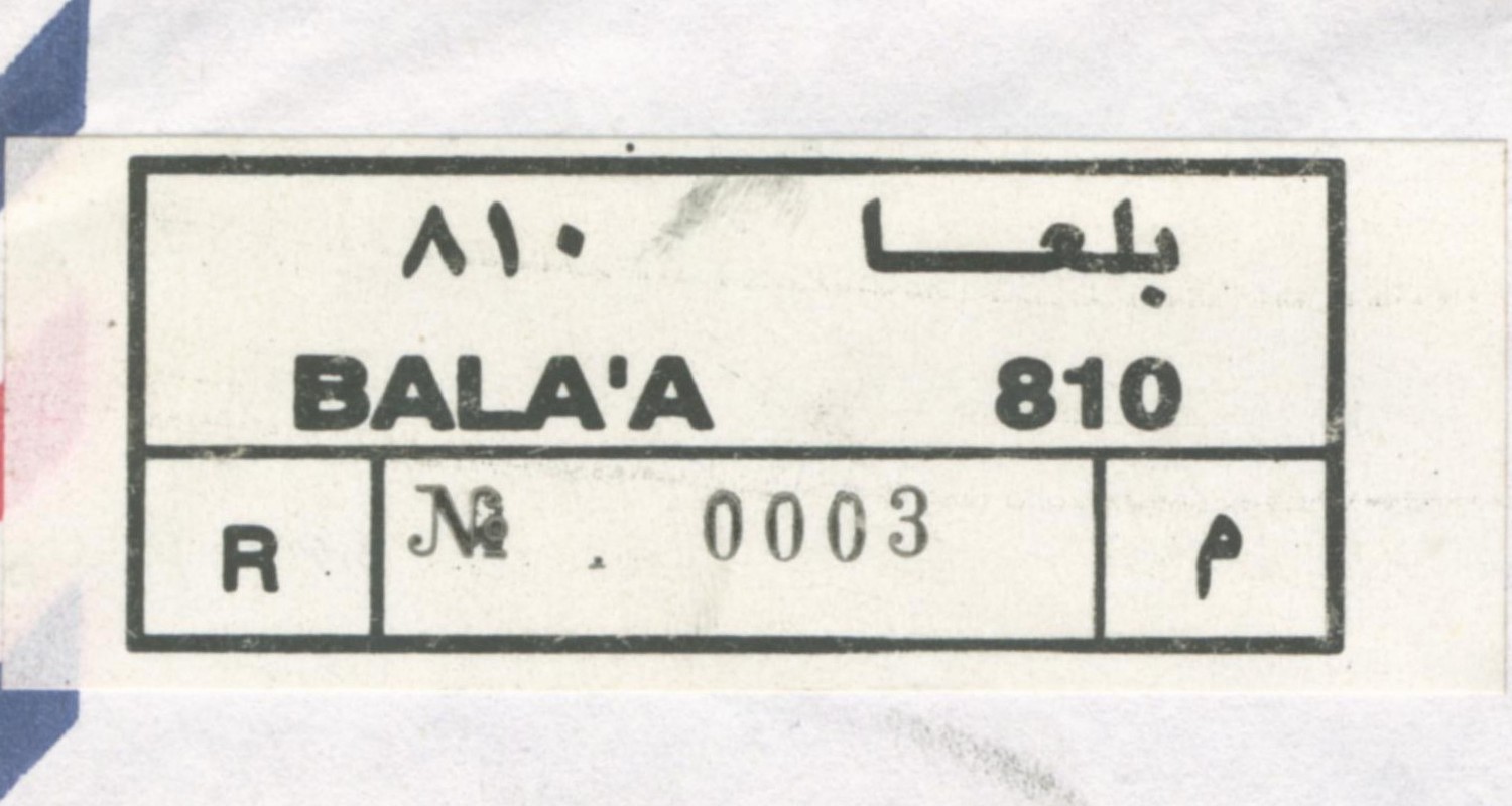 In 1995 the post offices under PNA control (ie. in the Gaza Strip and Jericho) were equipped with the B1 labels, and the newly opened offices during 1995 and 1996 in the Westbank were given labels B2, and from June 1996 A1. The former is common to both Gaza and the Westbank, whereas the latter is only used in the Westbank. Type B2x starts appearing in July 1995 in Jericho, with sporadic use only in Westbank offices (like Ramallah Central Sorting) but more widepread in the Gaza Strip. From June 1997, the A2 labels appear in smaller, often newly established offices, in Westbank towns. Use of A2 (apart from a few instances) ends in 1999.