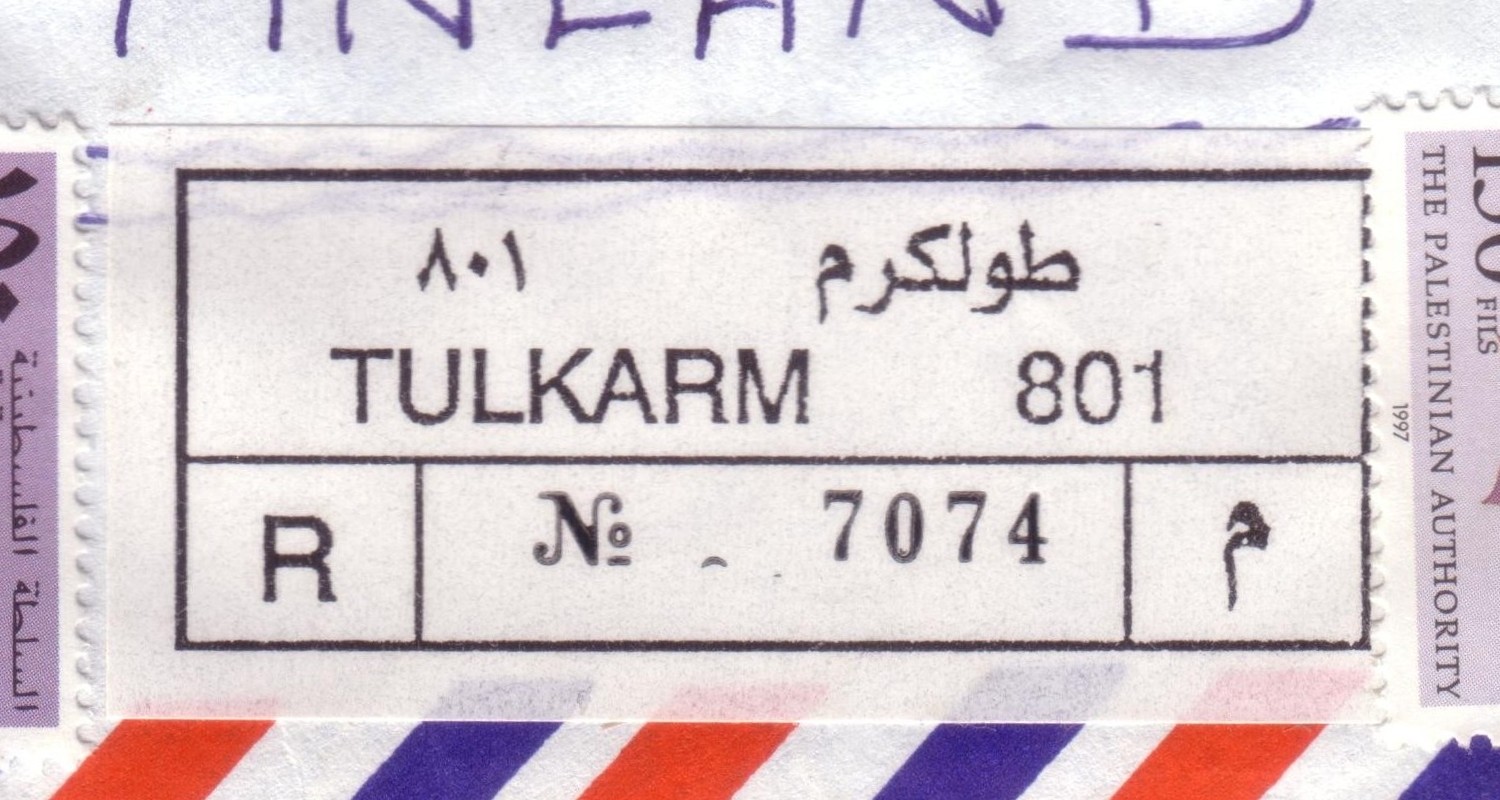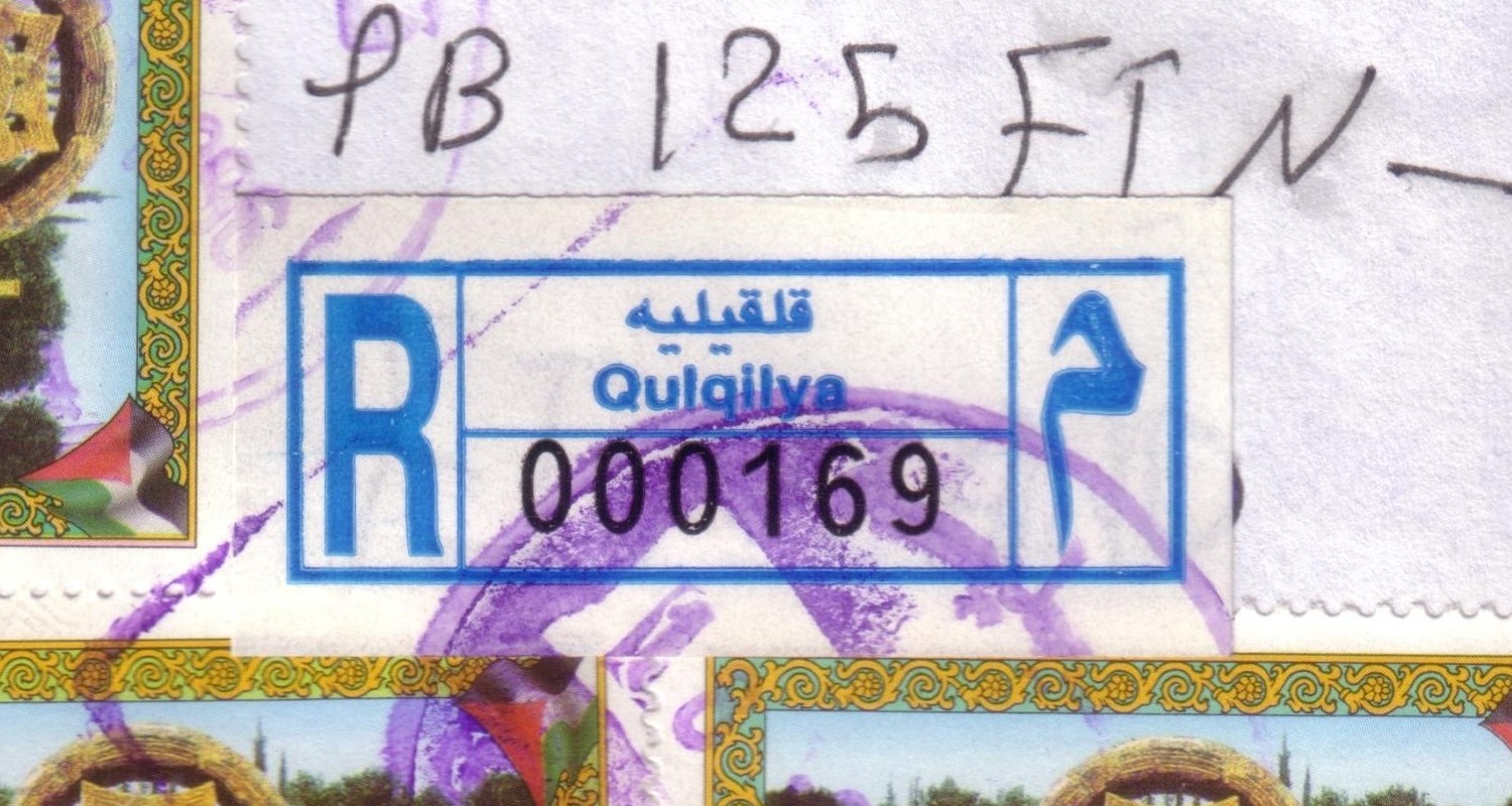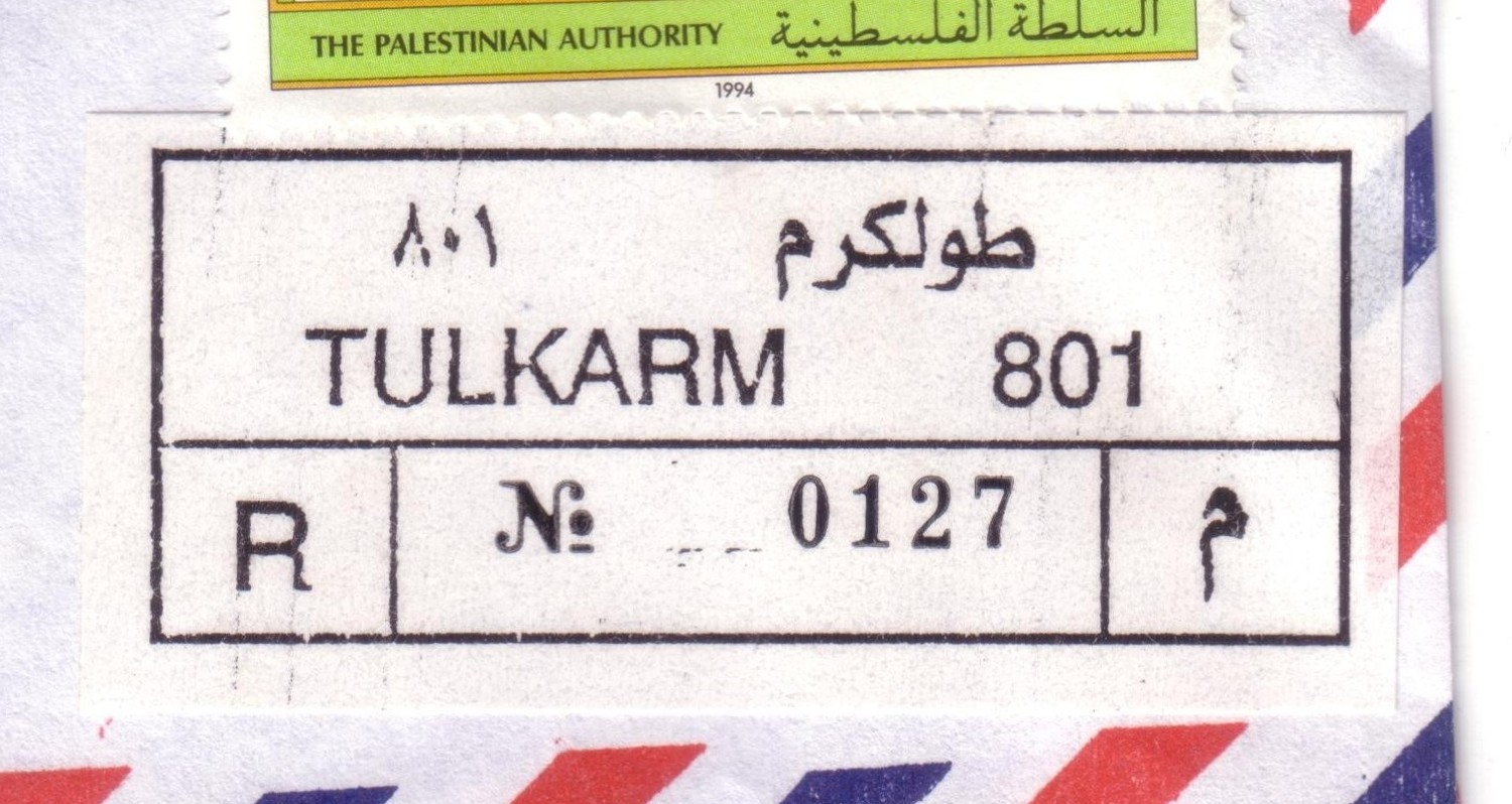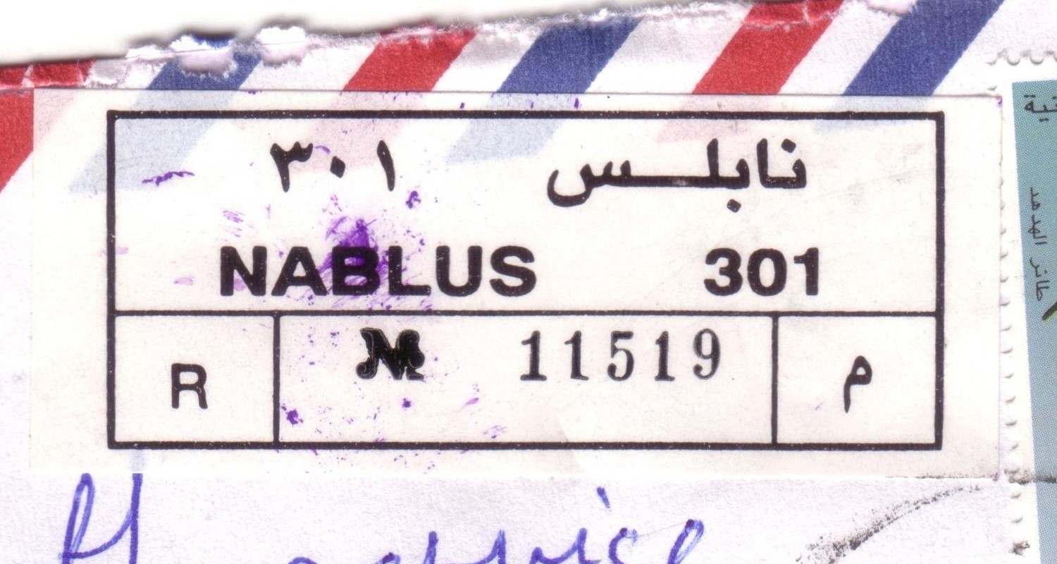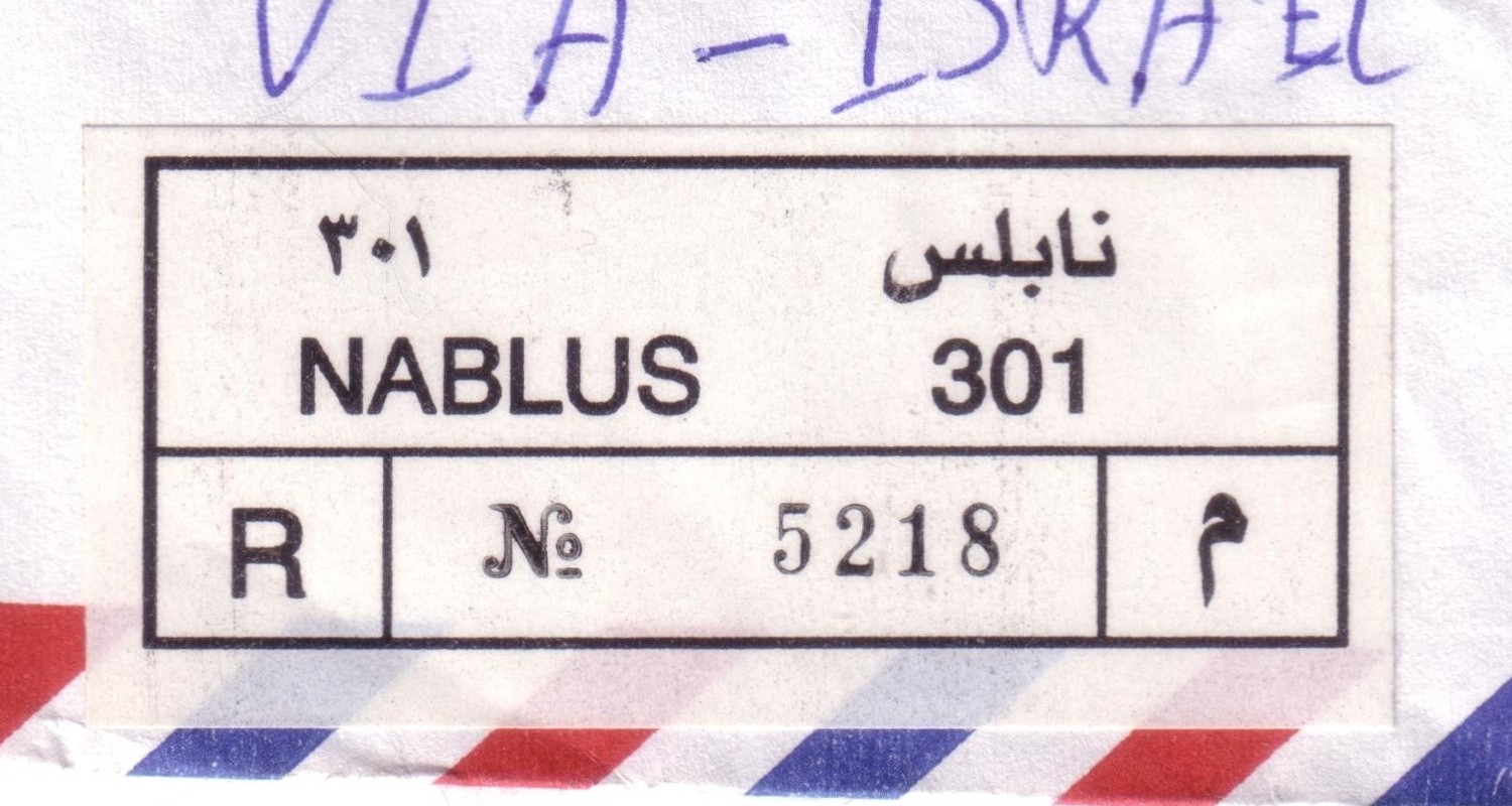 In 1995 the post offices under PNA control (ie. in the Gaza Strip and Jericho) were equipped with the B1 labels, and the newly opened offices during 1995 and 1996 in the Westbank were given labels B2, and from June 1996 A1. The former is common to both Gaza and the Westbank, whereas the latter is only used in the Westbank. Type B2x starts appearing in July 1995 in Jericho, with sporadic use only in Westbank offices (like Ramallah Central Sorting) but more widepread in the Gaza Strip. From June 1997, the A2 labels appear in smaller, often newly established offices, in Westbank towns. Use of A2 (apart from a few instances) ends in 1999.