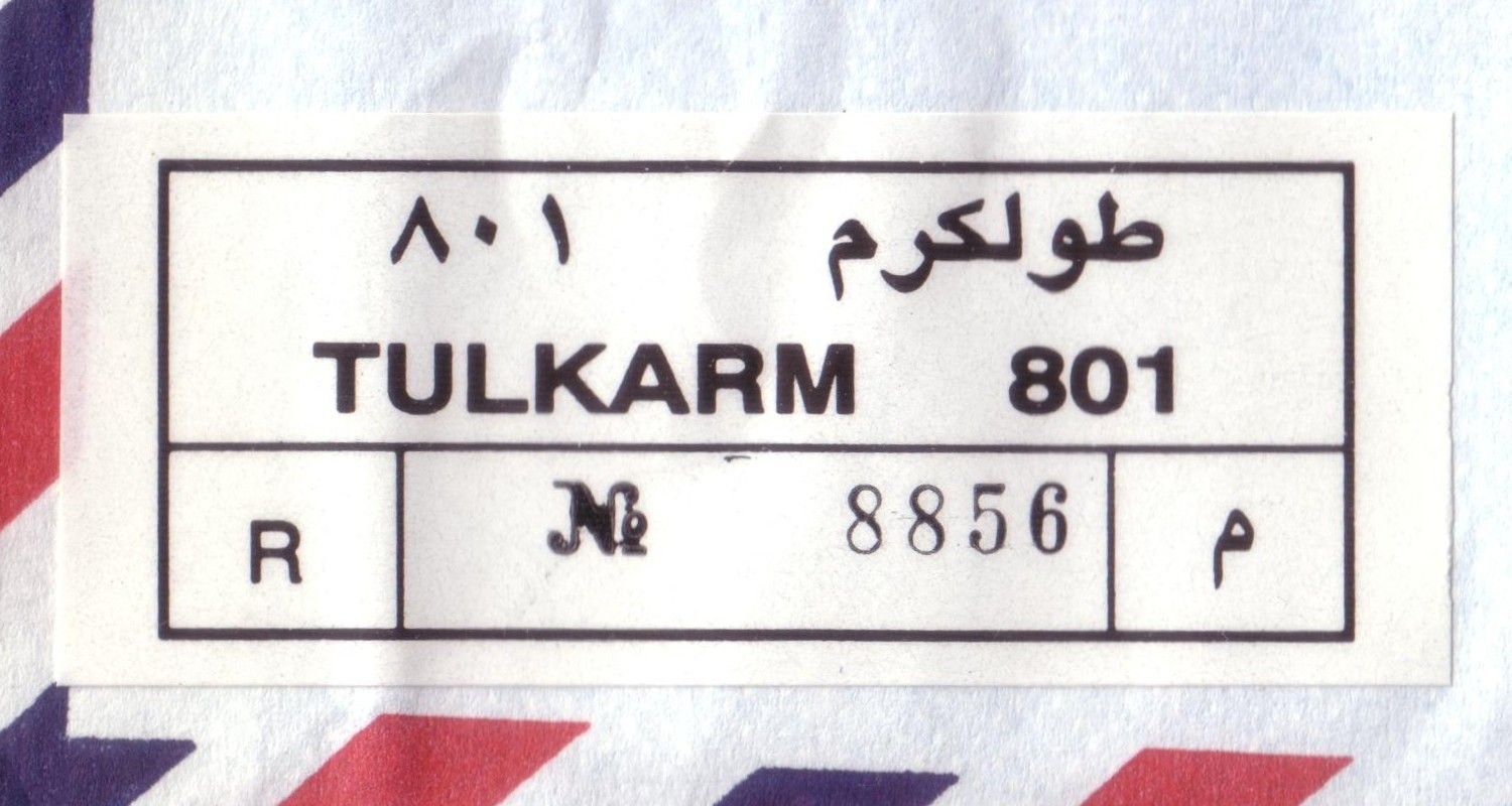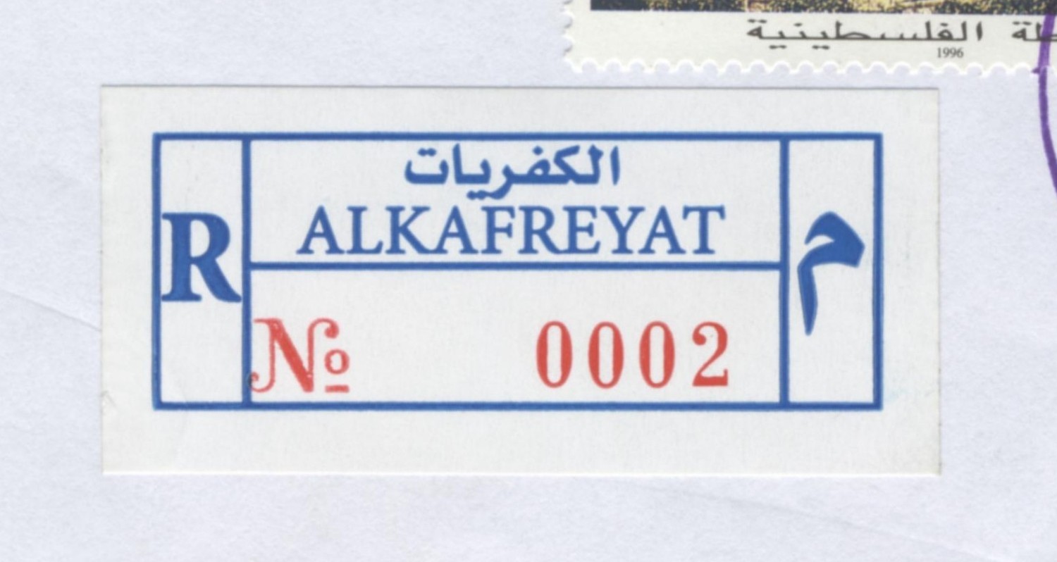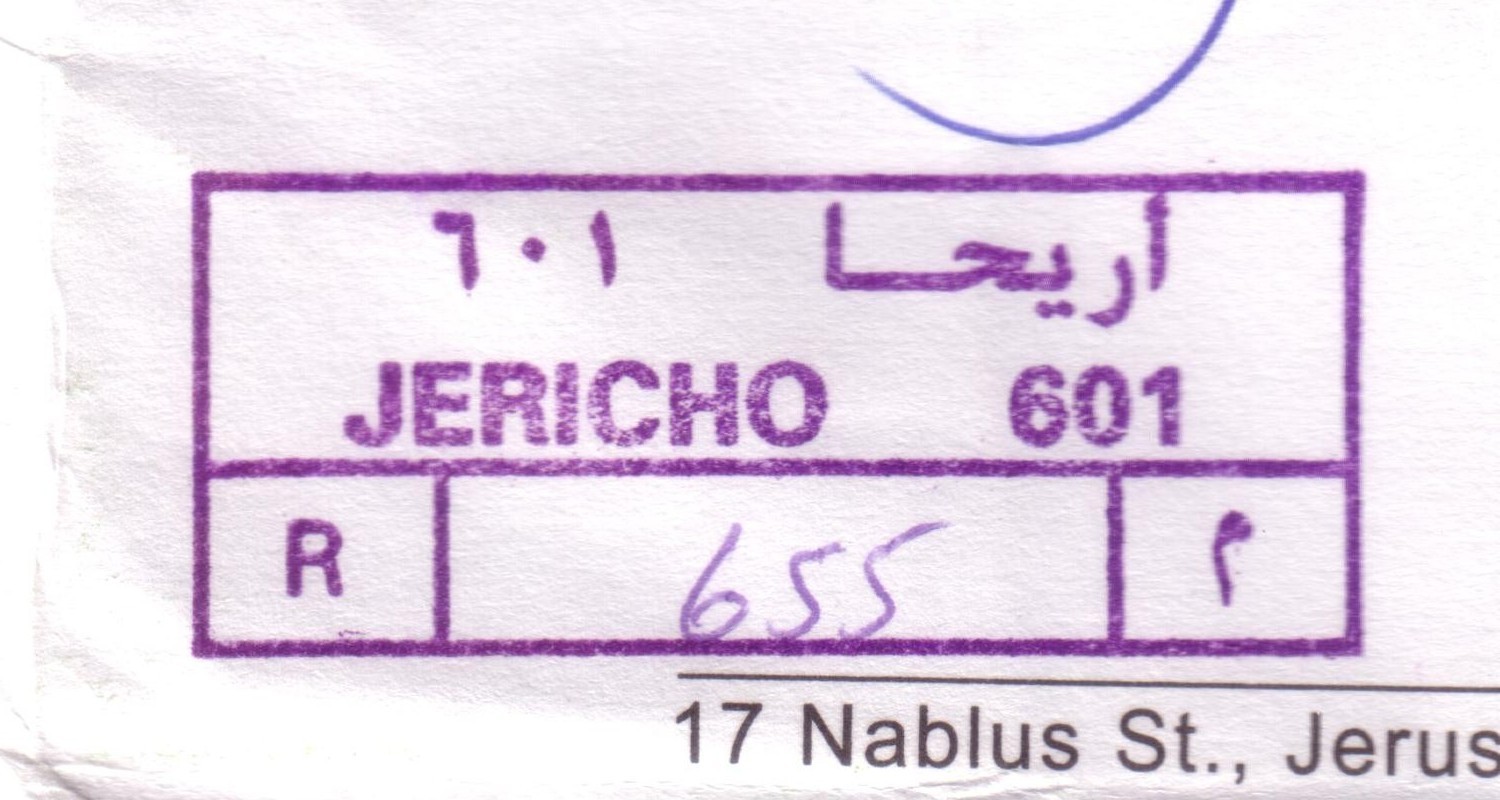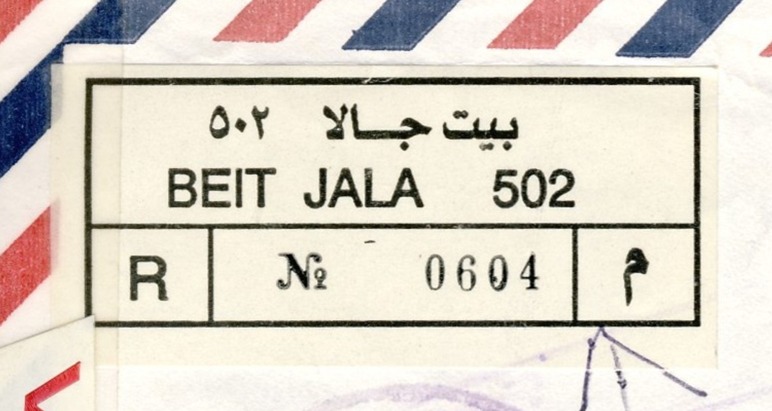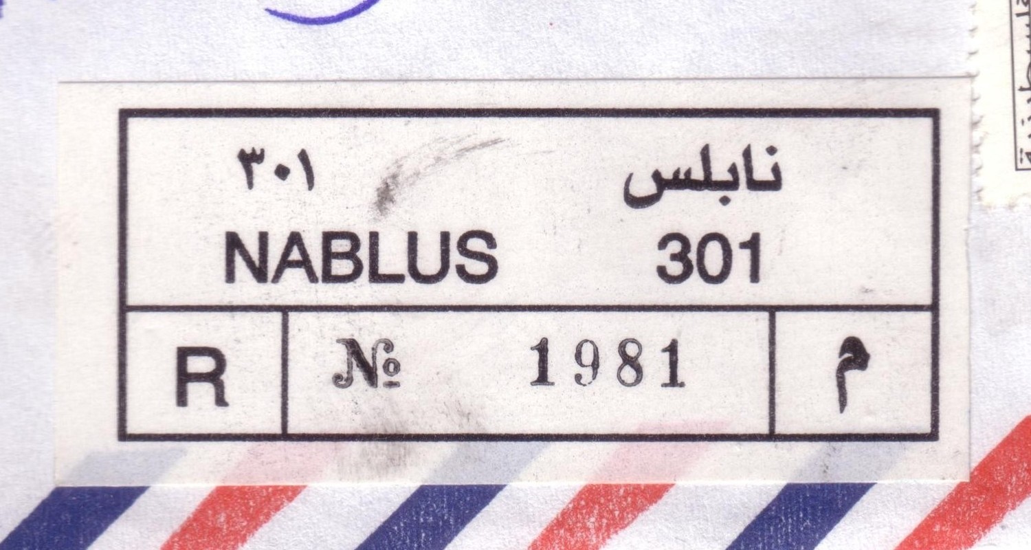 In 1995 the post offices under PNA control (ie. in the Gaza Strip and Jericho) were equipped with the B1 labels, and the newly opened offices during 1995 and 1996 in the Westbank were given labels B2, and from June 1996 A1. The former is common to both Gaza and the Westbank, whereas the latter is only used in the Westbank. Type B2x starts appearing in July 1995 in Jericho, with sporadic use only in Westbank offices (like Ramallah Central Sorting) but more widepread in the Gaza Strip. From June 1997, the A2 labels appear in smaller, often newly established offices, in Westbank towns. Use of A2 (apart from a few instances) ends in 1999.