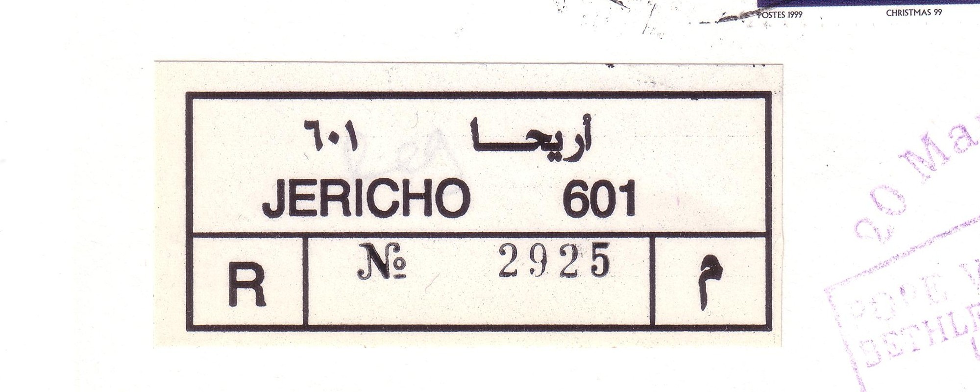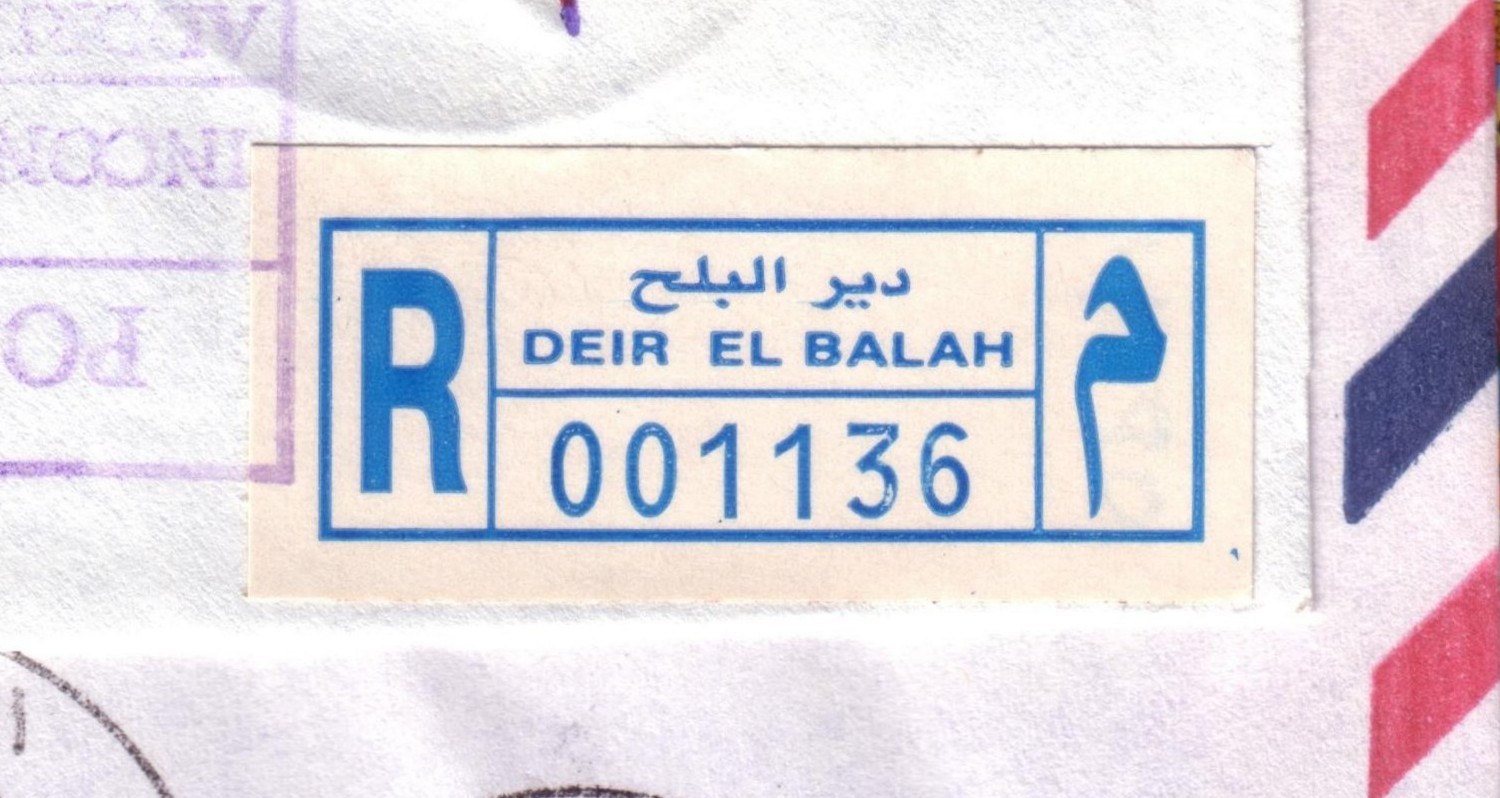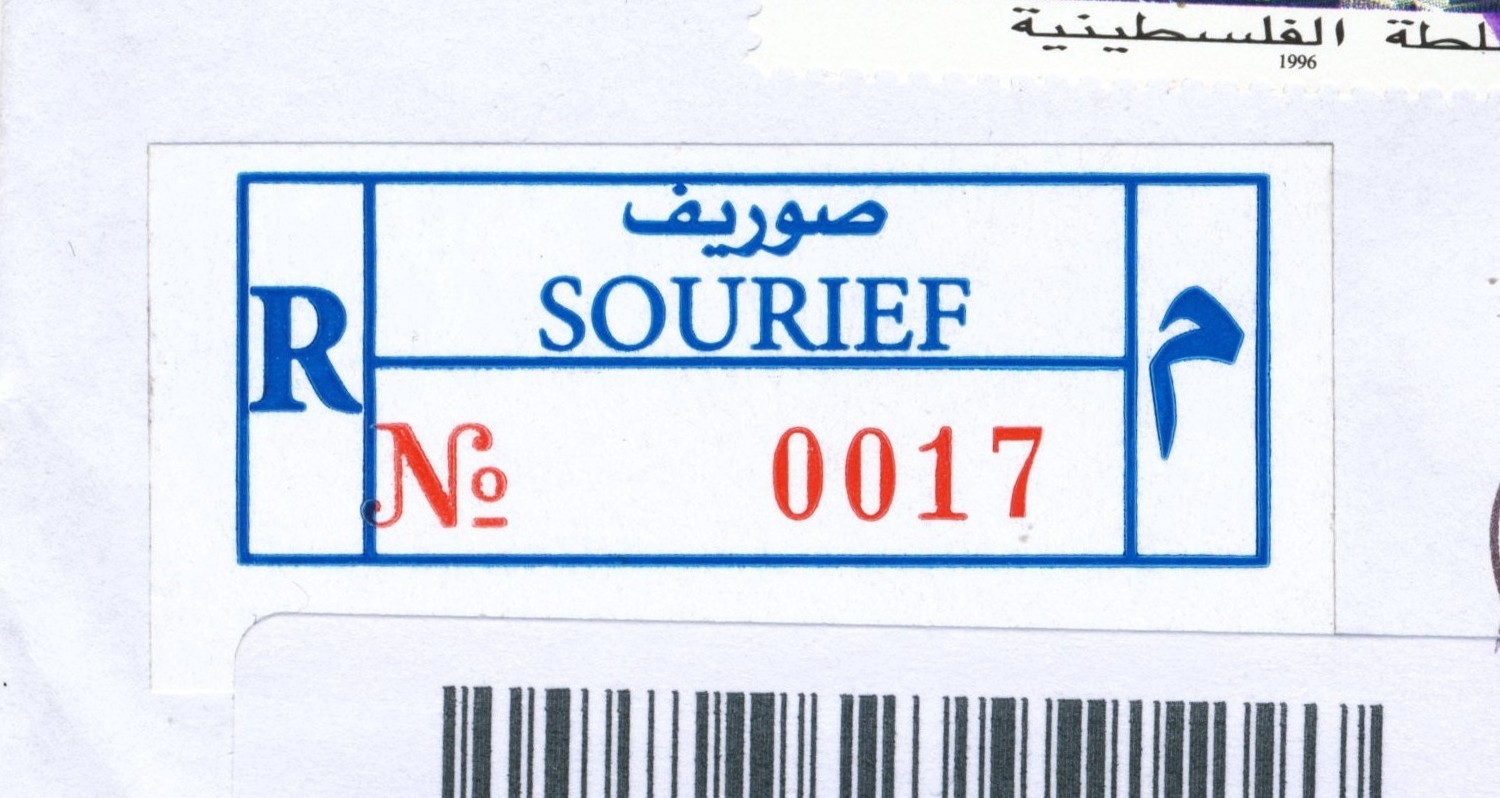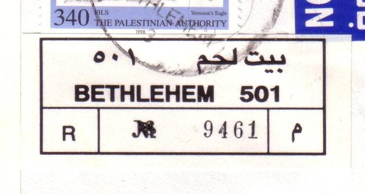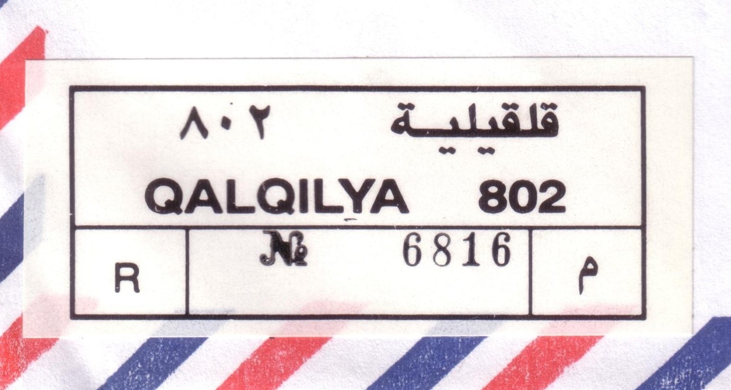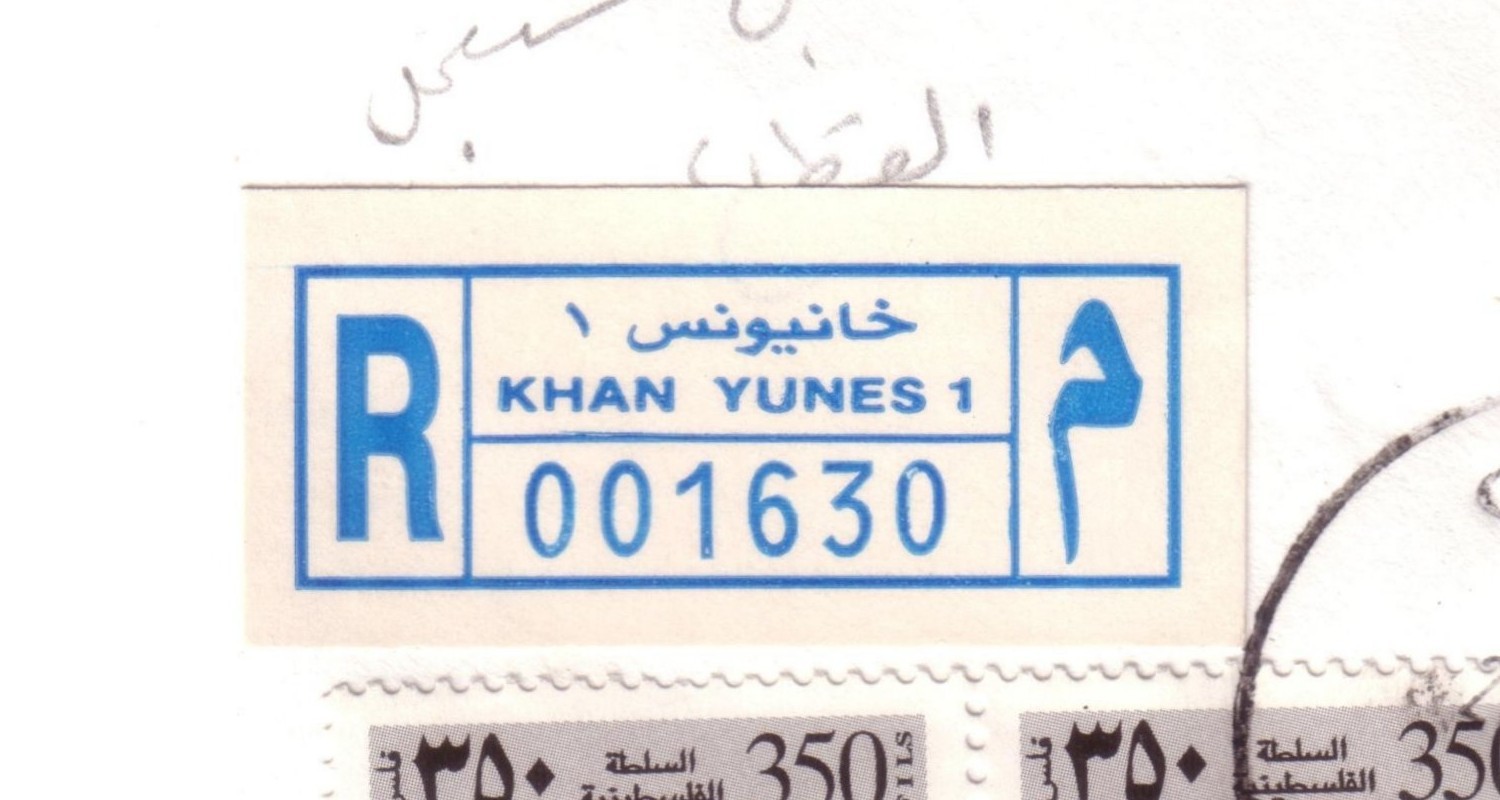 In 1995 the post offices under PNA control (ie. in the Gaza Strip and Jericho) were equipped with the B1 labels, and the newly opened offices during 1995 and 1996 in the Westbank were given labels B2, and from June 1996 A1. The former is common to both Gaza and the Westbank, whereas the latter is only used in the Westbank. Type B2x starts appearing in July 1995 in Jericho, with sporadic use only in Westbank offices (like Ramallah Central Sorting) but more widepread in the Gaza Strip. From June 1997, the A2 labels appear in smaller, often newly established offices, in Westbank towns. Use of A2 (apart from a few instances) ends in 1999.