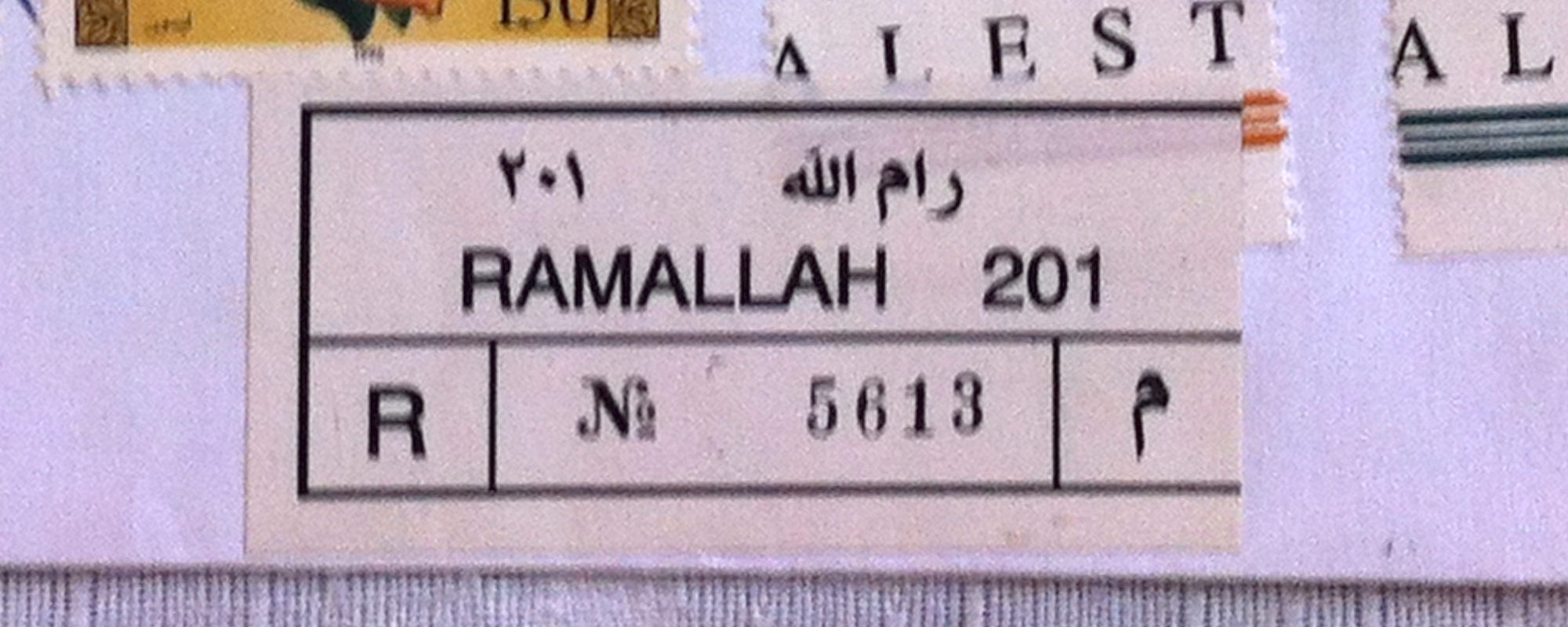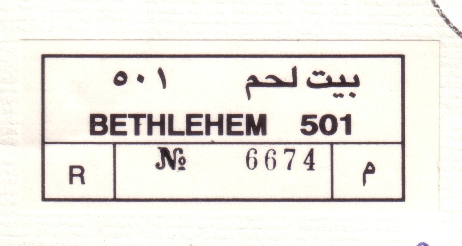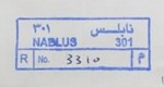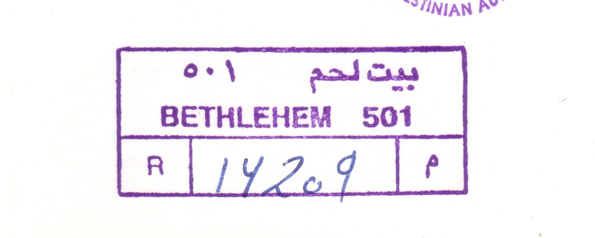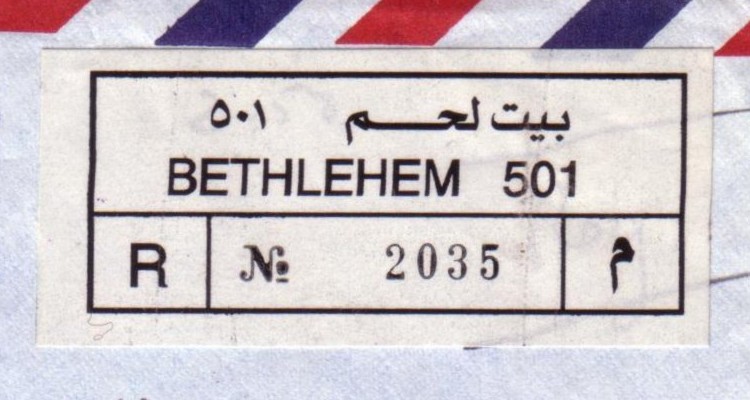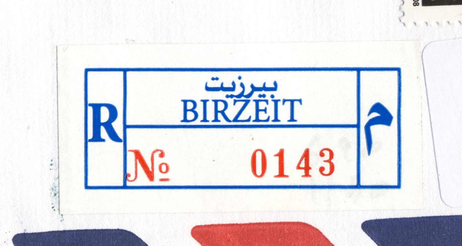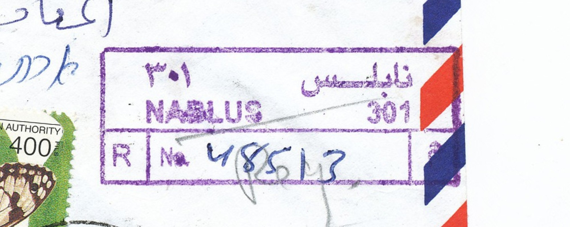 In 1995 the post offices under PNA control (ie. in the Gaza Strip and Jericho) were equipped with the B1 labels, and the newly opened offices during 1995 and 1996 in the Westbank were given labels B2, and from June 1996 A1. The former is common to both Gaza and the Westbank, whereas the latter is only used in the Westbank. Type B2x starts appearing in July 1995 in Jericho, with sporadic use only in Westbank offices (like Ramallah Central Sorting) but more widepread in the Gaza Strip. From June 1997, the A2 labels appear in smaller, often newly established offices, in Westbank towns. Use of A2 (apart from a few instances) ends in 1999.