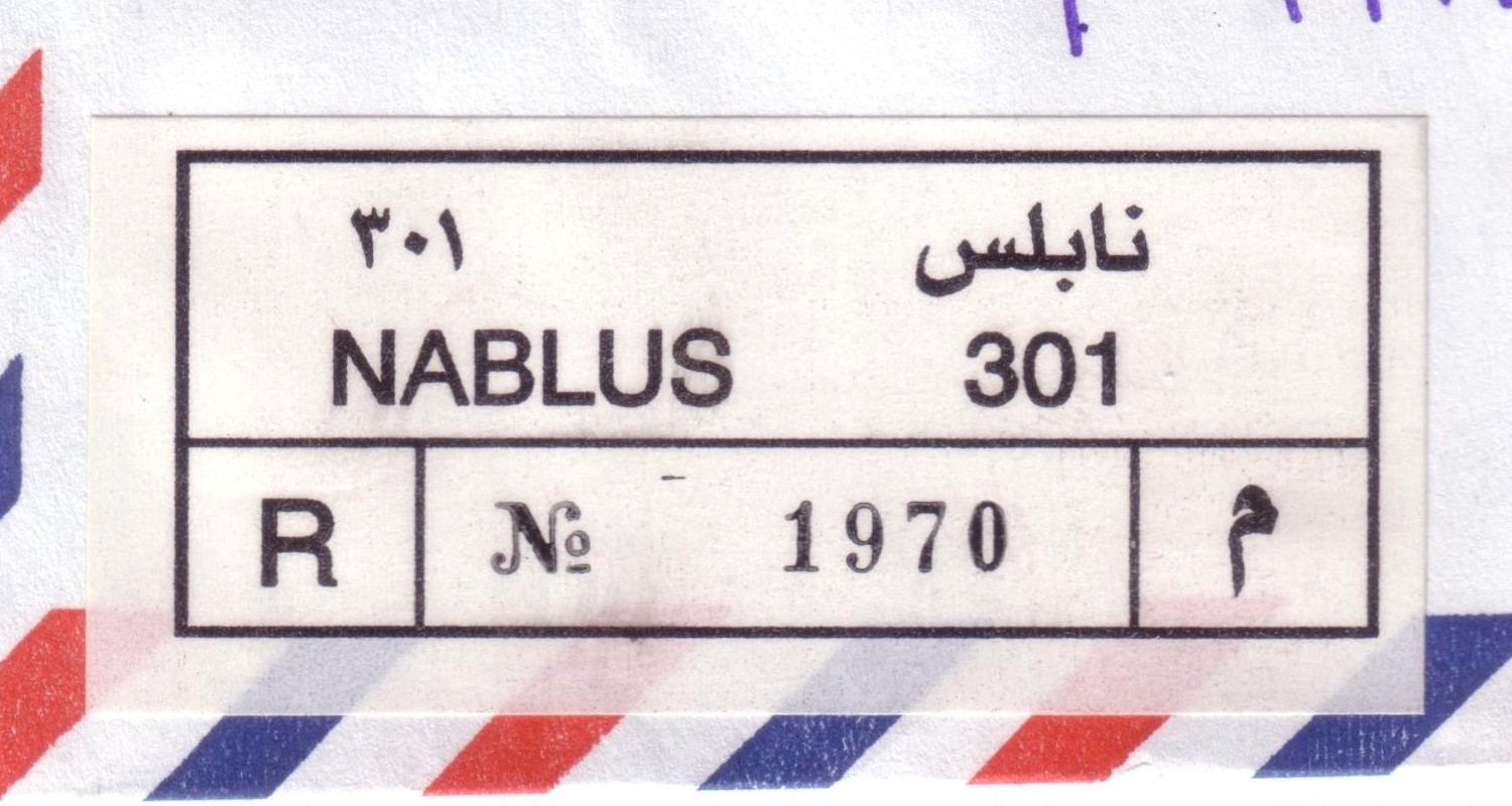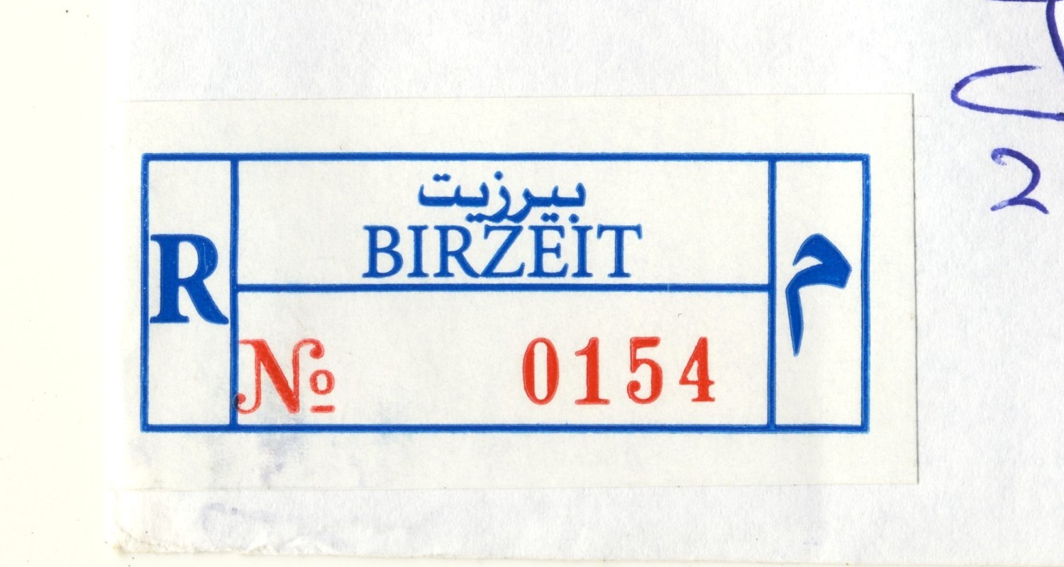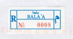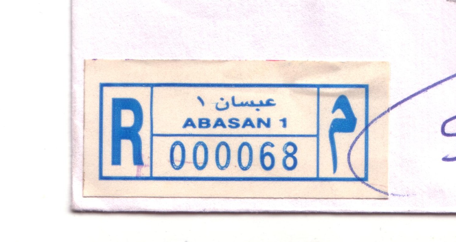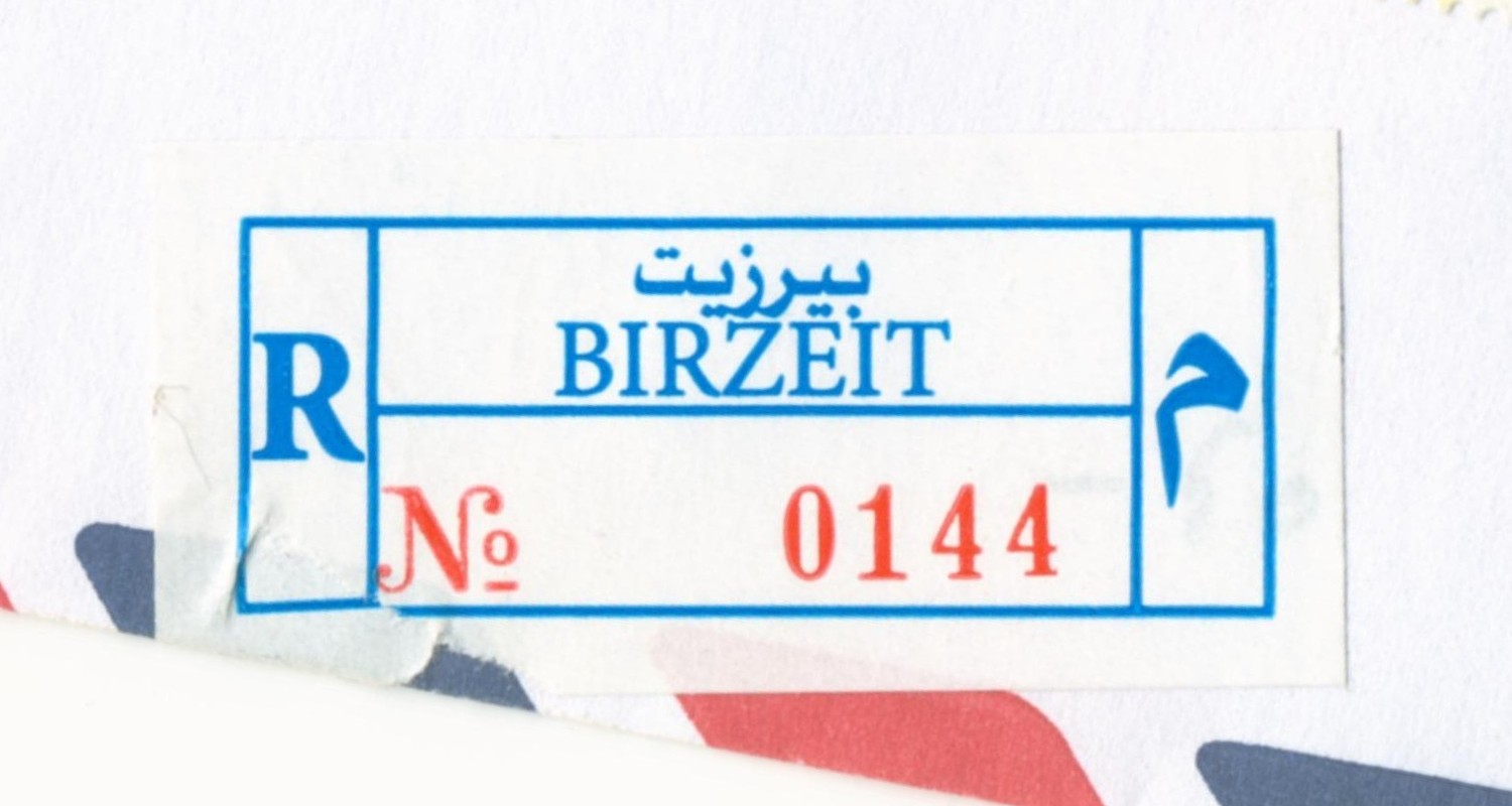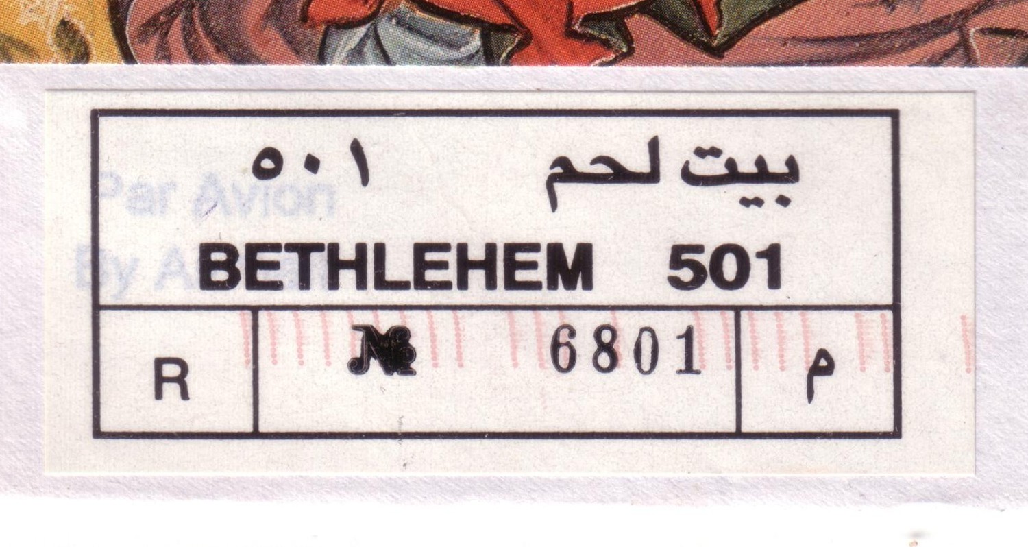 In 1995 the post offices under PNA control (ie. in the Gaza Strip and Jericho) were equipped with the B1 labels, and the newly opened offices during 1995 and 1996 in the Westbank were given labels B2, and from June 1996 A1. The former is common to both Gaza and the Westbank, whereas the latter is only used in the Westbank. Type B2x starts appearing in July 1995 in Jericho, with sporadic use only in Westbank offices (like Ramallah Central Sorting) but more widepread in the Gaza Strip. From June 1997, the A2 labels appear in smaller, often newly established offices, in Westbank towns. Use of A2 (apart from a few instances) ends in 1999.
