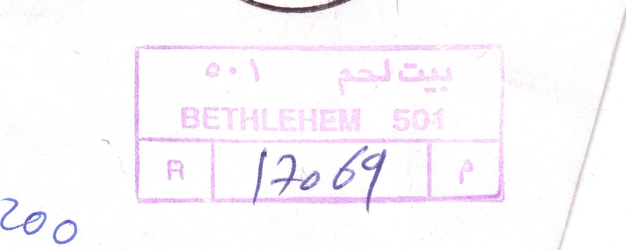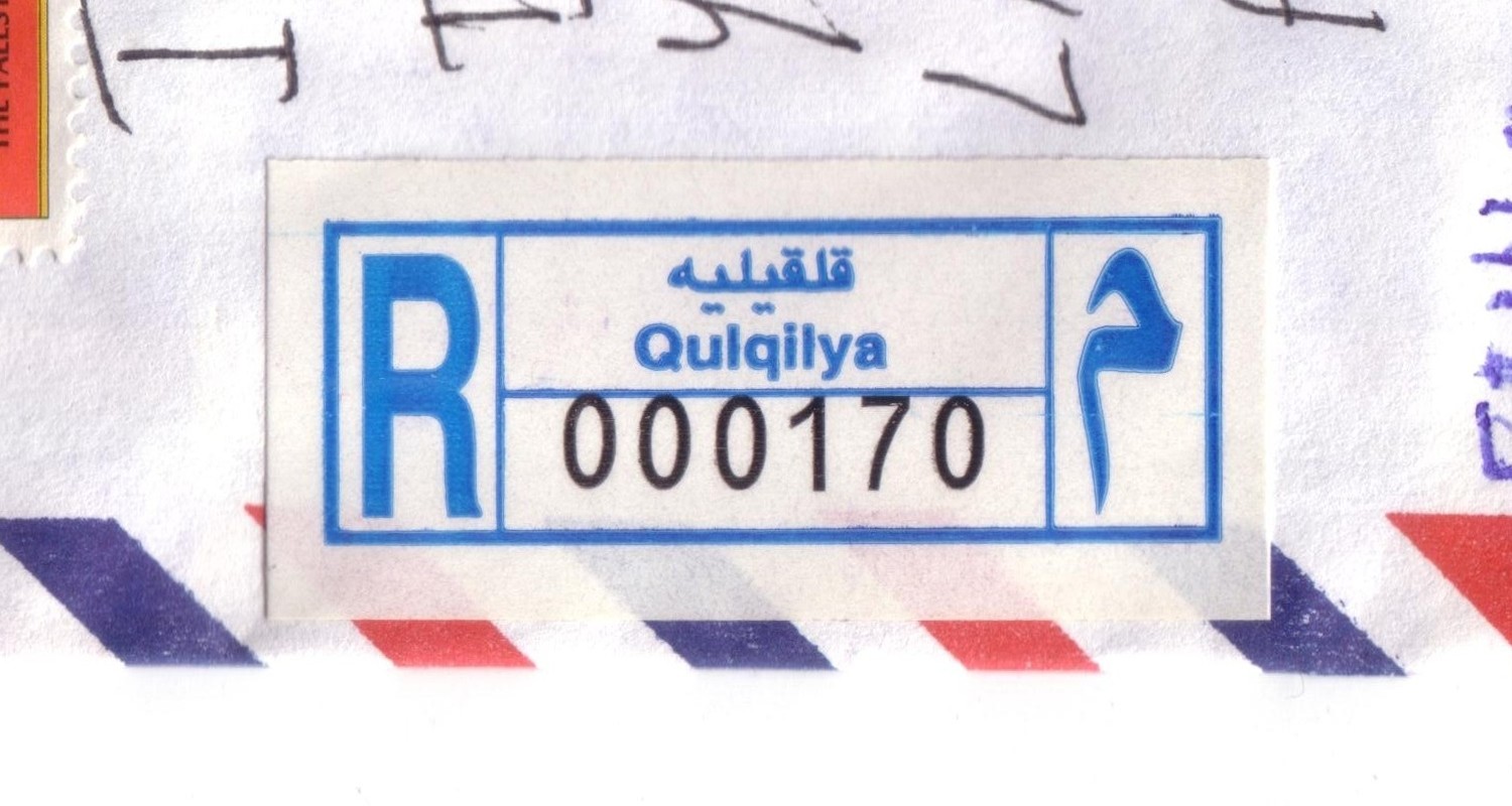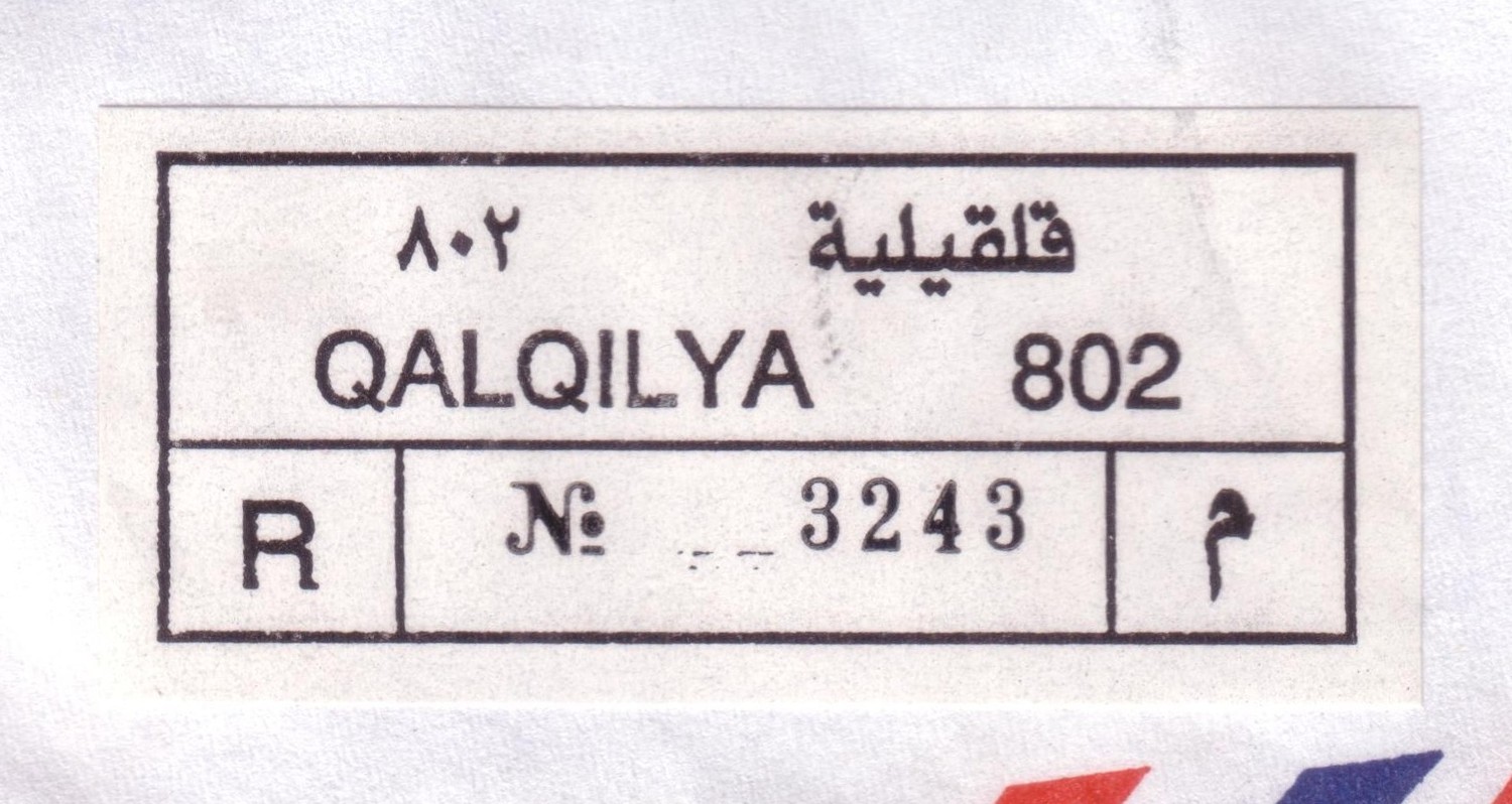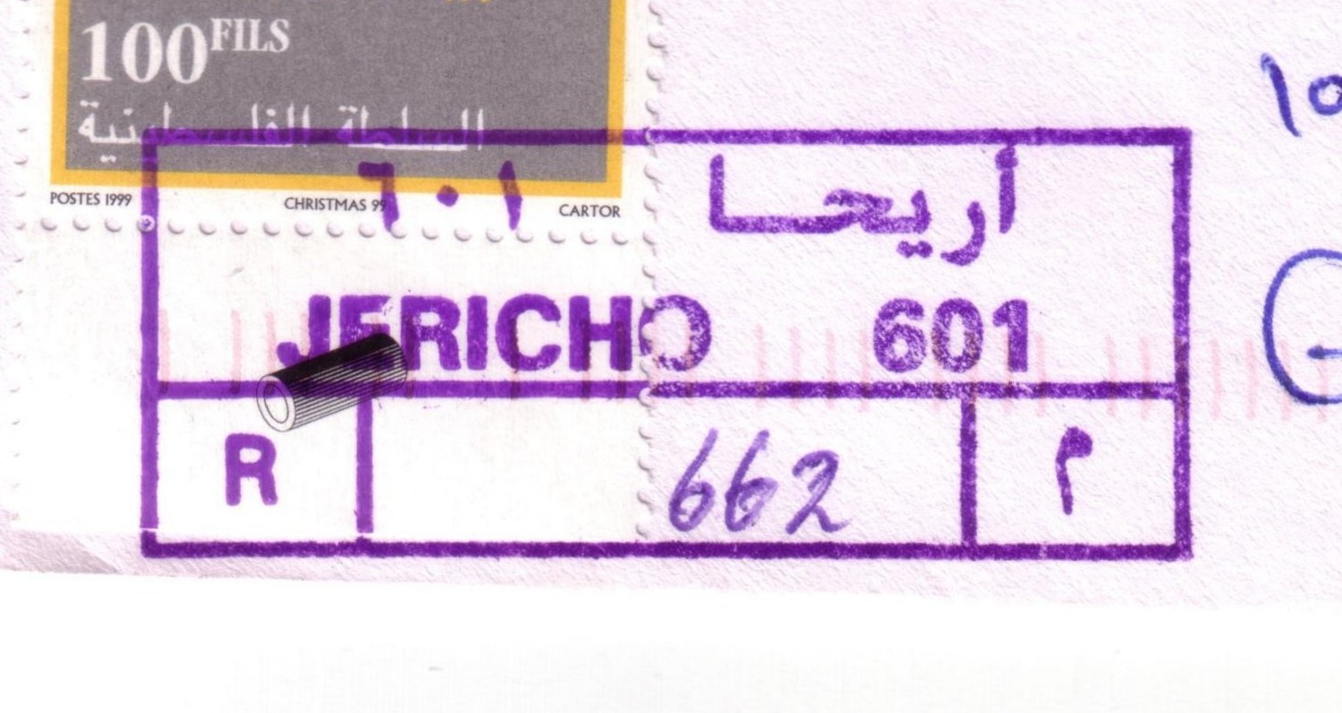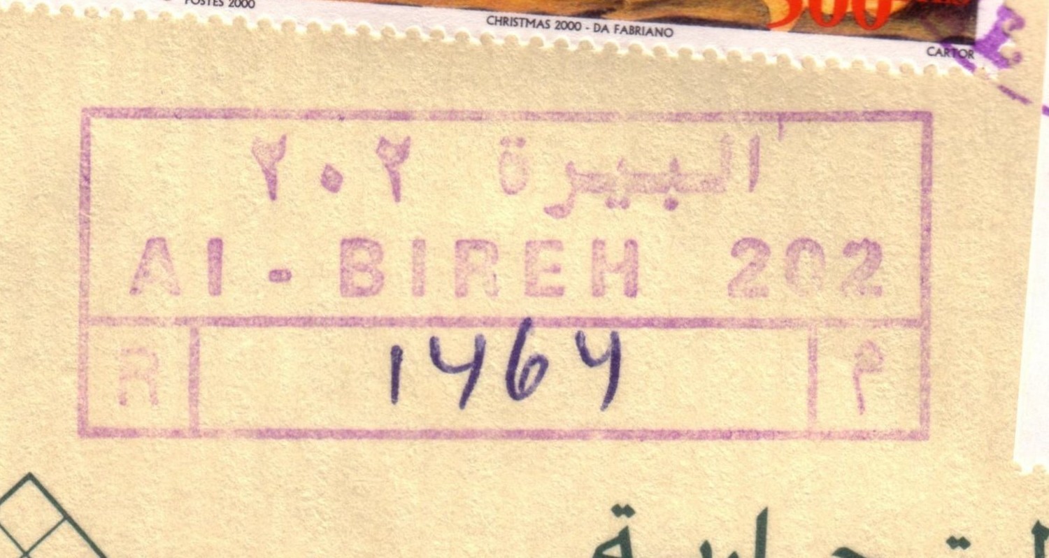 In 1995 the post offices under PNA control (ie. in the Gaza Strip and Jericho) were equipped with the B1 labels, and the newly opened offices during 1995 and 1996 in the Westbank were given labels B2, and from June 1996 A1. The former is common to both Gaza and the Westbank, whereas the latter is only used in the Westbank. Type B2x starts appearing in July 1995 in Jericho, with sporadic use only in Westbank offices (like Ramallah Central Sorting) but more widepread in the Gaza Strip. From June 1997, the A2 labels appear in smaller, often newly established offices, in Westbank towns. Use of A2 (apart from a few instances) ends in 1999.