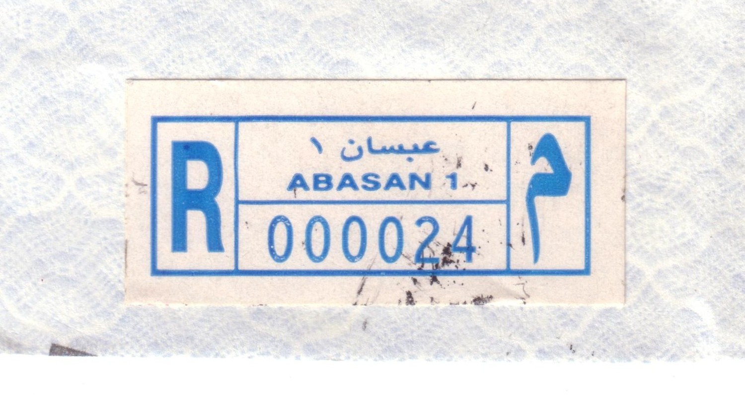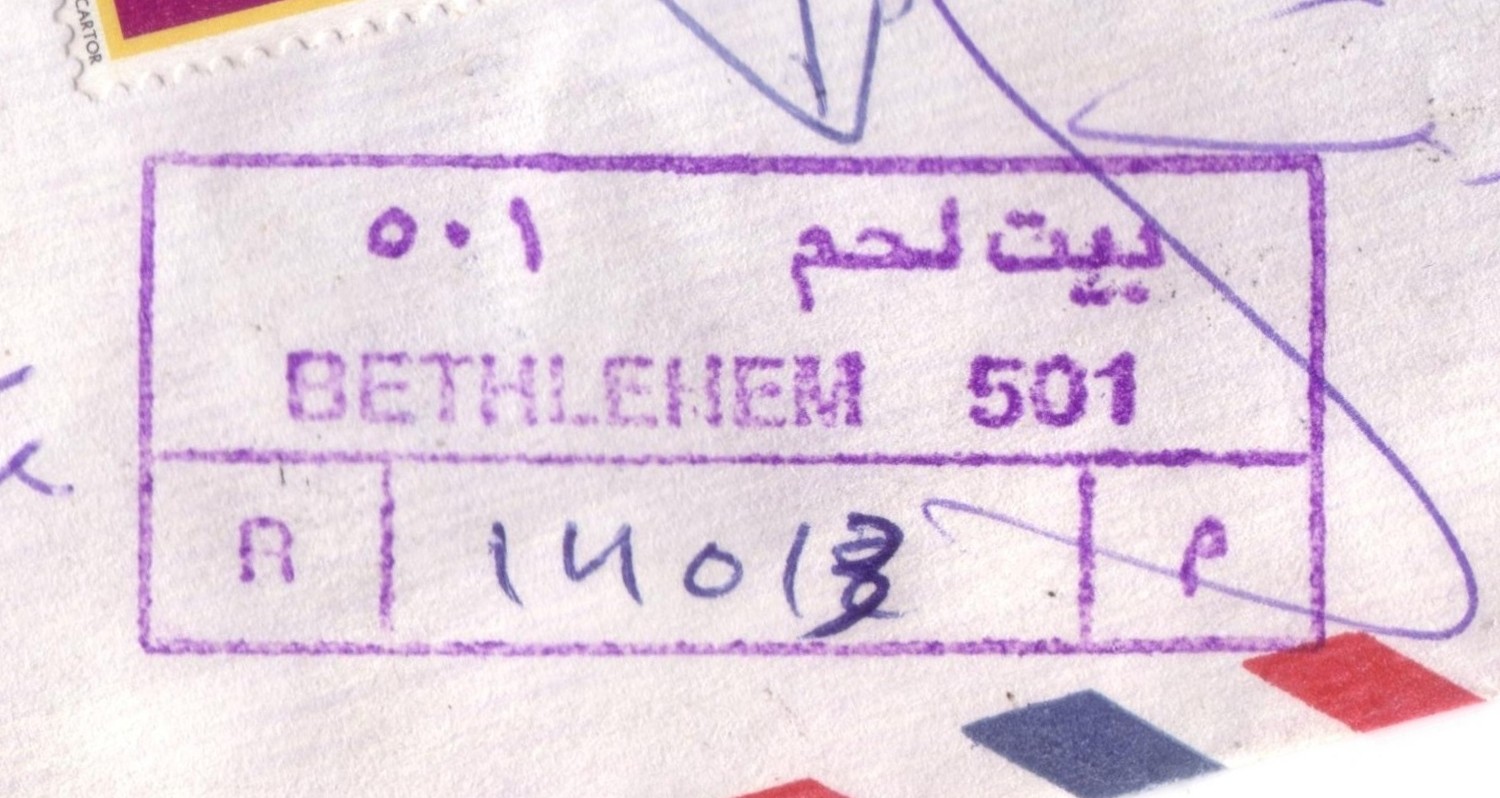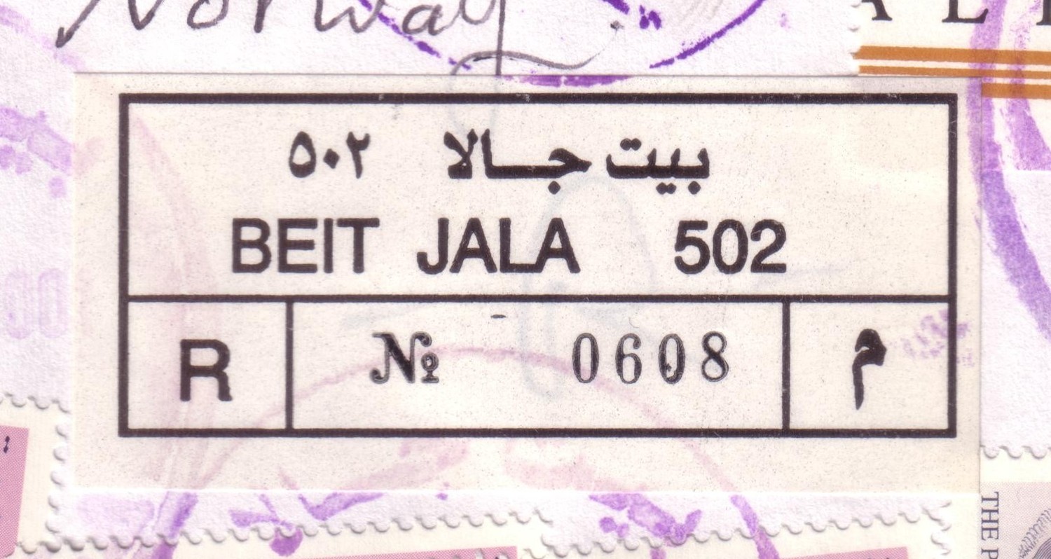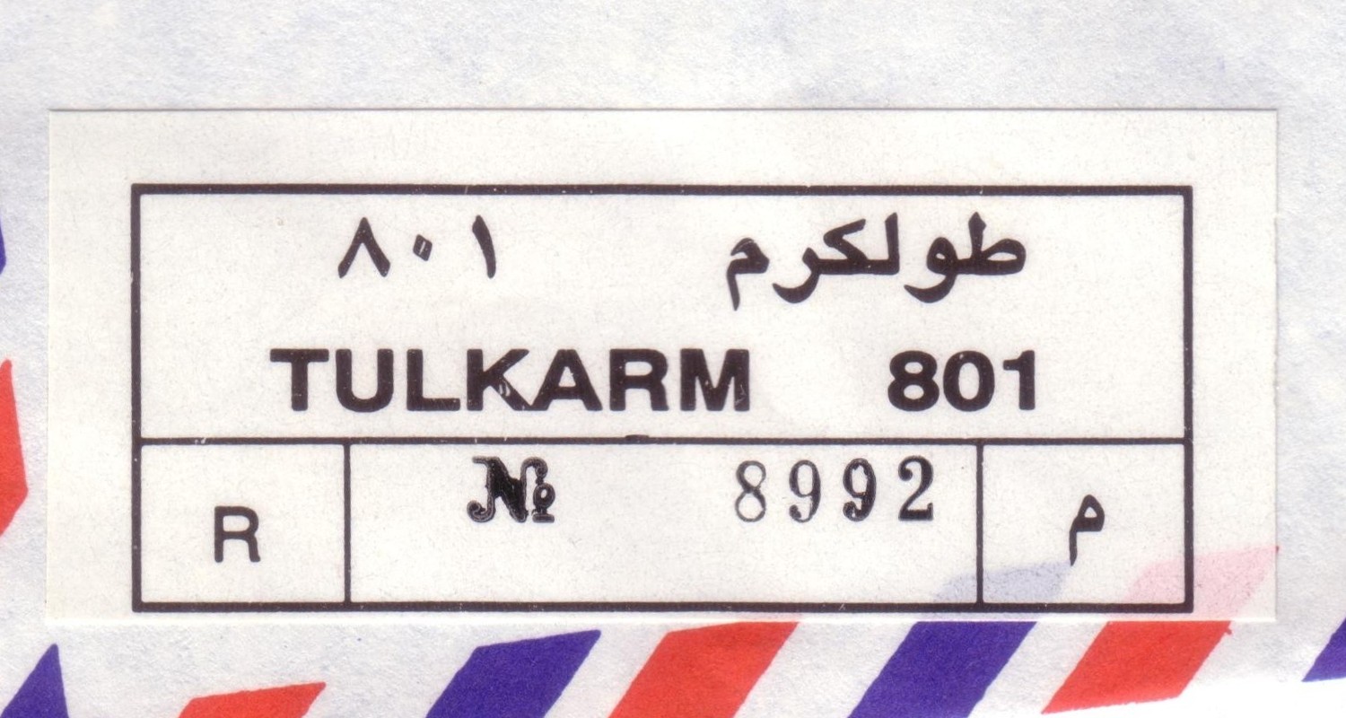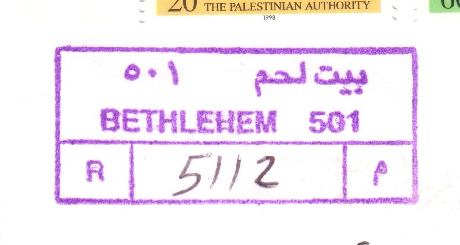 In 1995 the post offices under PNA control (ie. in the Gaza Strip and Jericho) were equipped with the B1 labels, and the newly opened offices during 1995 and 1996 in the Westbank were given labels B2, and from June 1996 A1. The former is common to both Gaza and the Westbank, whereas the latter is only used in the Westbank. Type B2x starts appearing in July 1995 in Jericho, with sporadic use only in Westbank offices (like Ramallah Central Sorting) but more widepread in the Gaza Strip. From June 1997, the A2 labels appear in smaller, often newly established offices, in Westbank towns. Use of A2 (apart from a few instances) ends in 1999.