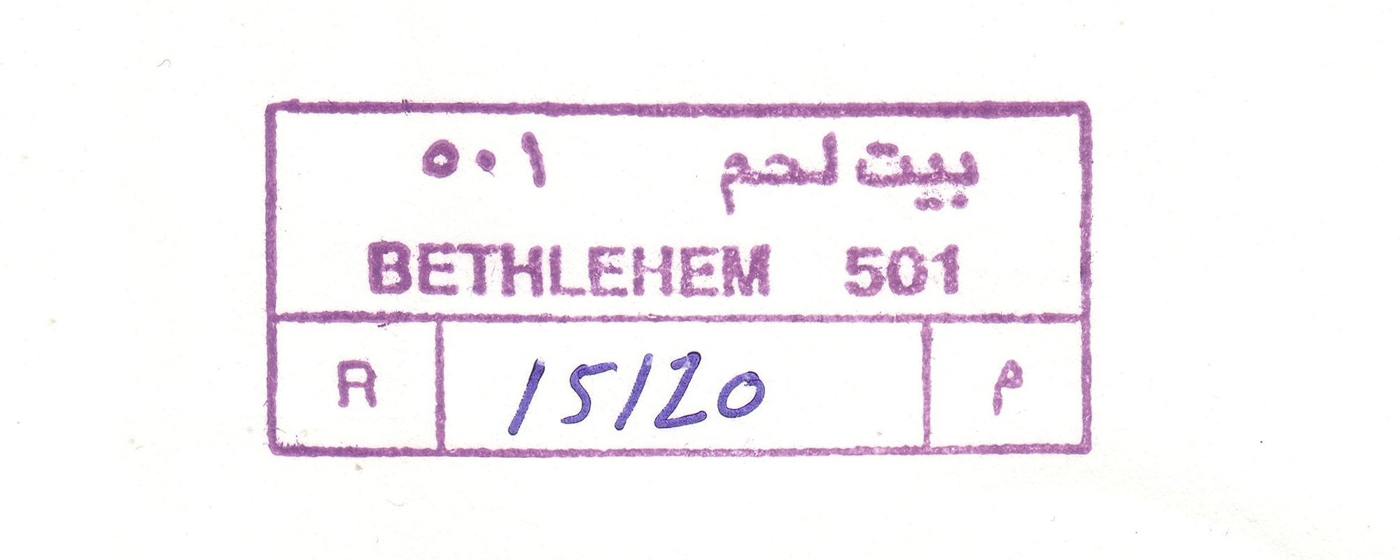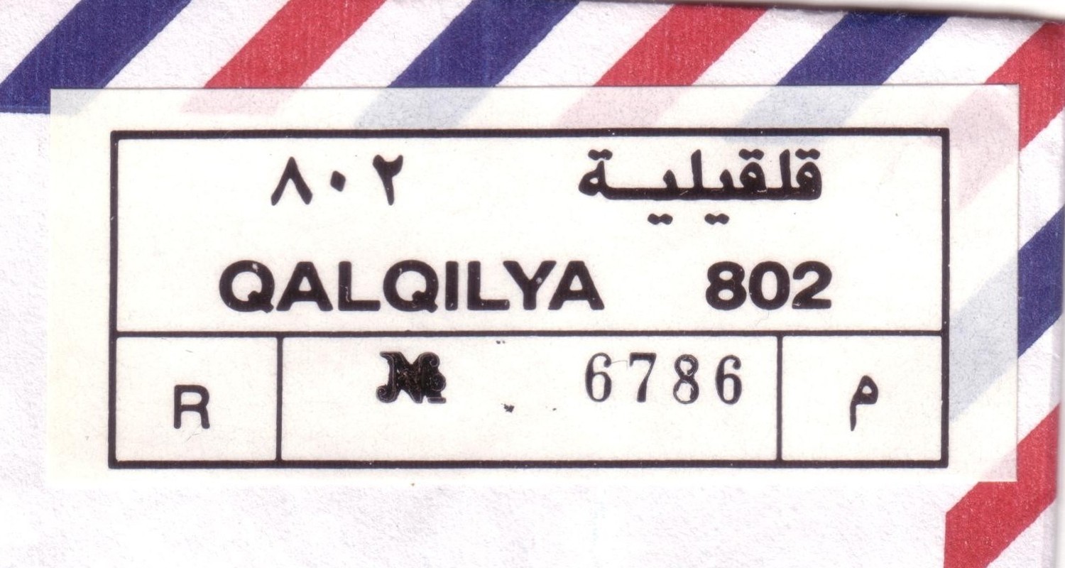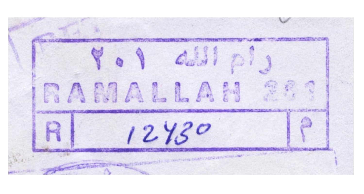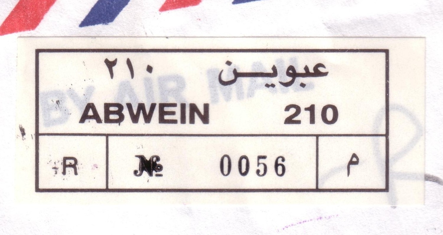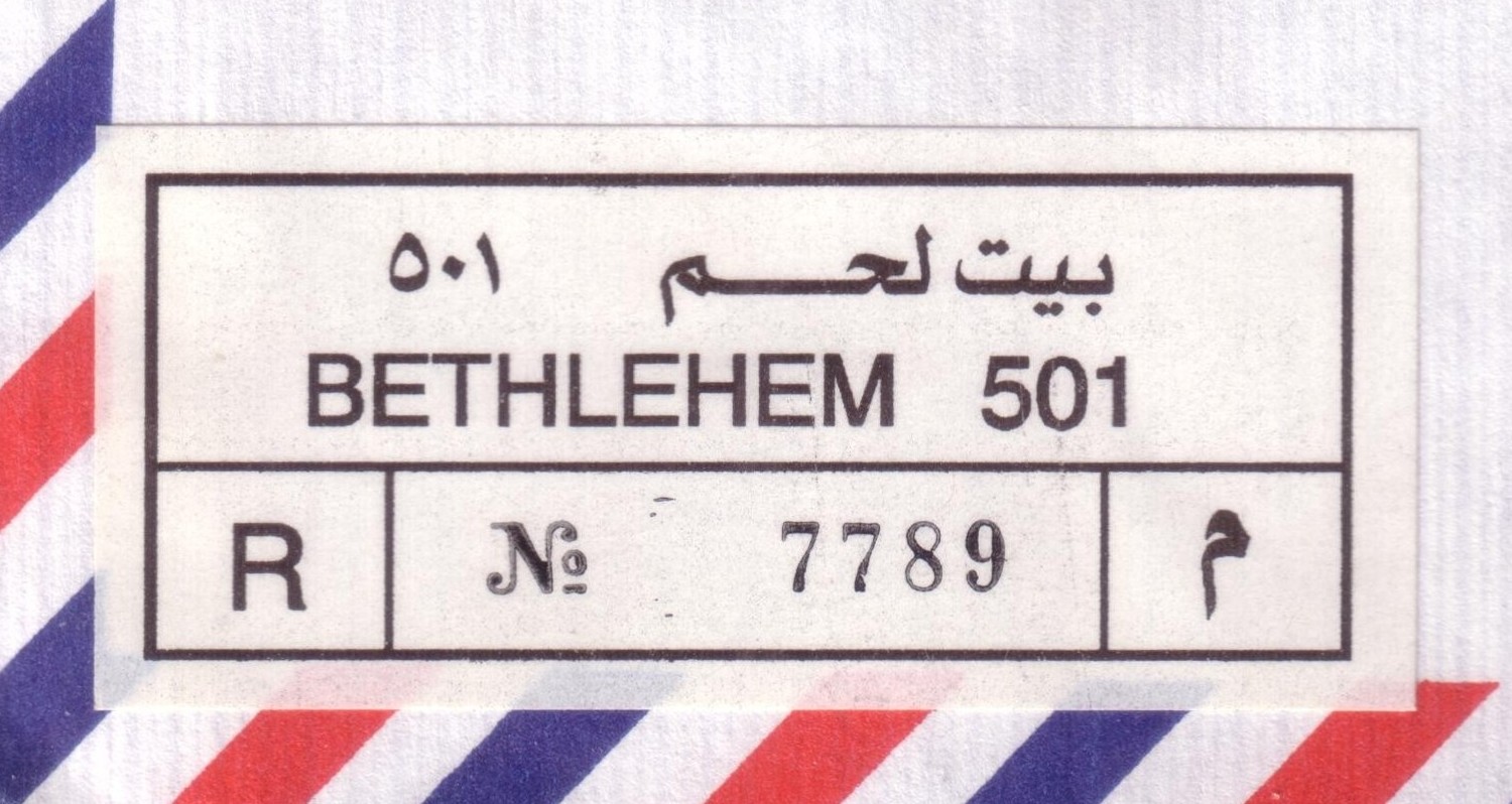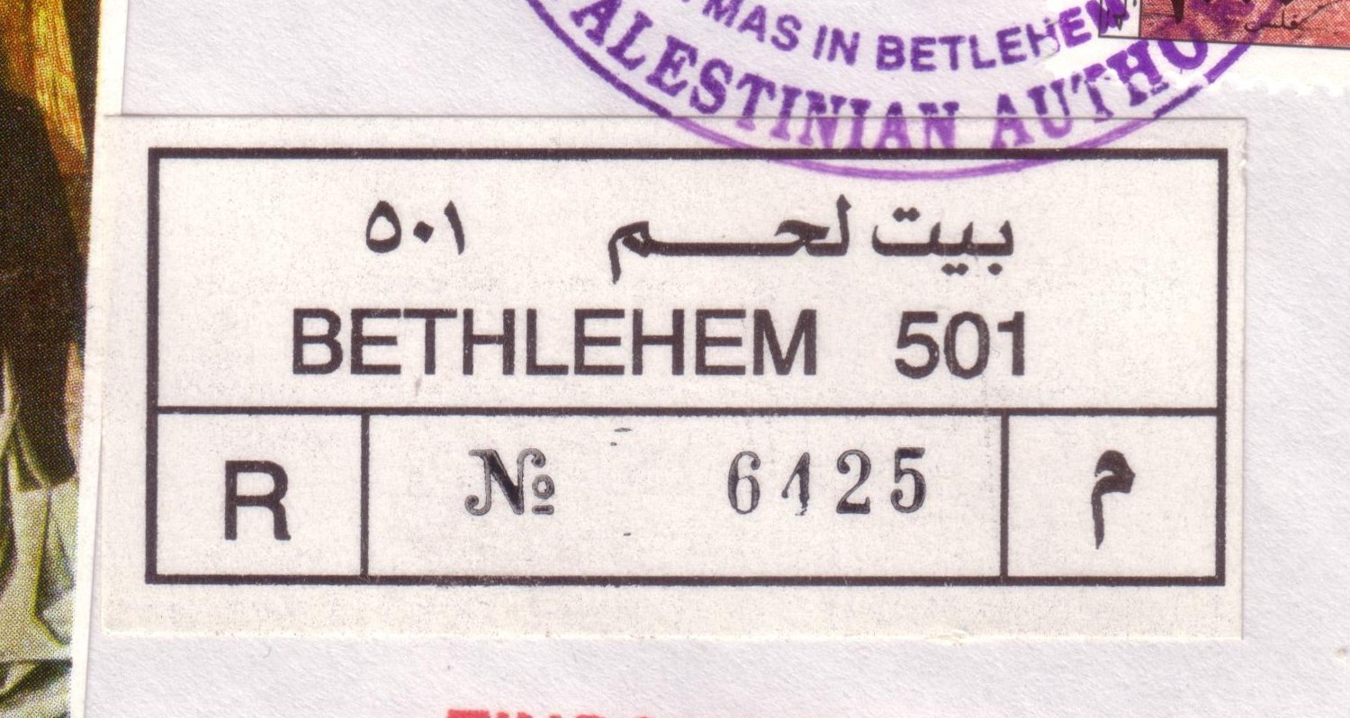 In 1995 the post offices under PNA control (ie. in the Gaza Strip and Jericho) were equipped with the B1 labels, and the newly opened offices during 1995 and 1996 in the Westbank were given labels B2, and from June 1996 A1. The former is common to both Gaza and the Westbank, whereas the latter is only used in the Westbank. Type B2x starts appearing in July 1995 in Jericho, with sporadic use only in Westbank offices (like Ramallah Central Sorting) but more widepread in the Gaza Strip. From June 1997, the A2 labels appear in smaller, often newly established offices, in Westbank towns. Use of A2 (apart from a few instances) ends in 1999.