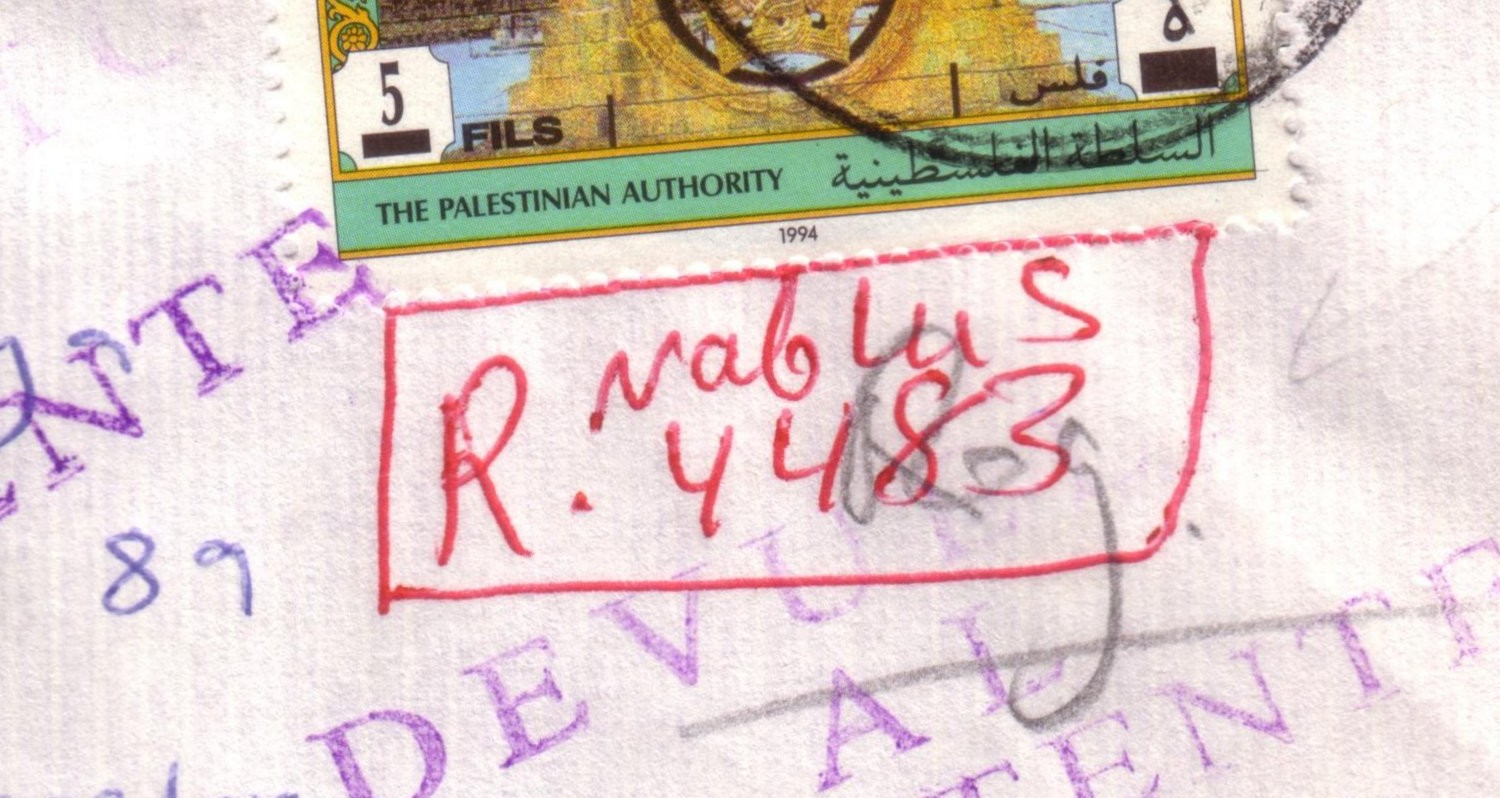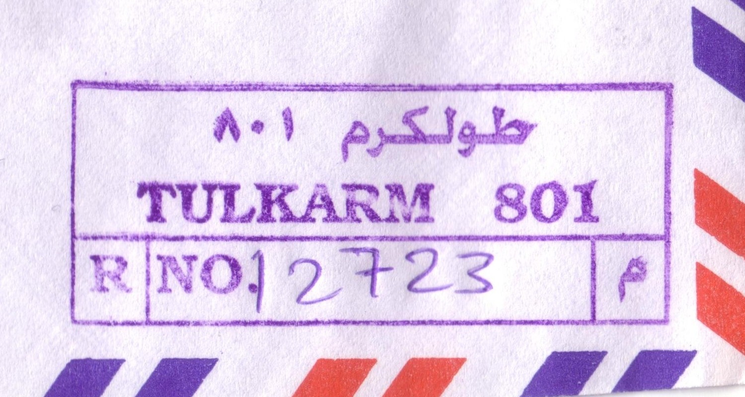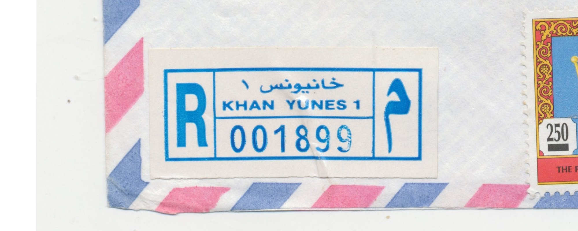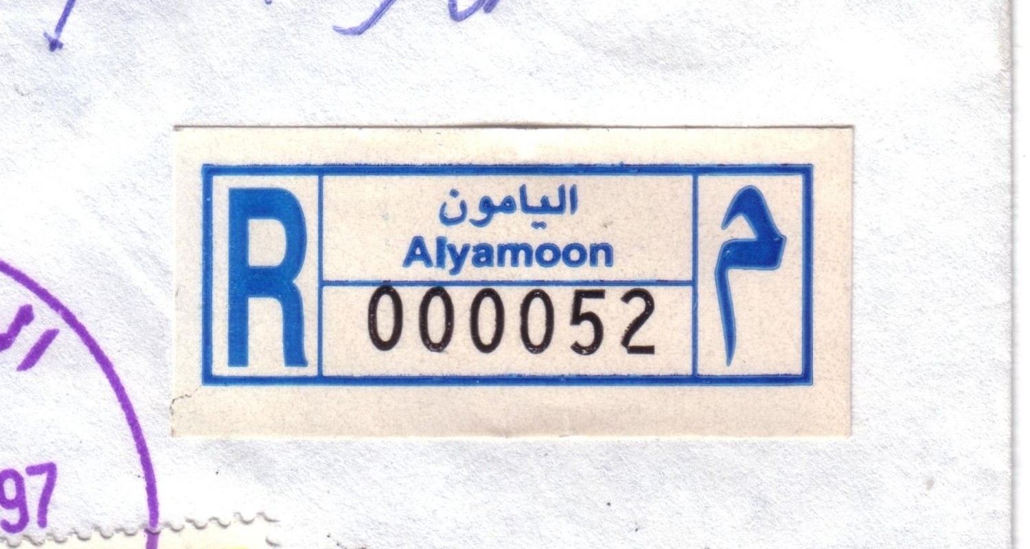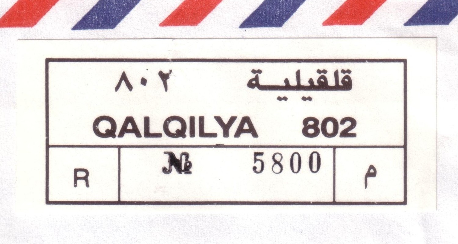 In 1995 the post offices under PNA control (ie. in the Gaza Strip and Jericho) were equipped with the B1 labels, and the newly opened offices during 1995 and 1996 in the Westbank were given labels B2, and from June 1996 A1. The former is common to both Gaza and the Westbank, whereas the latter is only used in the Westbank. Type B2x starts appearing in July 1995 in Jericho, with sporadic use only in Westbank offices (like Ramallah Central Sorting) but more widepread in the Gaza Strip. From June 1997, the A2 labels appear in smaller, often newly established offices, in Westbank towns. Use of A2 (apart from a few instances) ends in 1999.