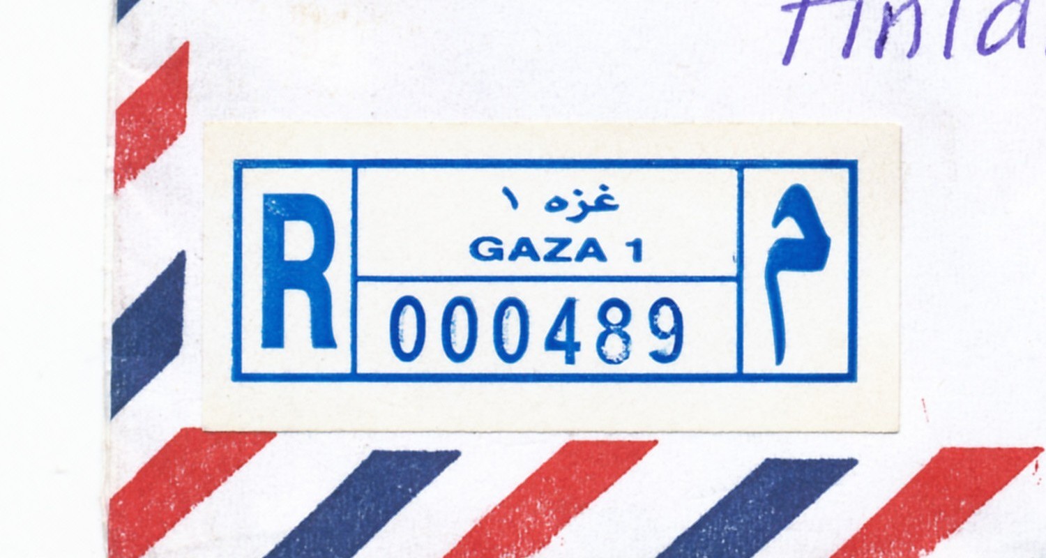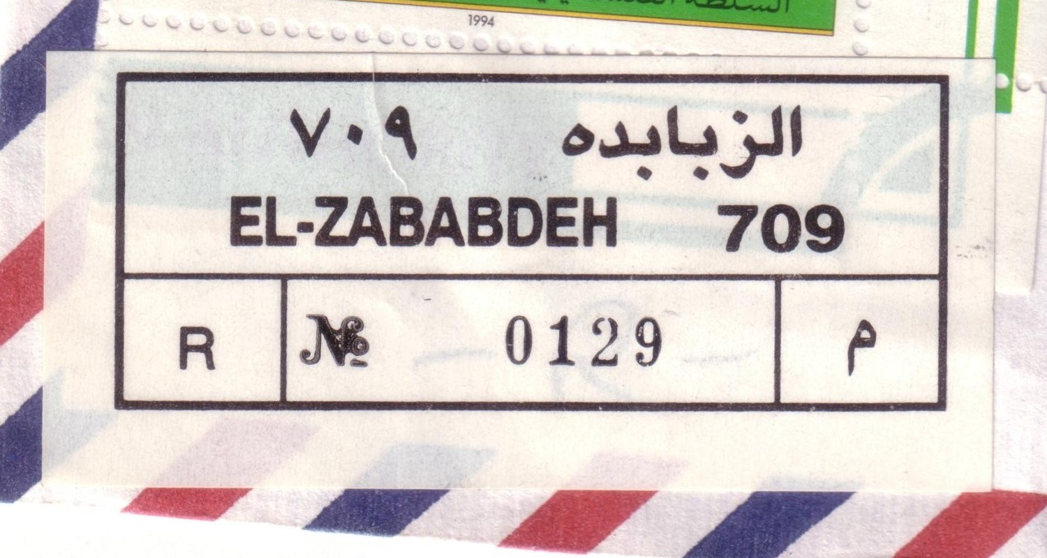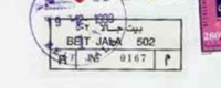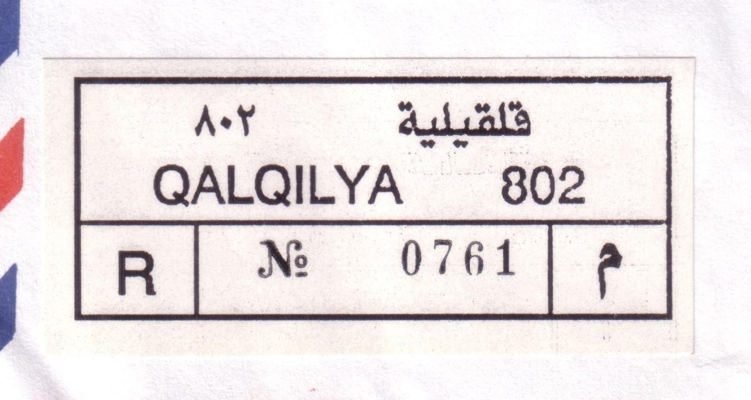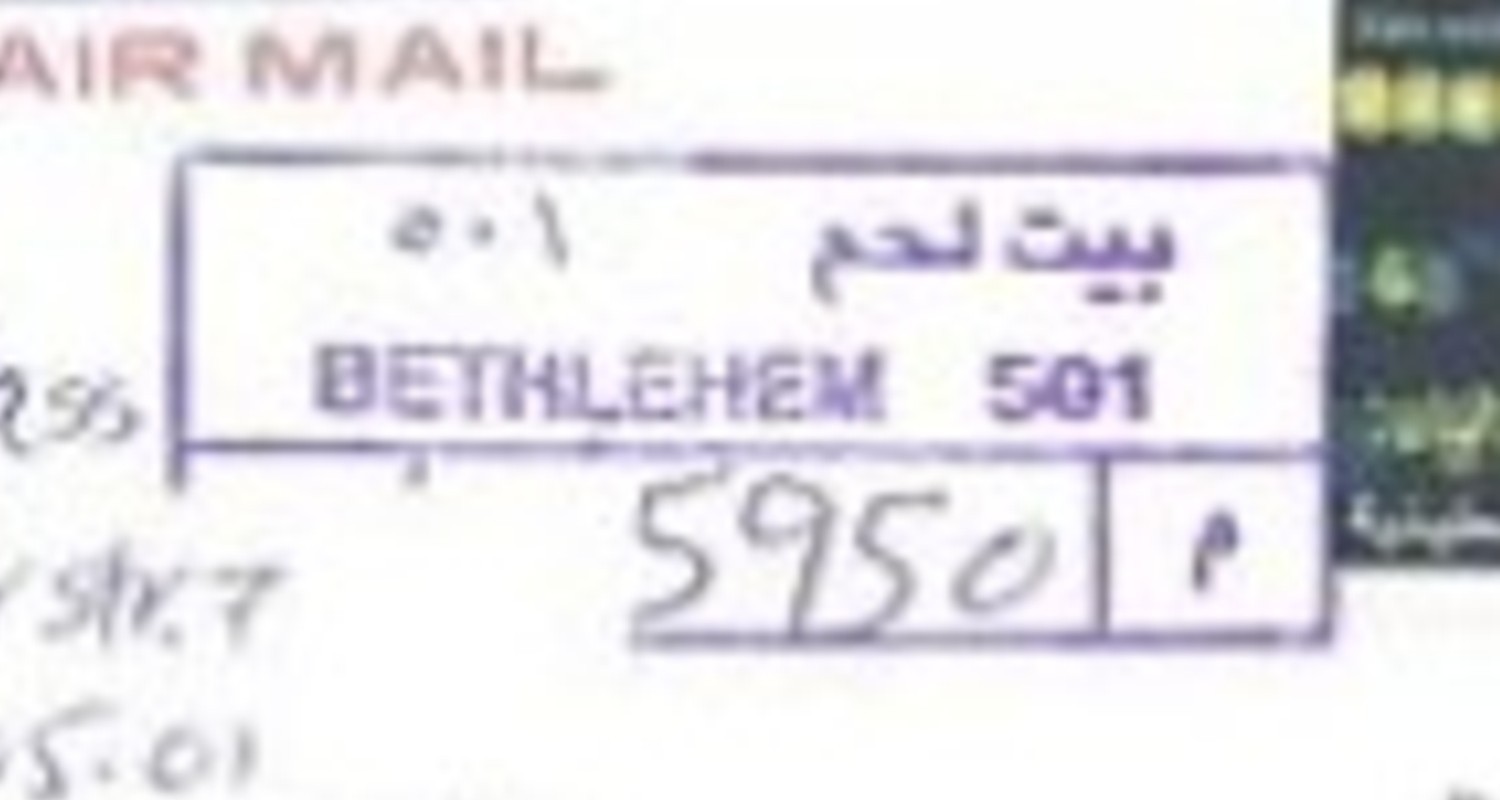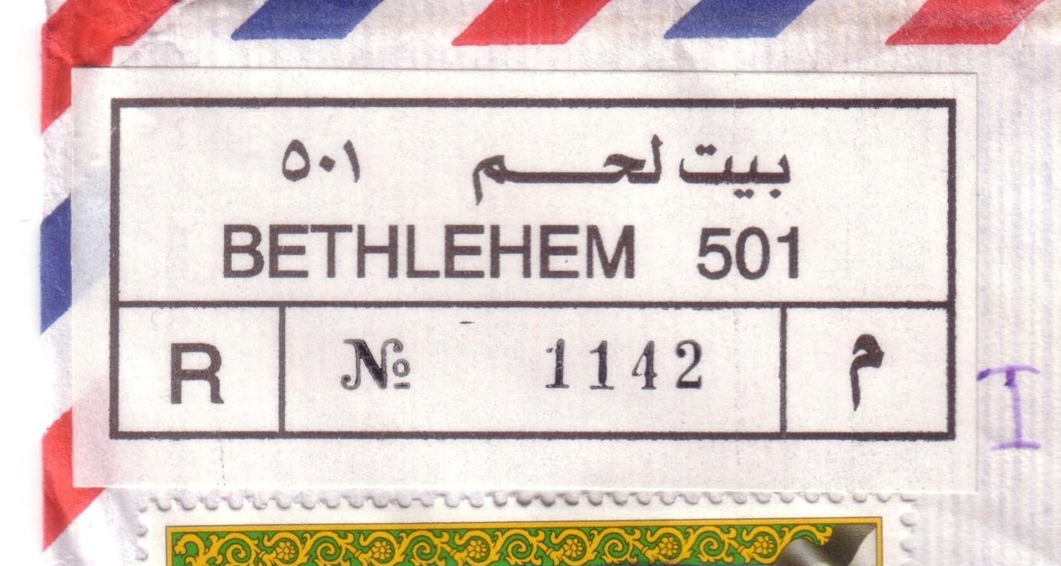 In 1995 the post offices under PNA control (ie. in the Gaza Strip and Jericho) were equipped with the B1 labels, and the newly opened offices during 1995 and 1996 in the Westbank were given labels B2, and from June 1996 A1. The former is common to both Gaza and the Westbank, whereas the latter is only used in the Westbank. Type B2x starts appearing in July 1995 in Jericho, with sporadic use only in Westbank offices (like Ramallah Central Sorting) but more widepread in the Gaza Strip. From June 1997, the A2 labels appear in smaller, often newly established offices, in Westbank towns. Use of A2 (apart from a few instances) ends in 1999.