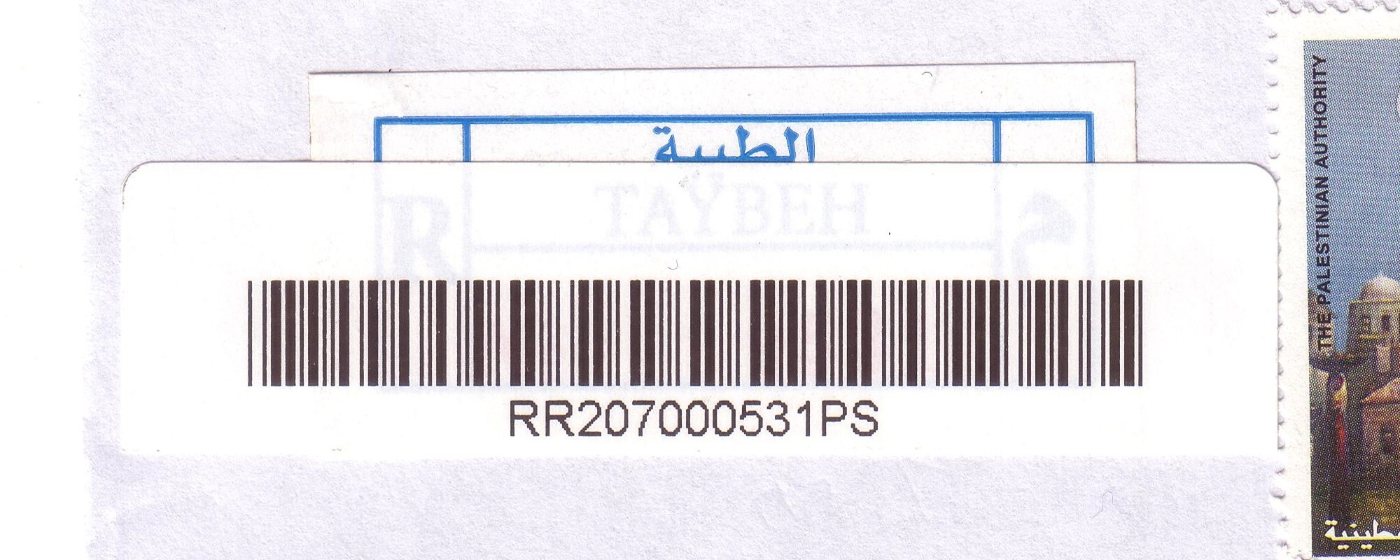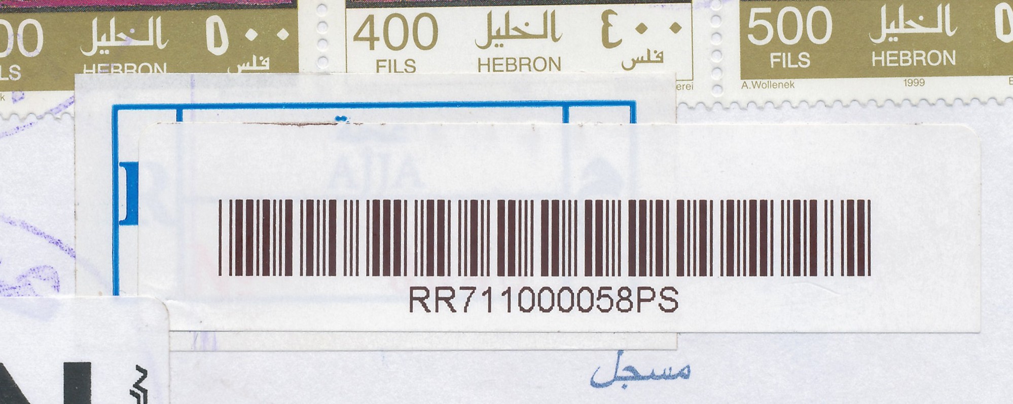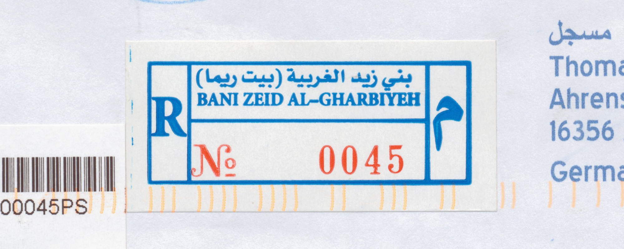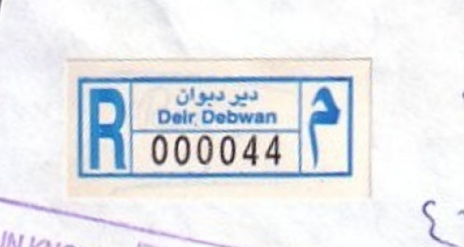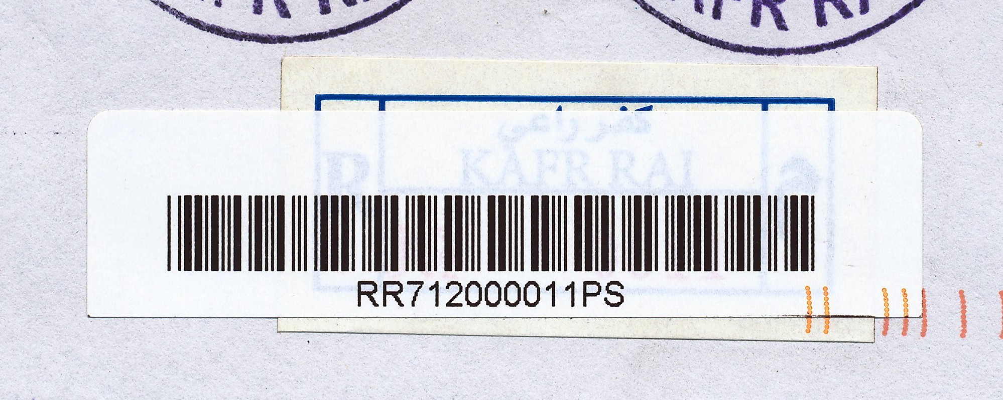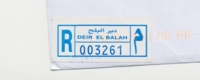 In March 2011, the Westbank's Palestine Post introduced the UPU software package "IPS Light" which resulted in the switch to computer-printed barcode labels (type D). In an early phase labels (types D1, D3, and D2) are applied at either head POs or central sorting as not all offices had yet been connected to the new system. Smaller offices actually apply old labels (mainly type B4), which are then labelled-over with IPS labels bearing a corresponding number. At some offices not supplied with 'old' labels a handwritten registration number sometimes appears besides the label itself.