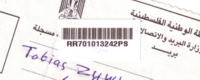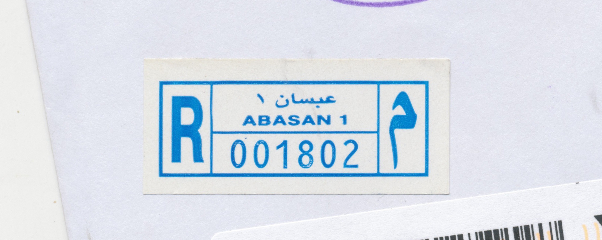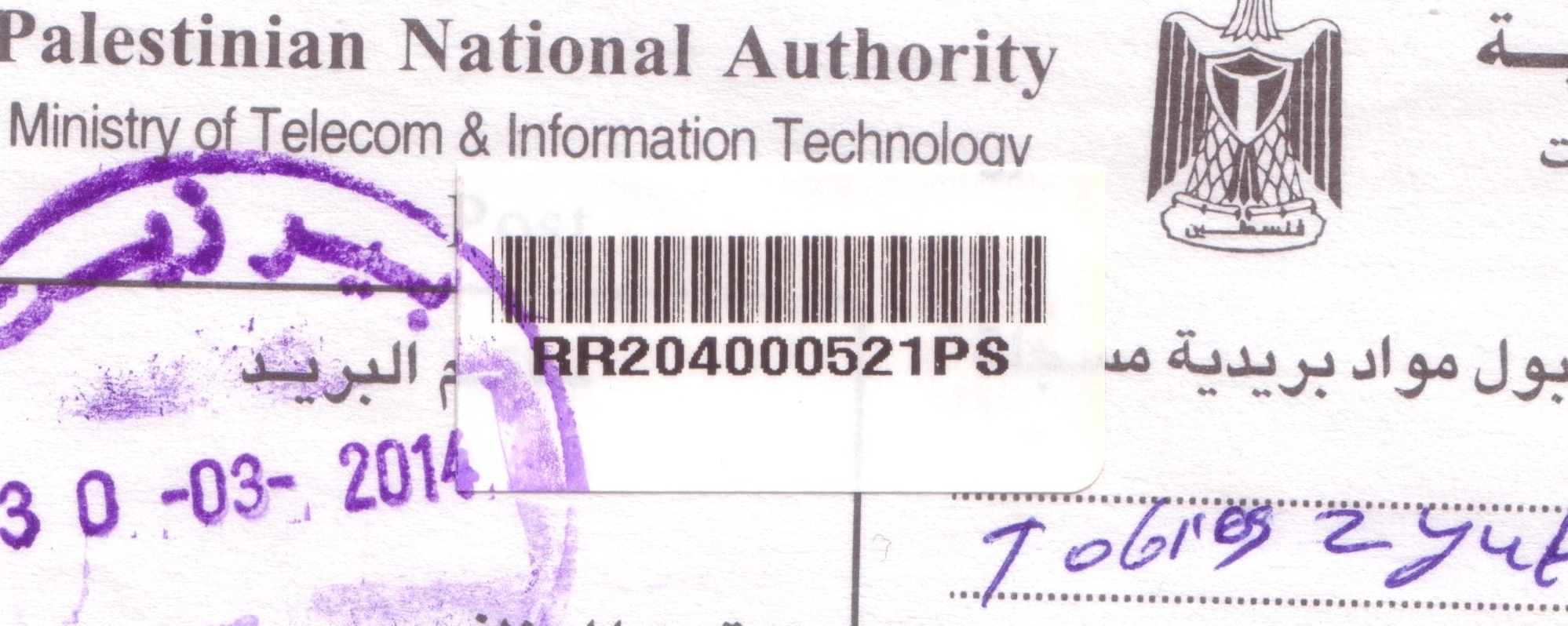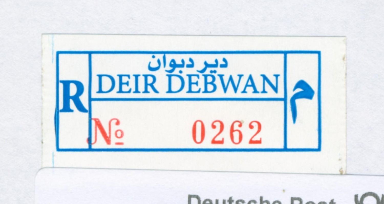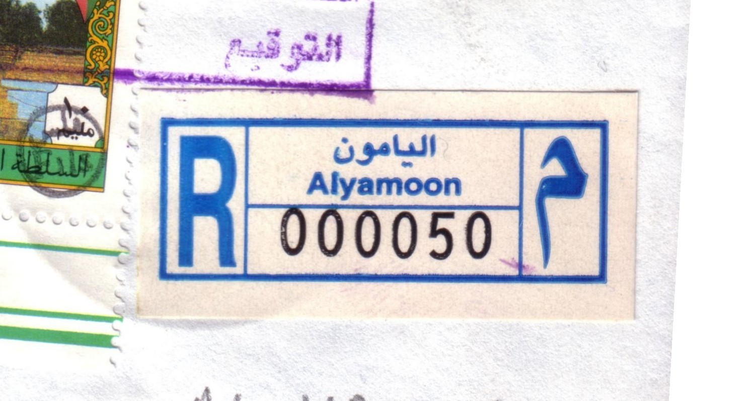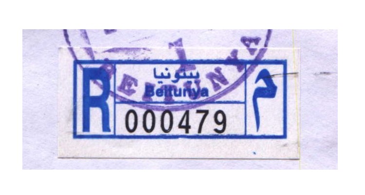 In March 2011, the Westbank's Palestine Post introduced the UPU software package "IPS Light" which resulted in the switch to computer-printed barcode labels (type D). In an early phase labels (types D1, D3, and D2) are applied at either head POs or central sorting as not all offices had yet been connected to the new system. Smaller offices actually apply old labels (mainly type B4), which are then labelled-over with IPS labels bearing a corresponding number. At some offices not supplied with 'old' labels a handwritten registration number sometimes appears besides the label itself.