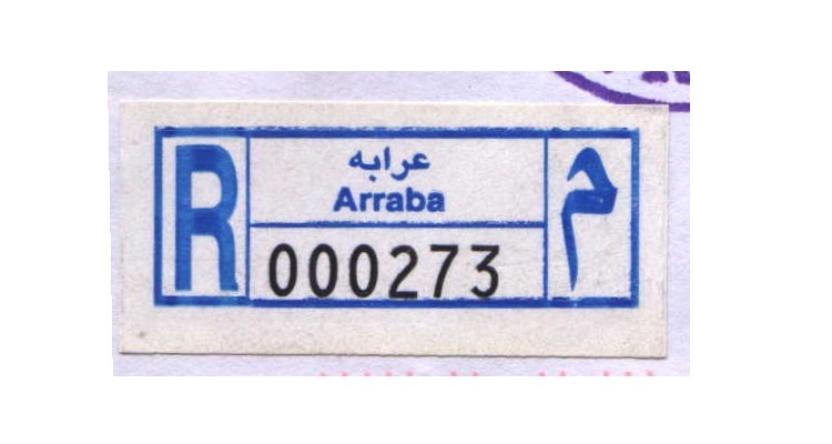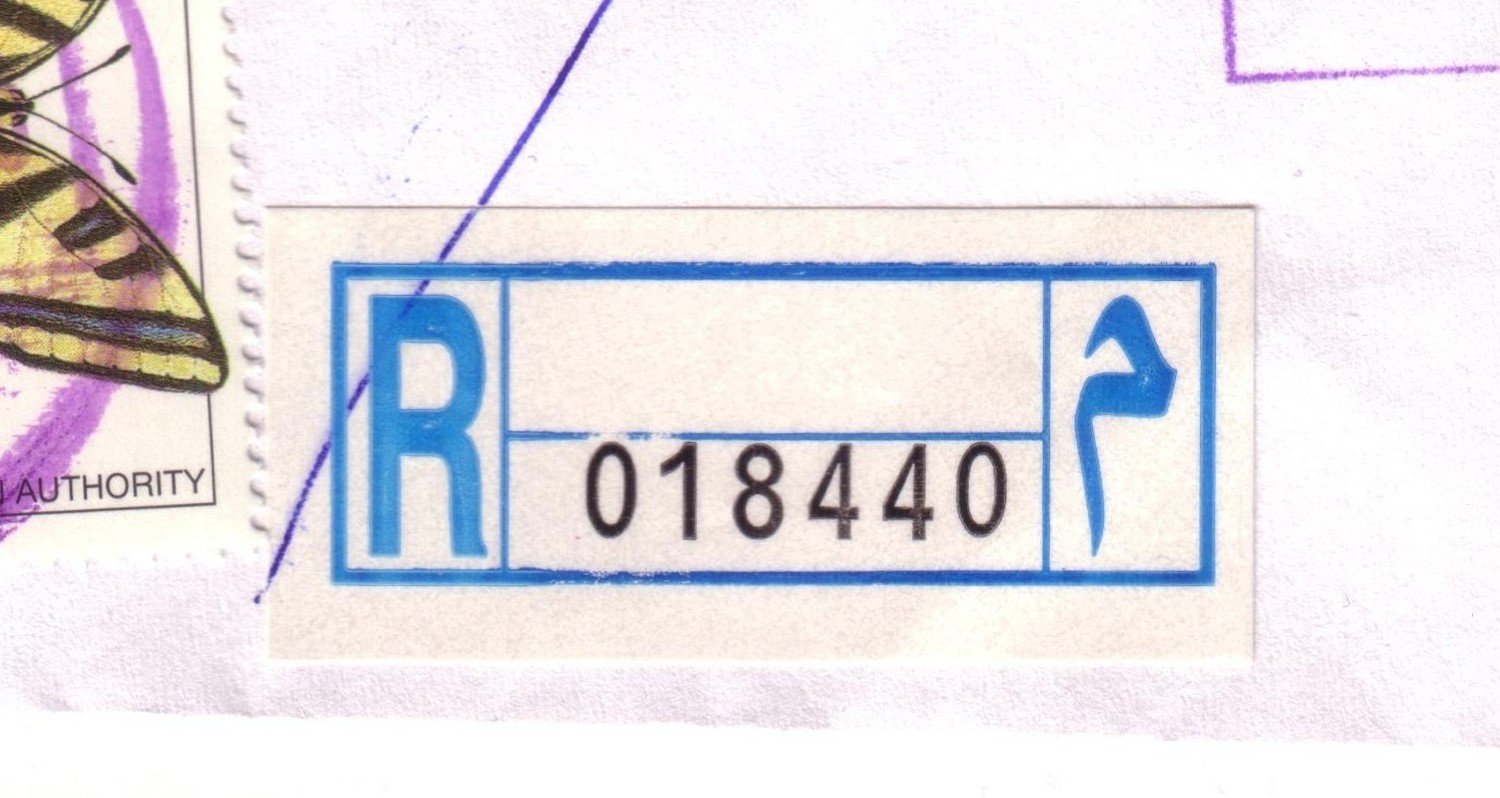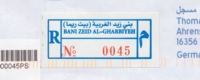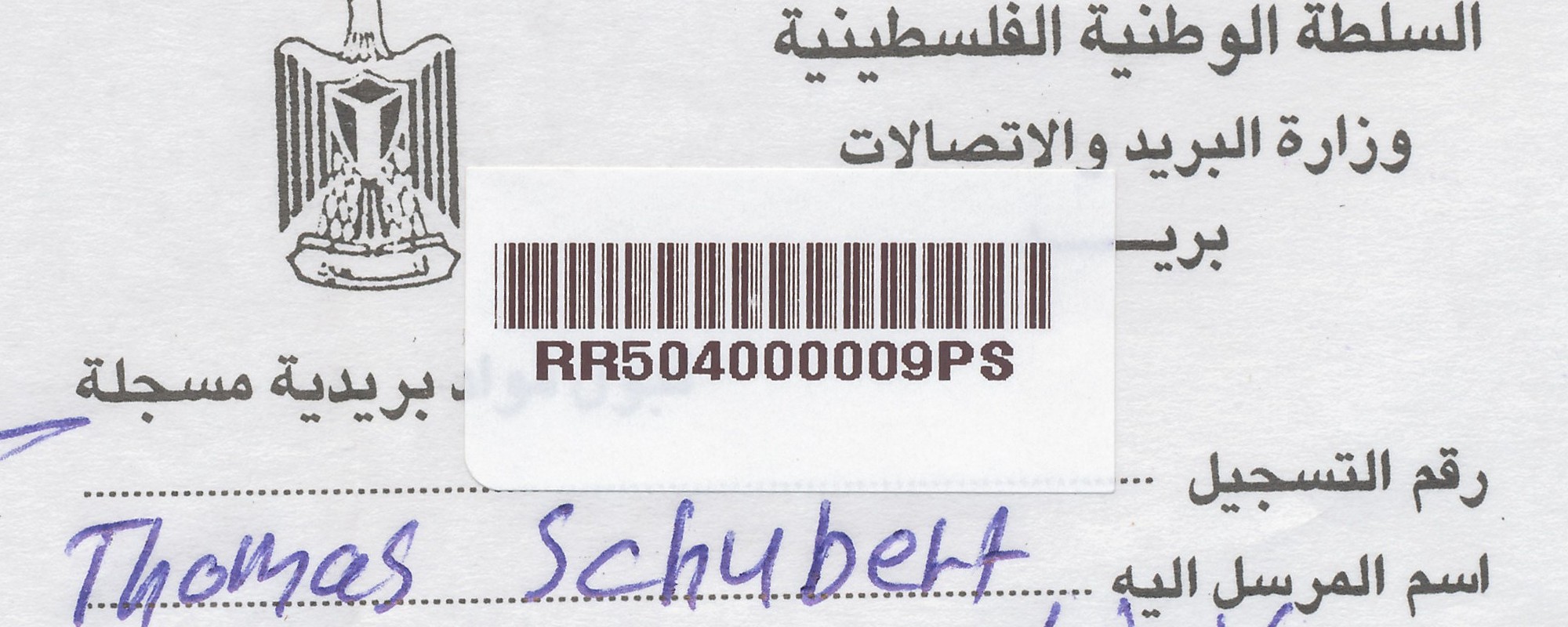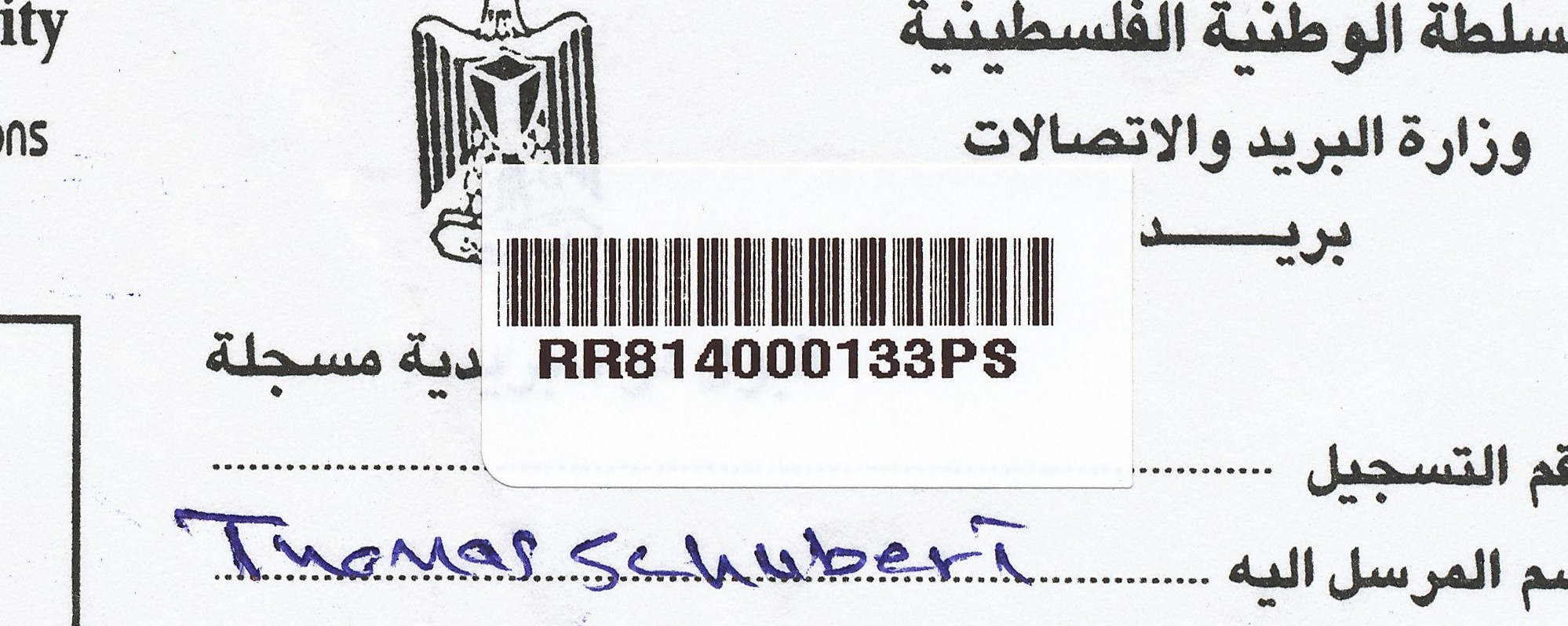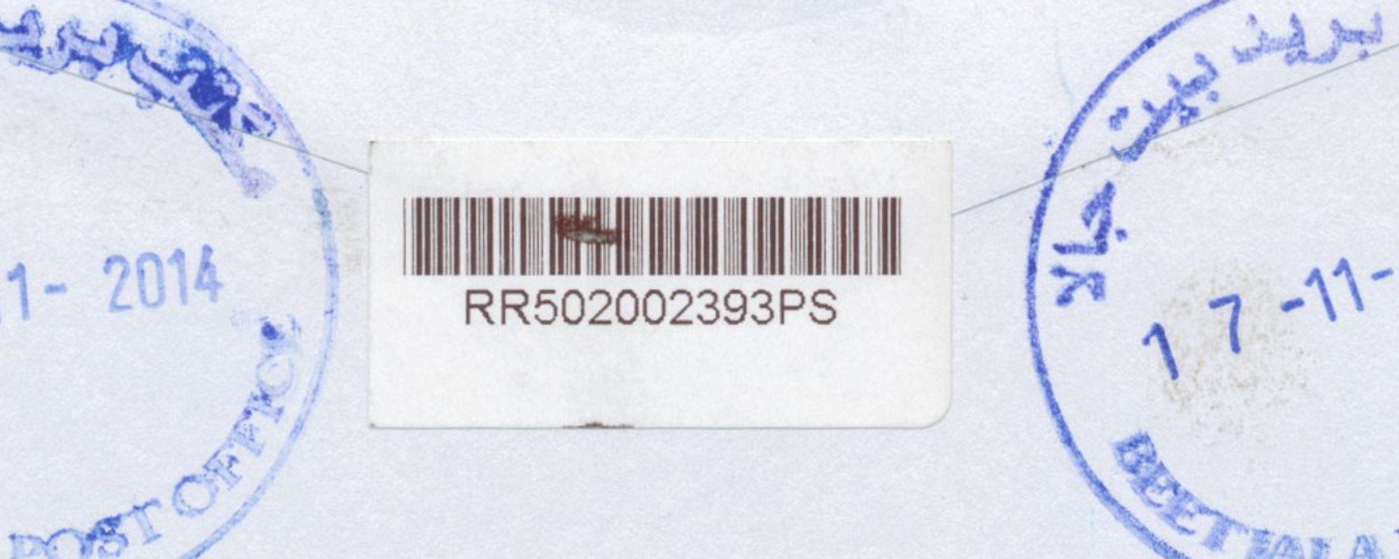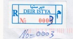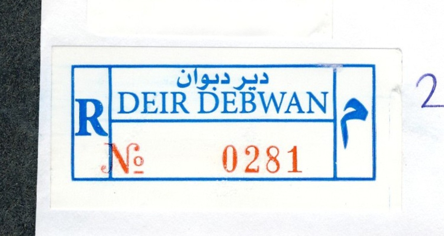 In March 2011, the Westbank's Palestine Post introduced the UPU software package "IPS Light" which resulted in the switch to computer-printed barcode labels (type D). In an early phase labels (types D1, D3, and D2) are applied at either head POs or central sorting as not all offices had yet been connected to the new system. Smaller offices actually apply old labels (mainly type B4), which are then labelled-over with IPS labels bearing a corresponding number. At some offices not supplied with 'old' labels a handwritten registration number sometimes appears besides the label itself.