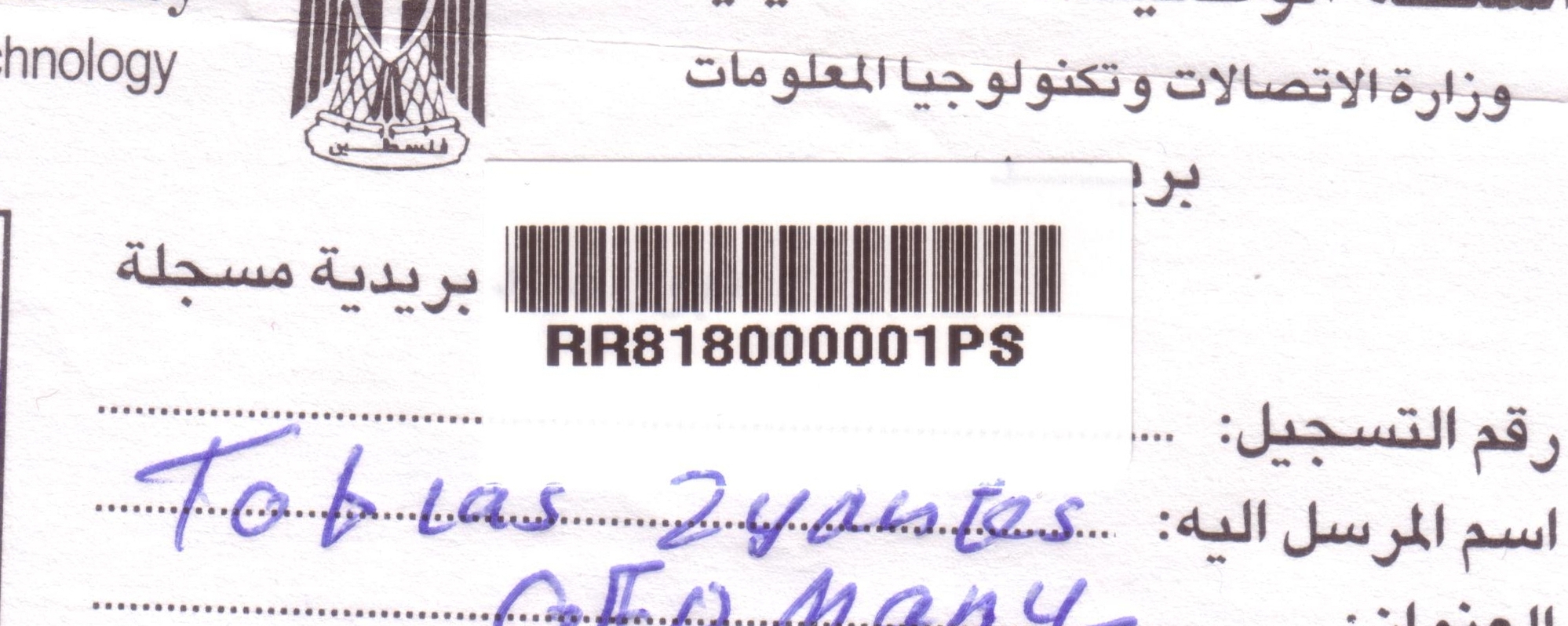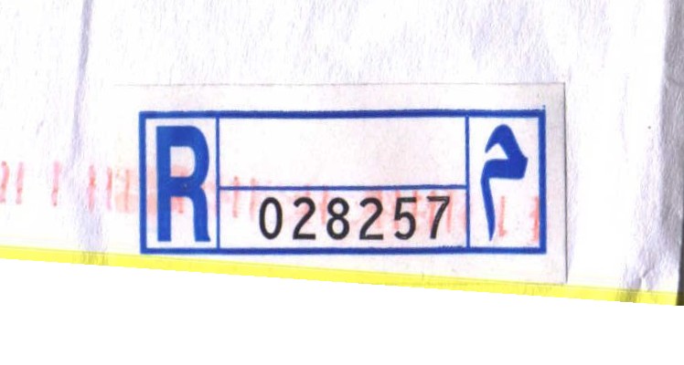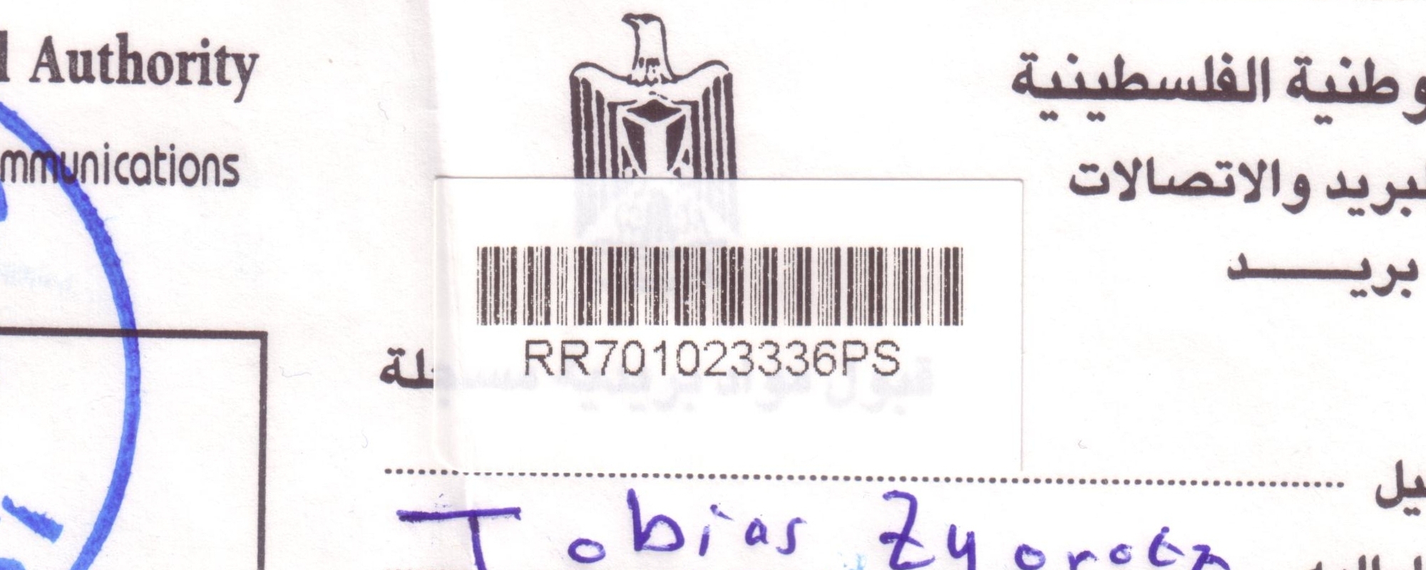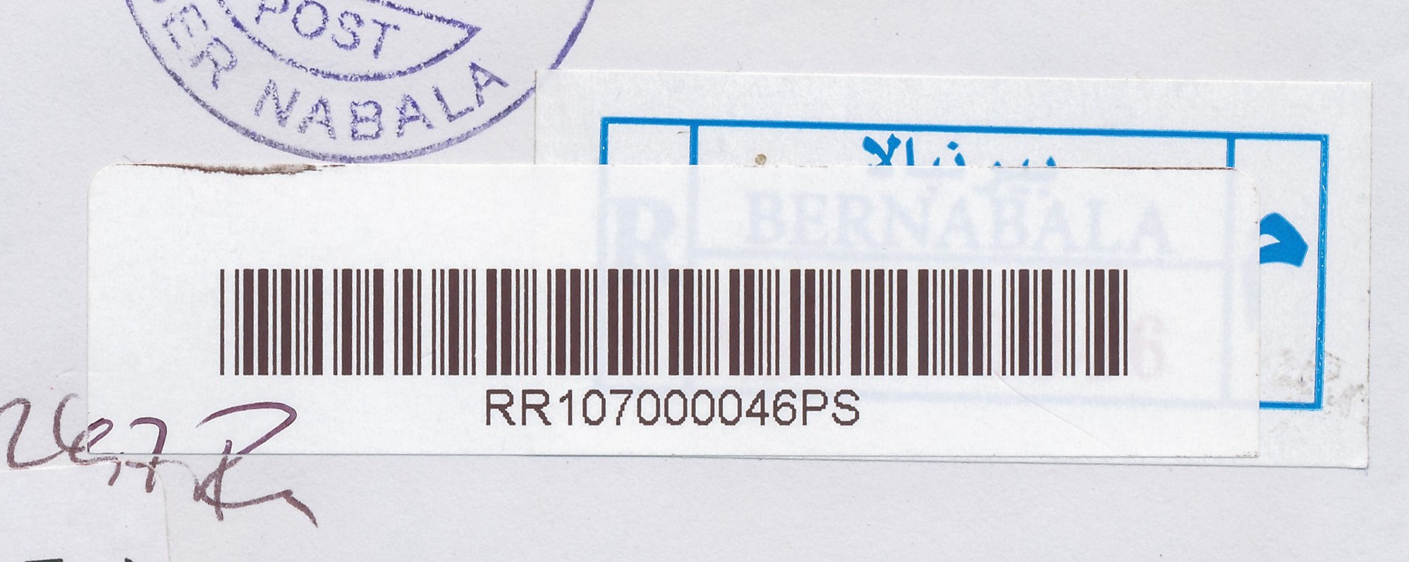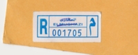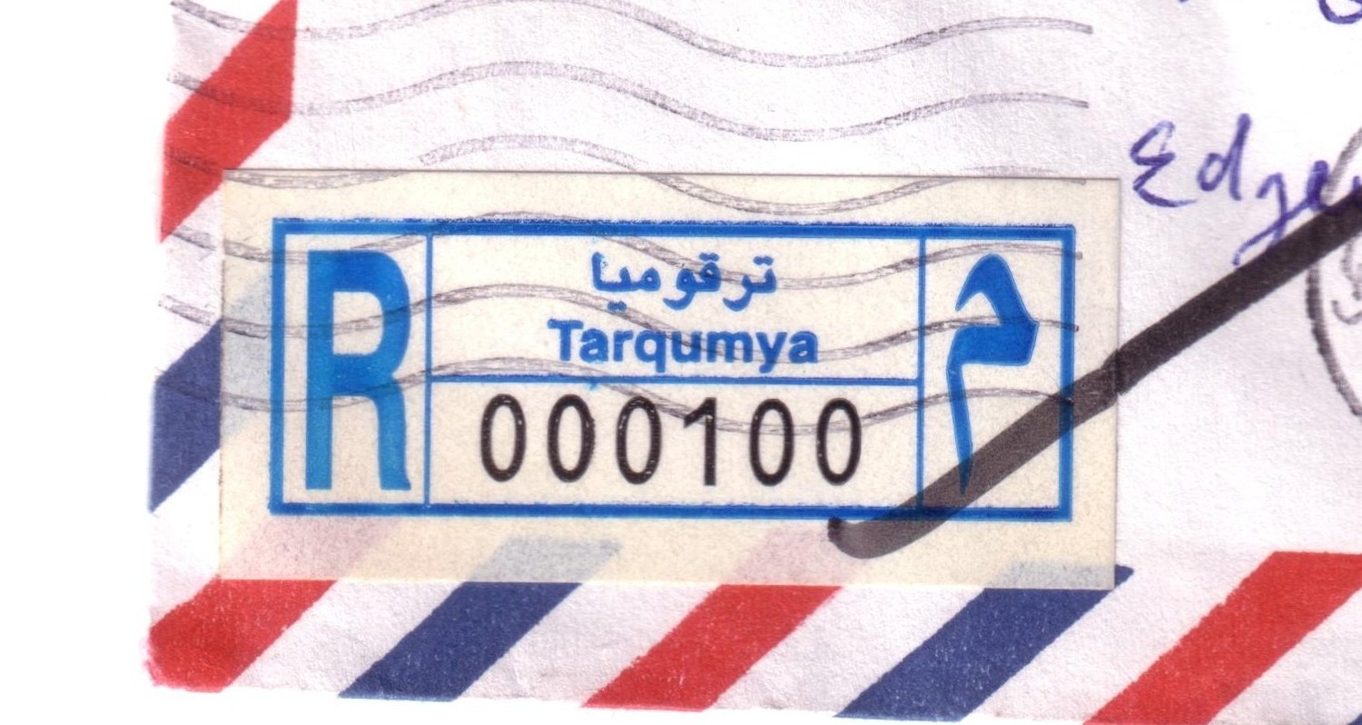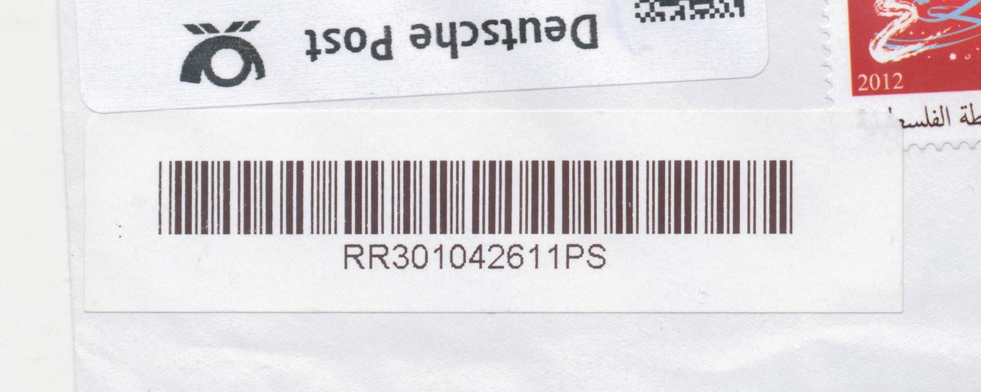 In March 2011, the Westbank's Palestine Post introduced the UPU software package "IPS Light" which resulted in the switch to computer-printed barcode labels (type D). In an early phase labels (types D1, D3, and D2) are applied at either head POs or central sorting as not all offices had yet been connected to the new system. Smaller offices actually apply old labels (mainly type B4), which are then labelled-over with IPS labels bearing a corresponding number. At some offices not supplied with 'old' labels a handwritten registration number sometimes appears besides the label itself.