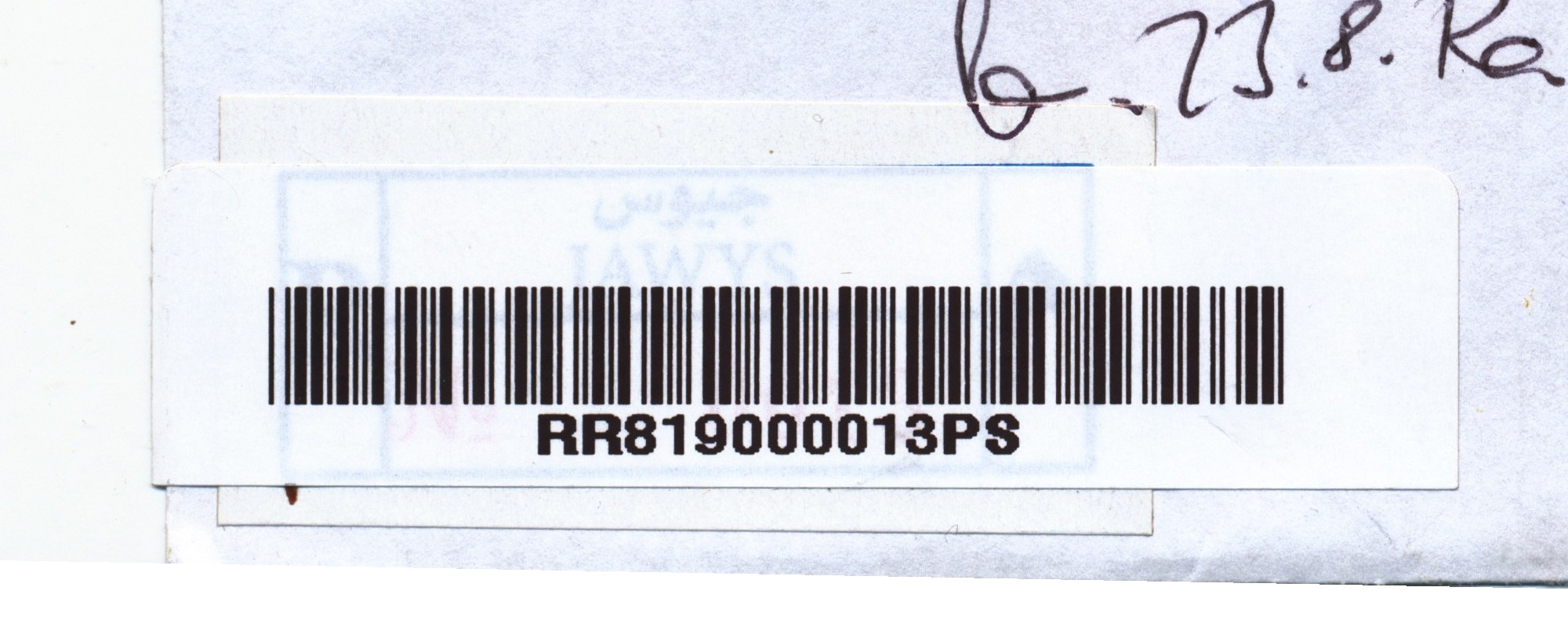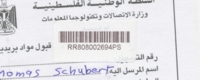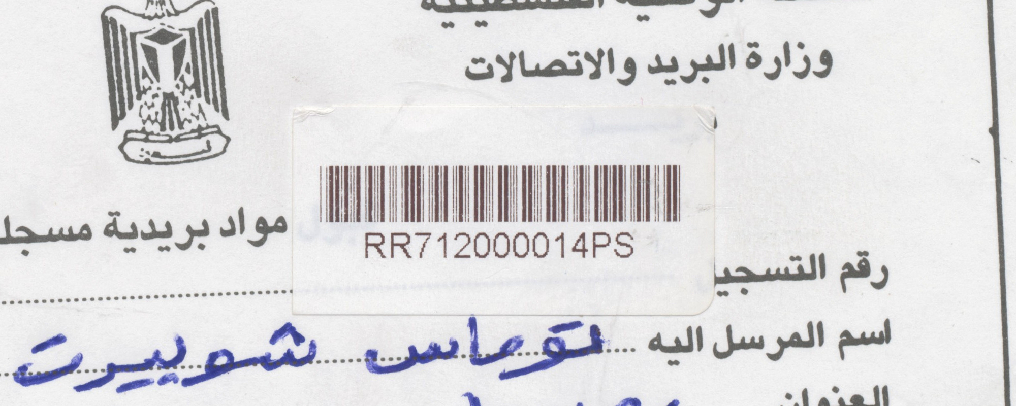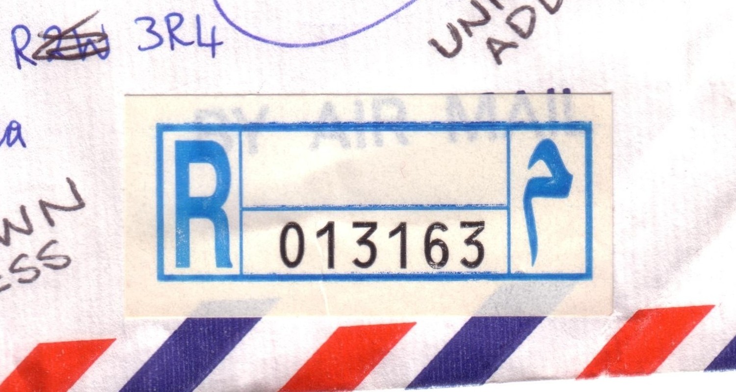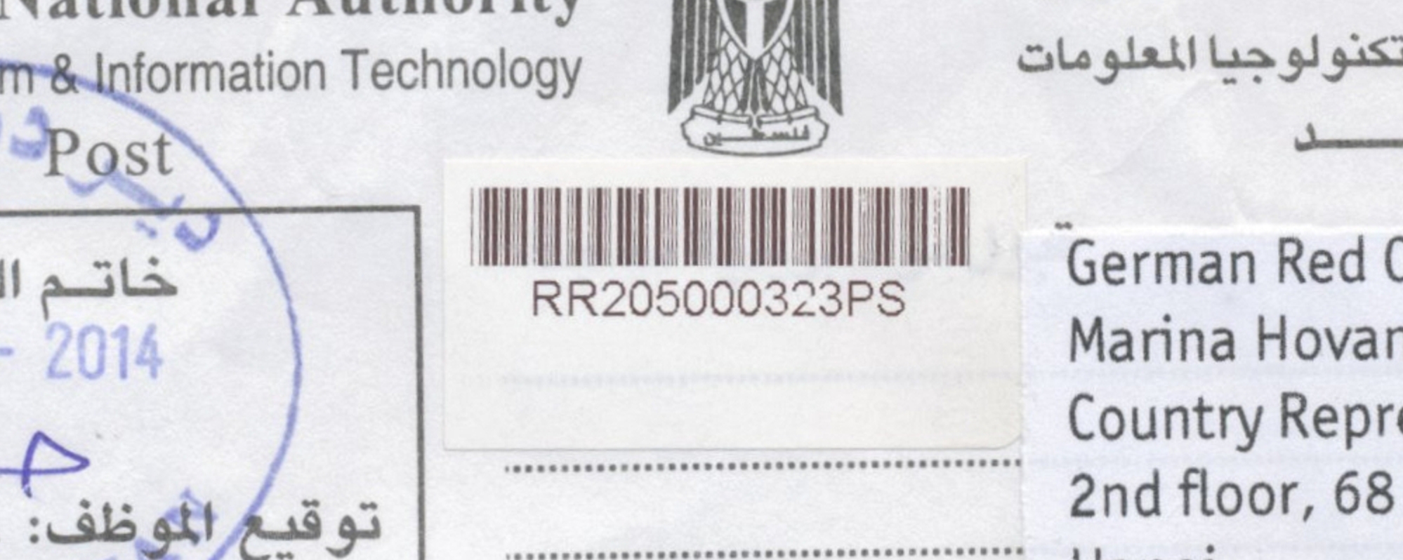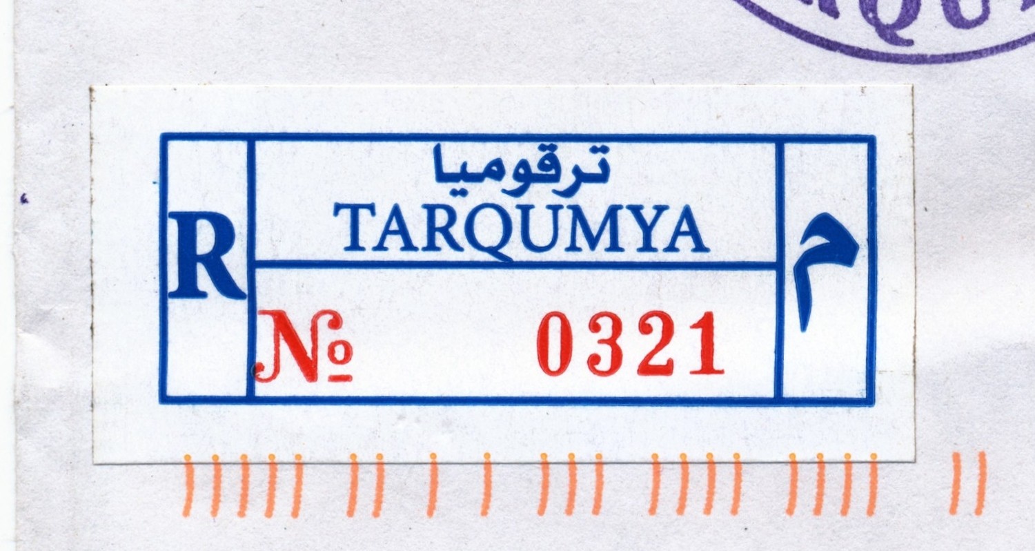 In March 2011, the Westbank's Palestine Post introduced the UPU software package "IPS Light" which resulted in the switch to computer-printed barcode labels (type D). In an early phase labels (types D1, D3, and D2) are applied at either head POs or central sorting as not all offices had yet been connected to the new system. Smaller offices actually apply old labels (mainly type B4), which are then labelled-over with IPS labels bearing a corresponding number. At some offices not supplied with 'old' labels a handwritten registration number sometimes appears besides the label itself.