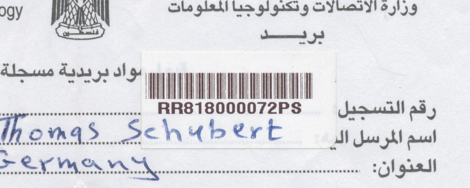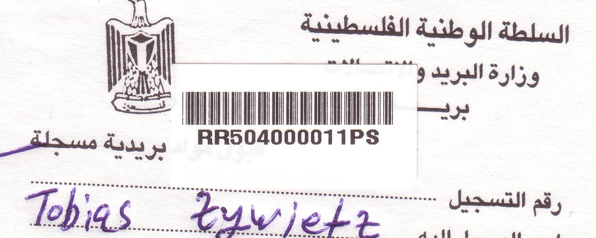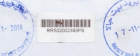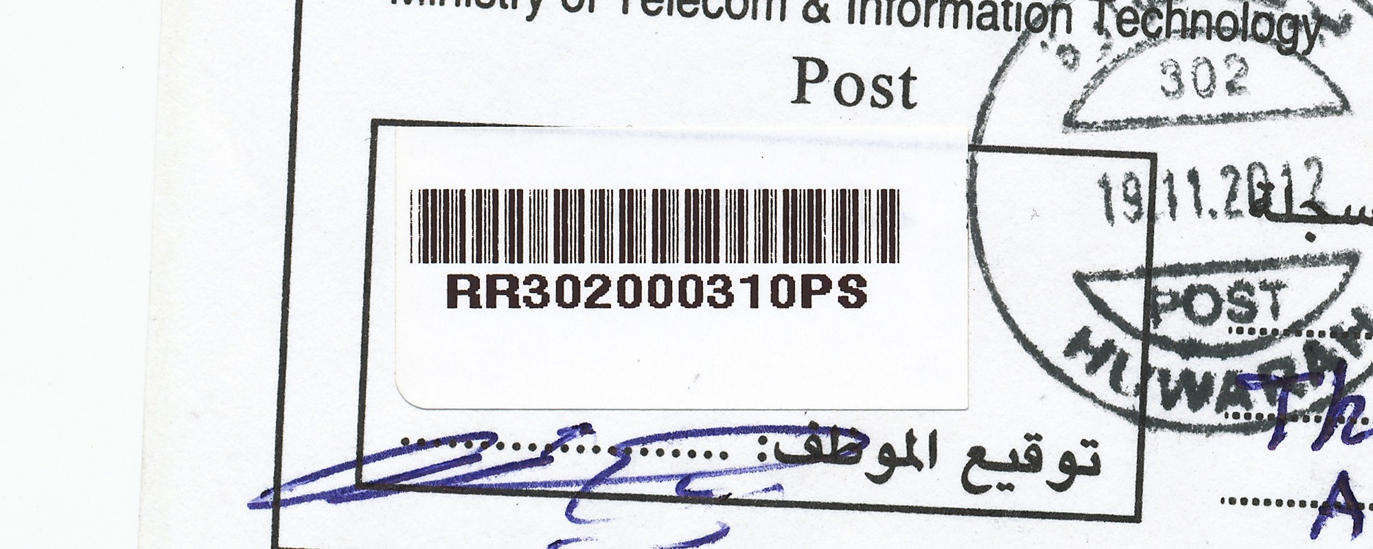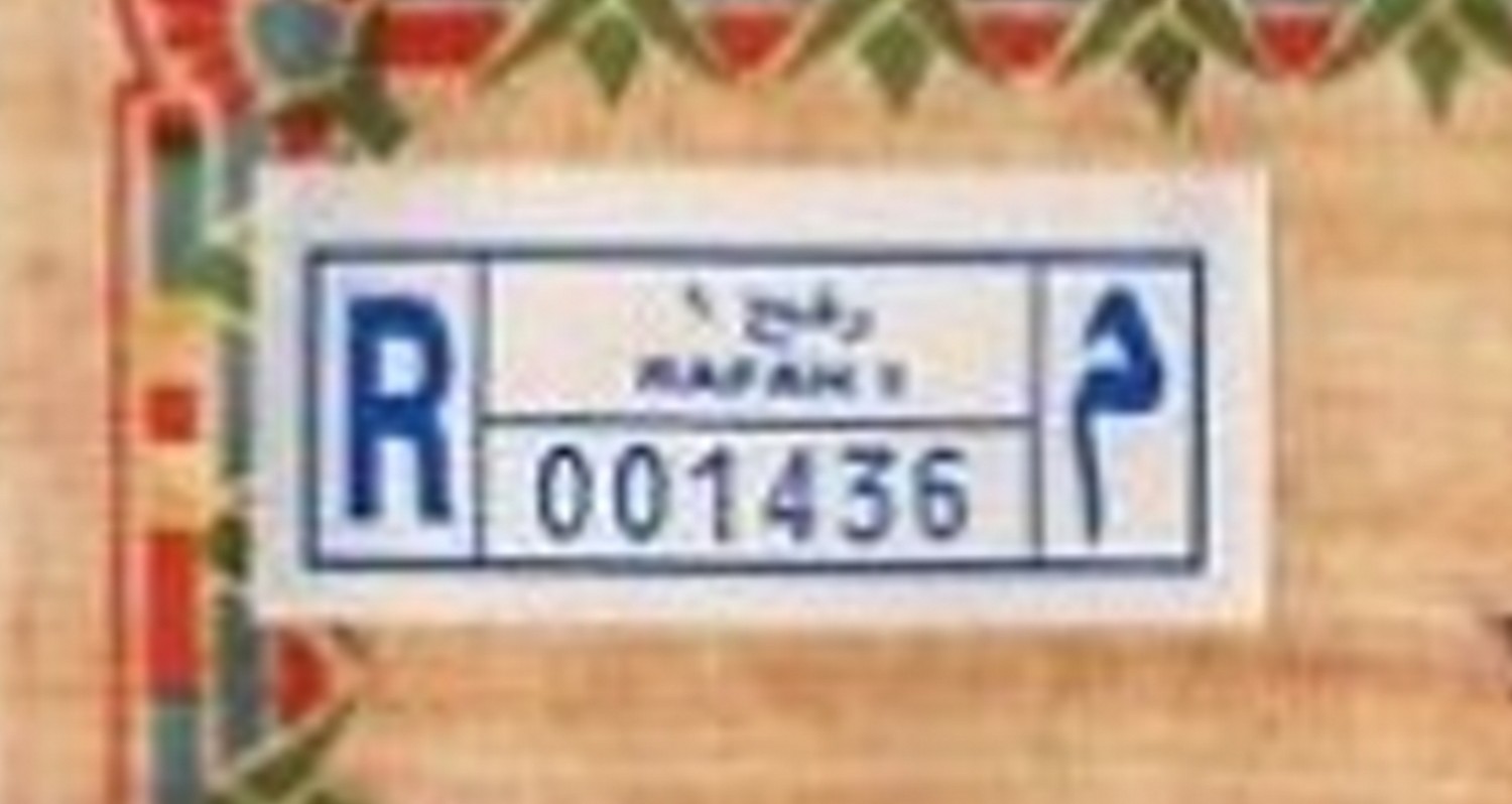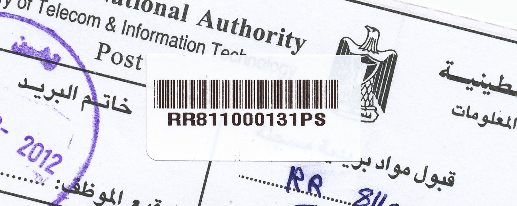 In March 2011, the Westbank's Palestine Post introduced the UPU software package "IPS Light" which resulted in the switch to computer-printed barcode labels (type D). In an early phase labels (types D1, D3, and D2) are applied at either head POs or central sorting as not all offices had yet been connected to the new system. Smaller offices actually apply old labels (mainly type B4), which are then labelled-over with IPS labels bearing a corresponding number. At some offices not supplied with 'old' labels a handwritten registration number sometimes appears besides the label itself.