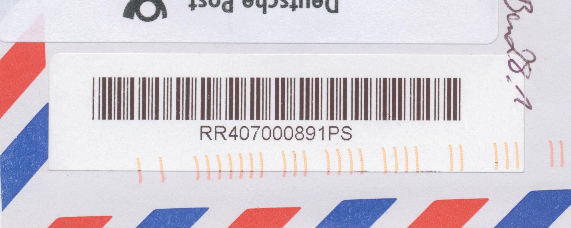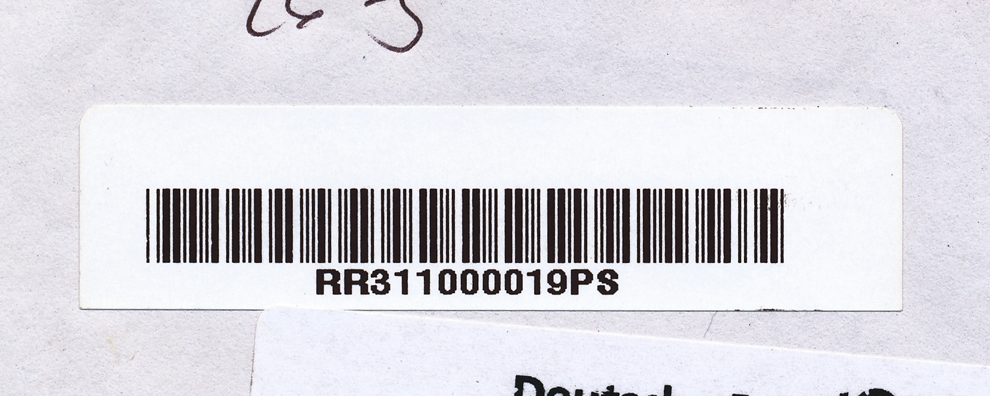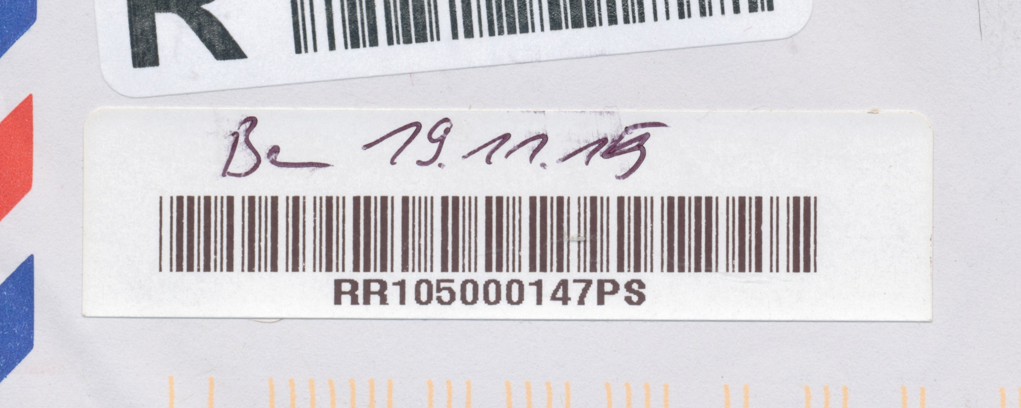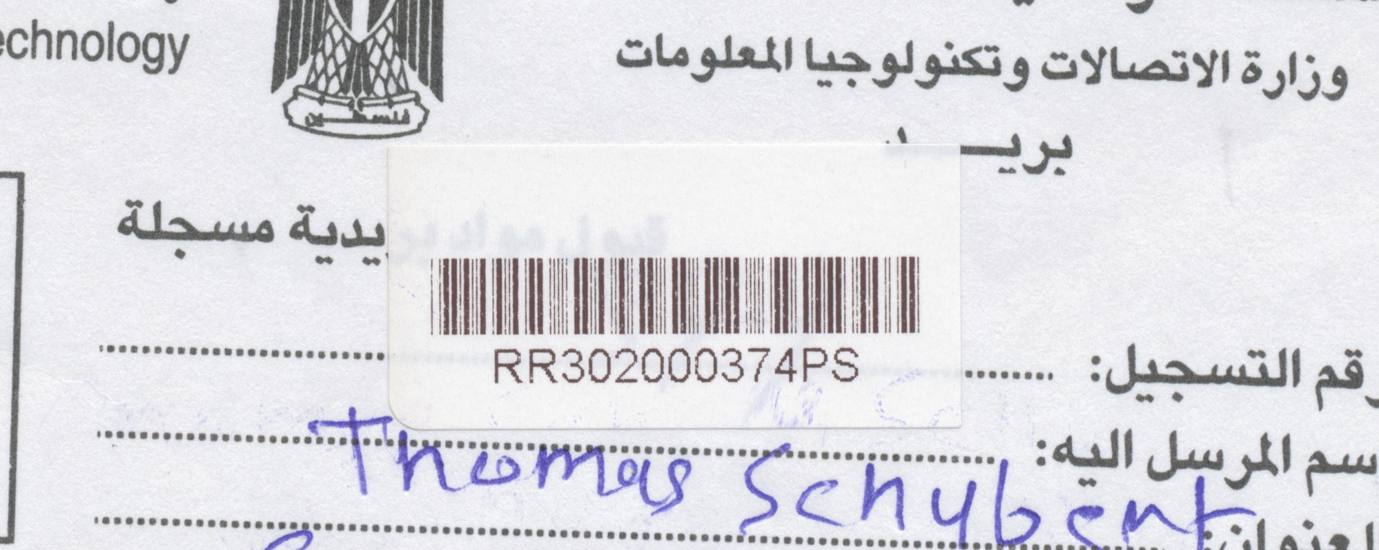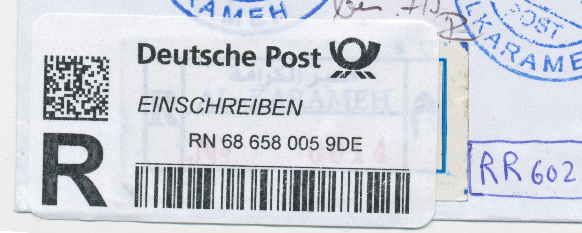 In March 2011, the Westbank's Palestine Post introduced the UPU software package "IPS Light" which resulted in the switch to computer-printed barcode labels (type D). In an early phase labels (types D1, D3, and D2) are applied at either head POs or central sorting as not all offices had yet been connected to the new system. Smaller offices actually apply old labels (mainly type B4), which are then labelled-over with IPS labels bearing a corresponding number. At some offices not supplied with 'old' labels a handwritten registration number sometimes appears besides the label itself.