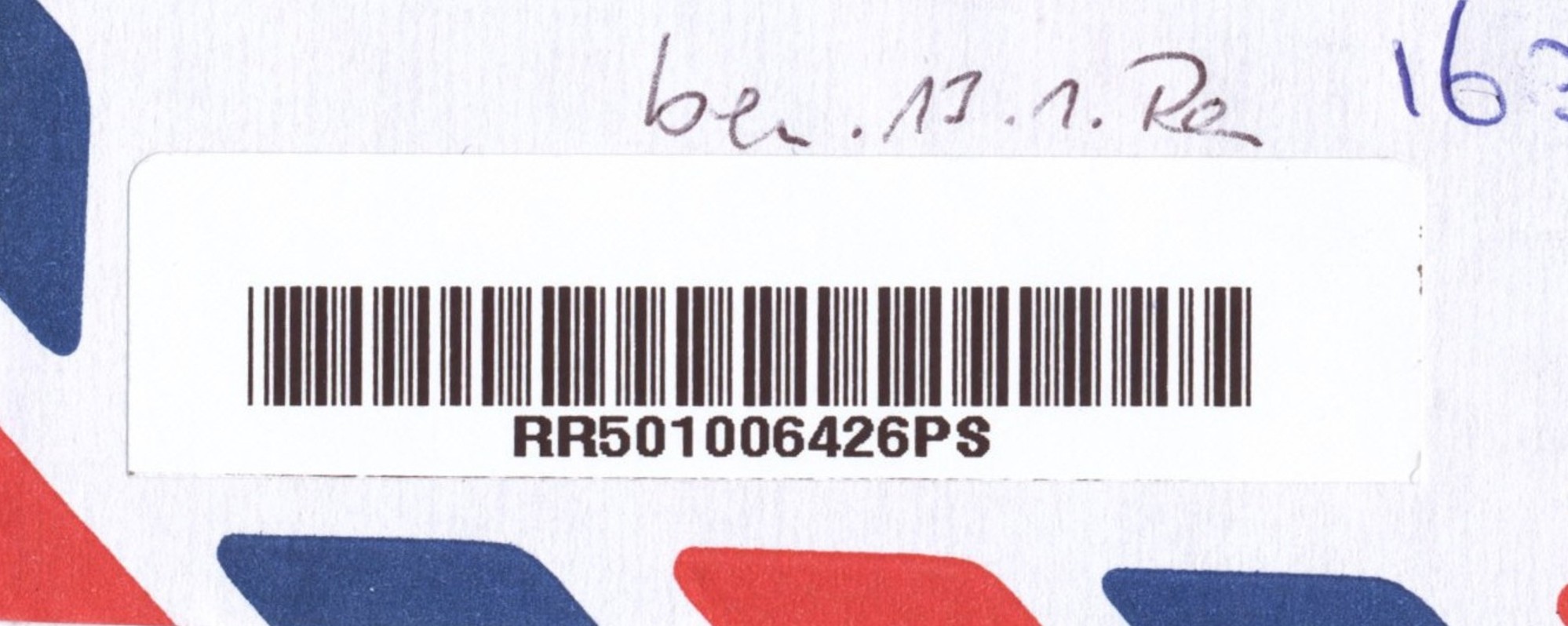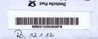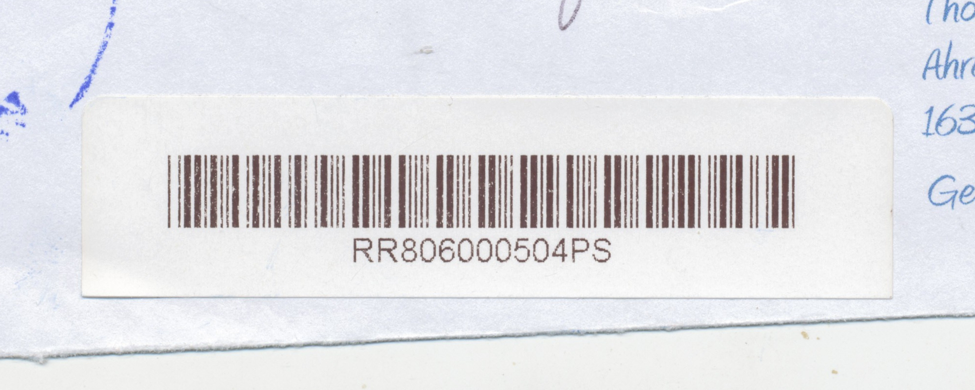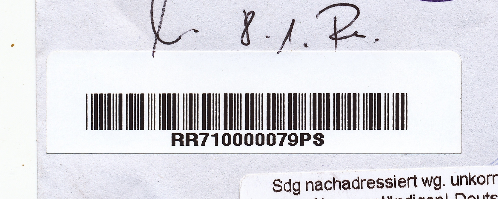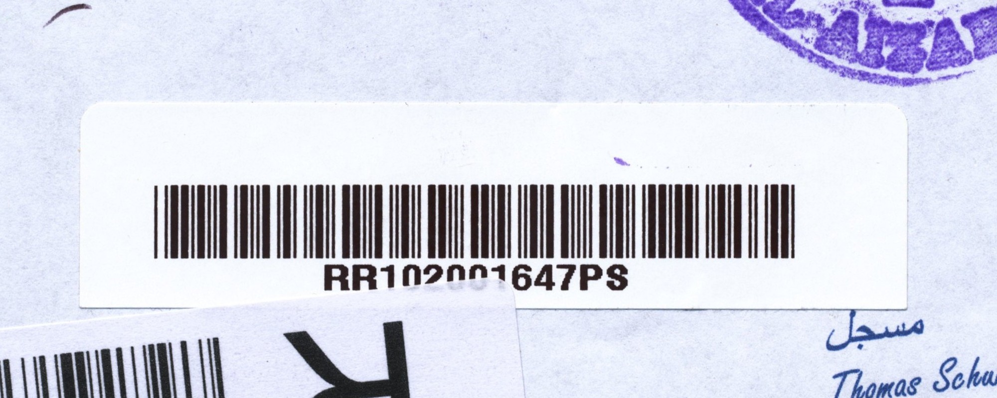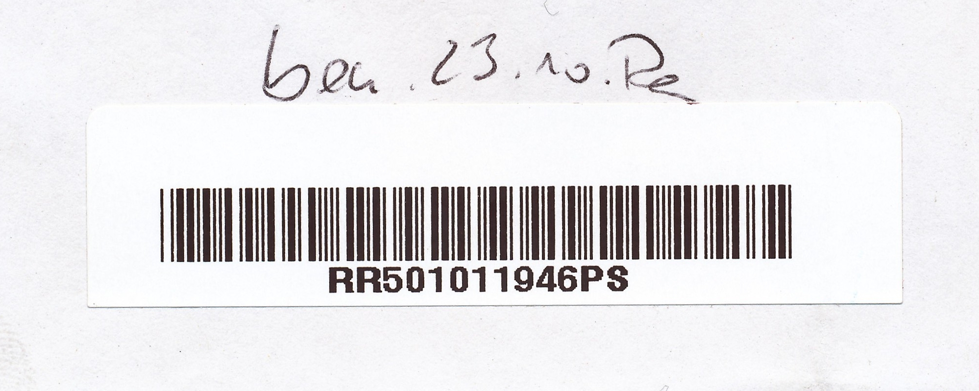 In March 2011, the Westbank's Palestine Post introduced the UPU software package "IPS Light" which resulted in the switch to computer-printed barcode labels (type D). In an early phase labels (types D1, D3, and D2) are applied at either head POs or central sorting as not all offices had yet been connected to the new system. Smaller offices actually apply old labels (mainly type B4), which are then labelled-over with IPS labels bearing a corresponding number. At some offices not supplied with 'old' labels a handwritten registration number sometimes appears besides the label itself.