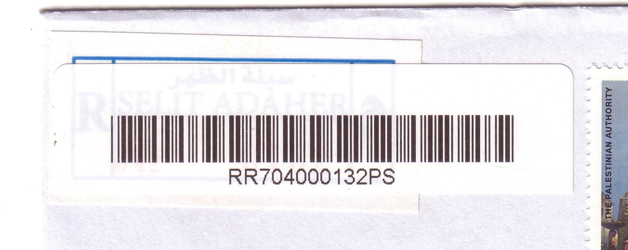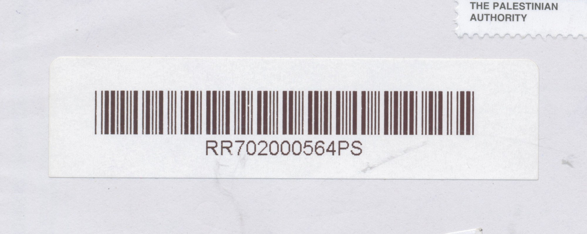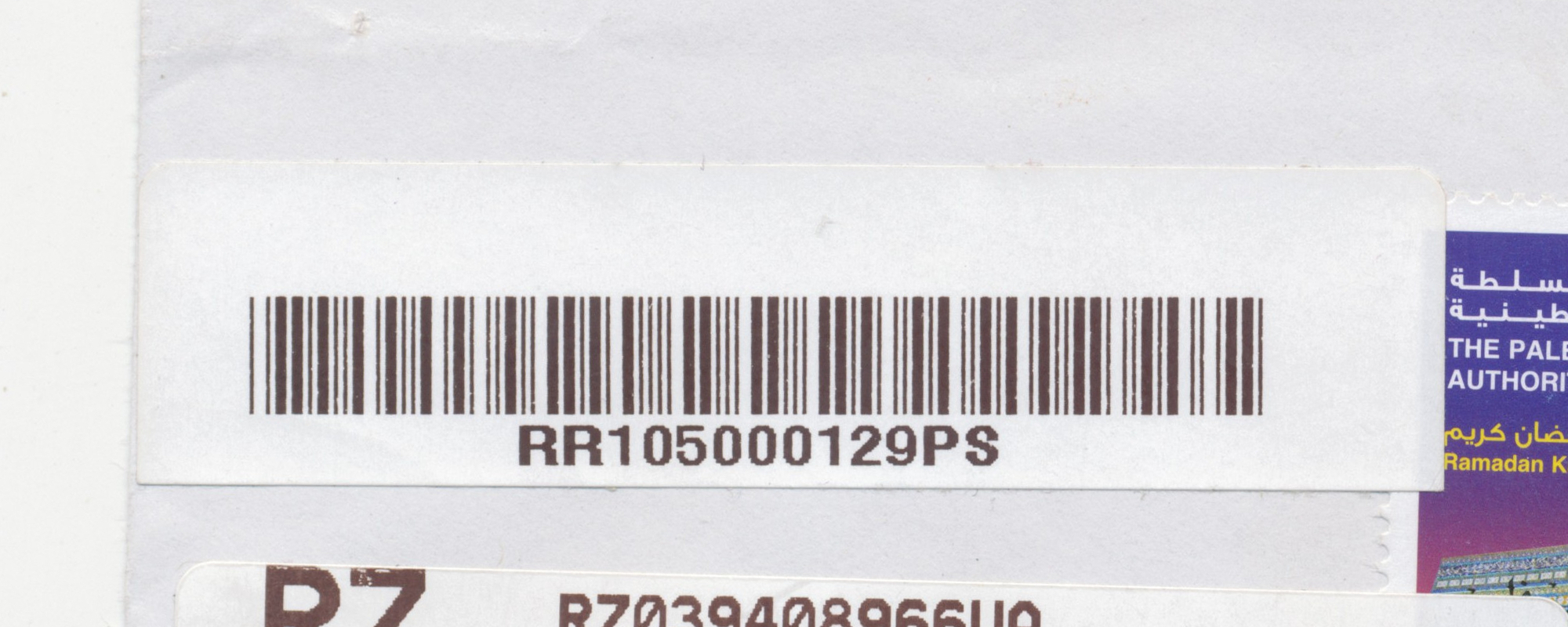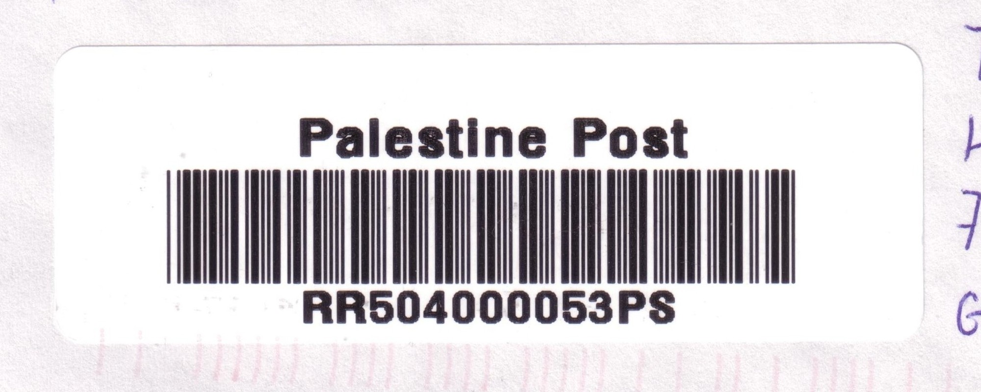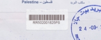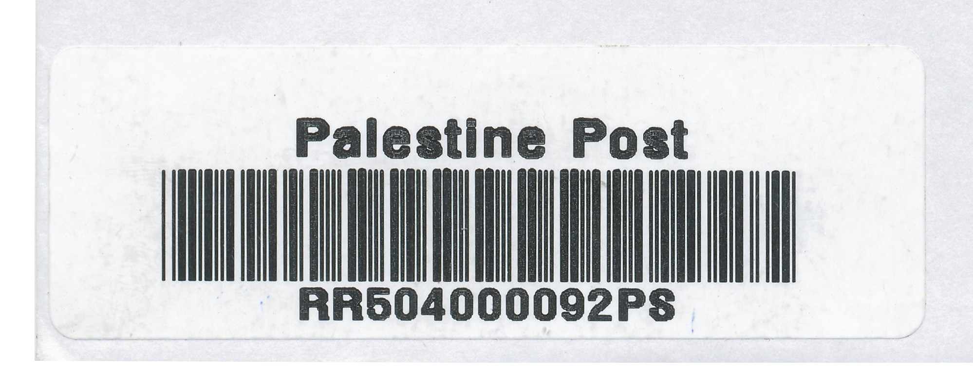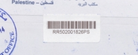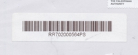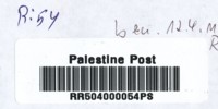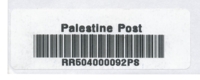 - white self-adhesive labels, printed in black. "IPS Light" linear barcode. With or without "Palestine Post" on top of imprinted numerator (9 digits) with prefixed RR and suffixed PS or ps. Label size varies.