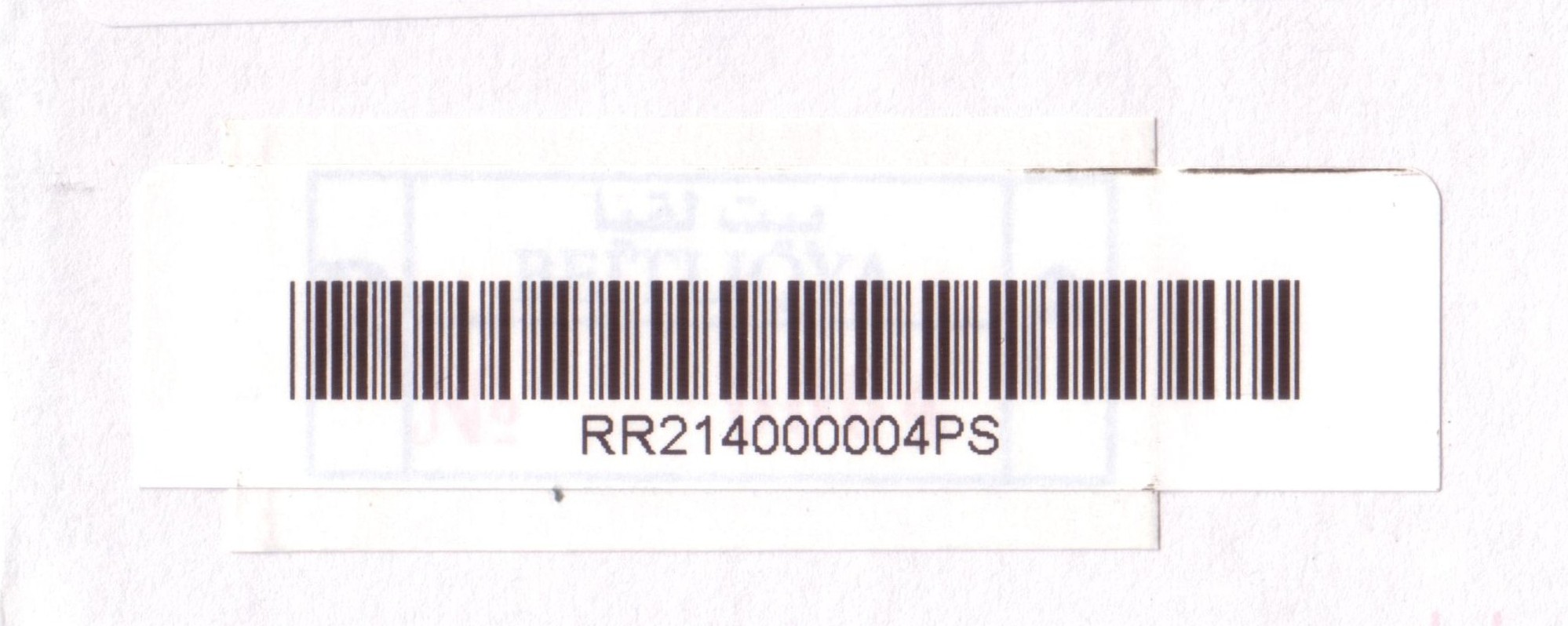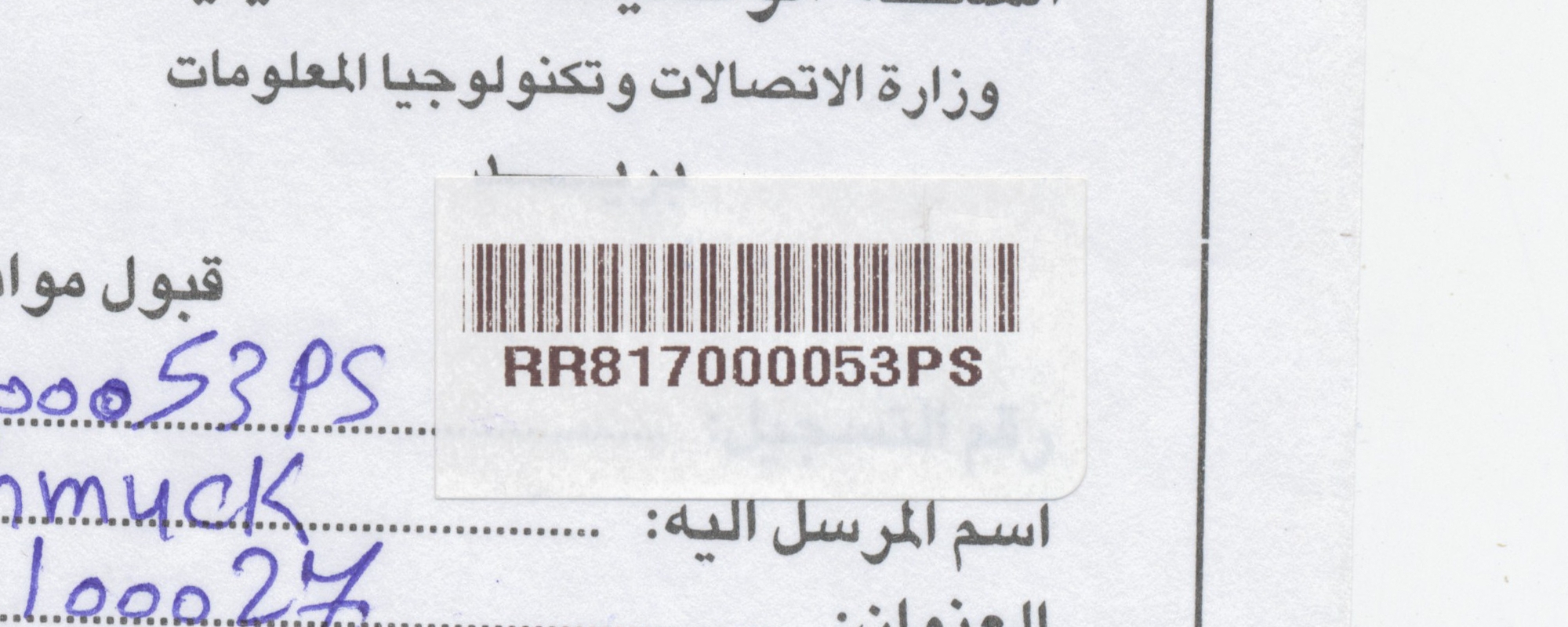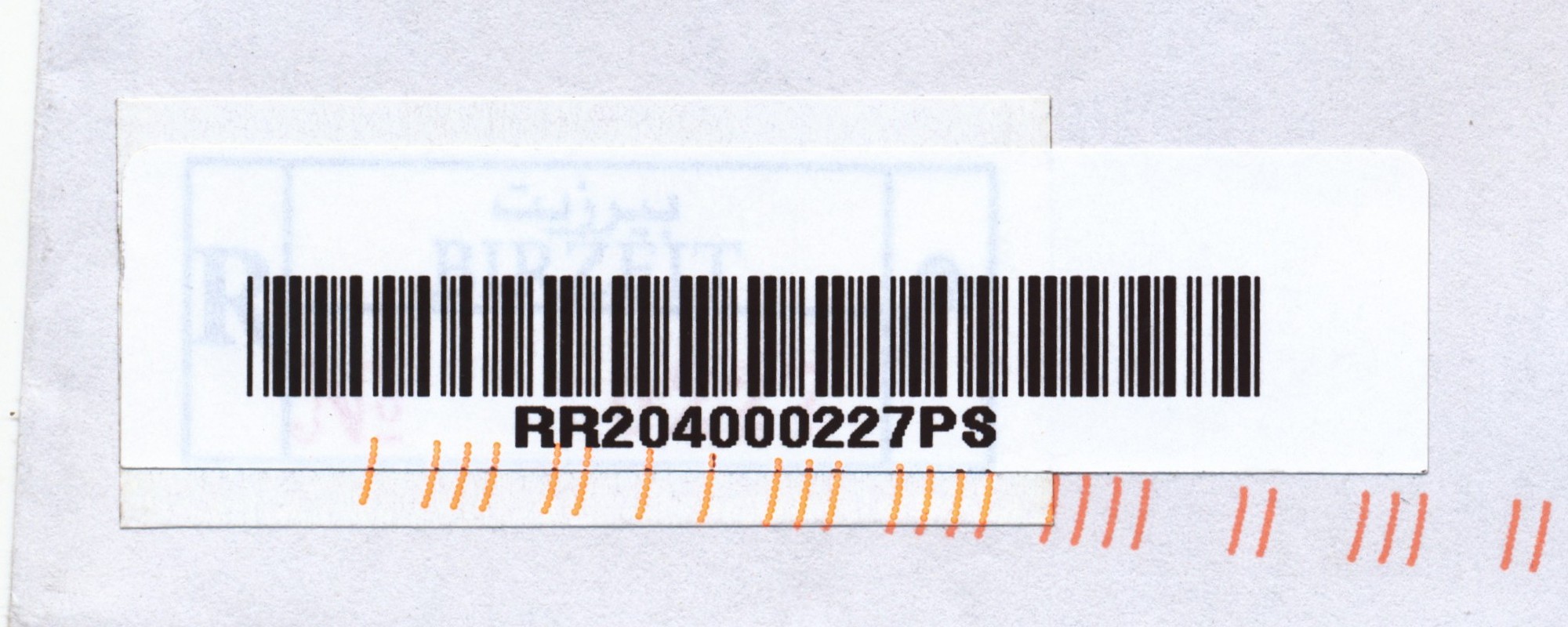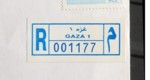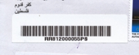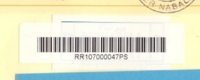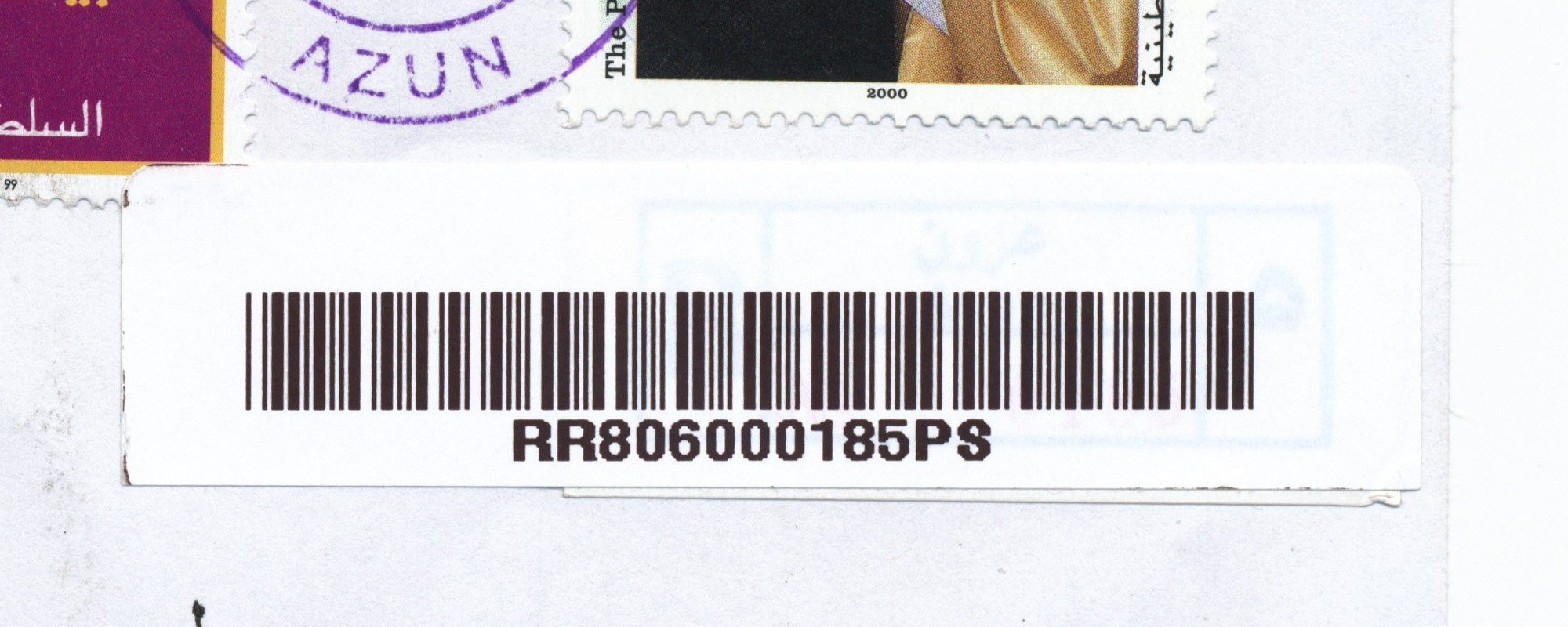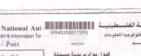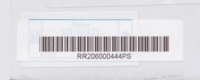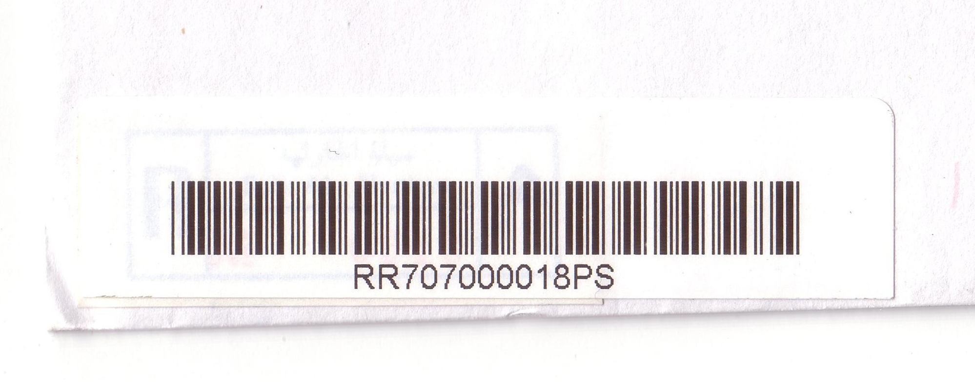 - white self-adhesive labels, printed in black. "IPS Light" linear barcode. With or without "Palestine Post" on top of imprinted numerator (9 digits) with prefixed RR and suffixed PS or ps. Label size varies.