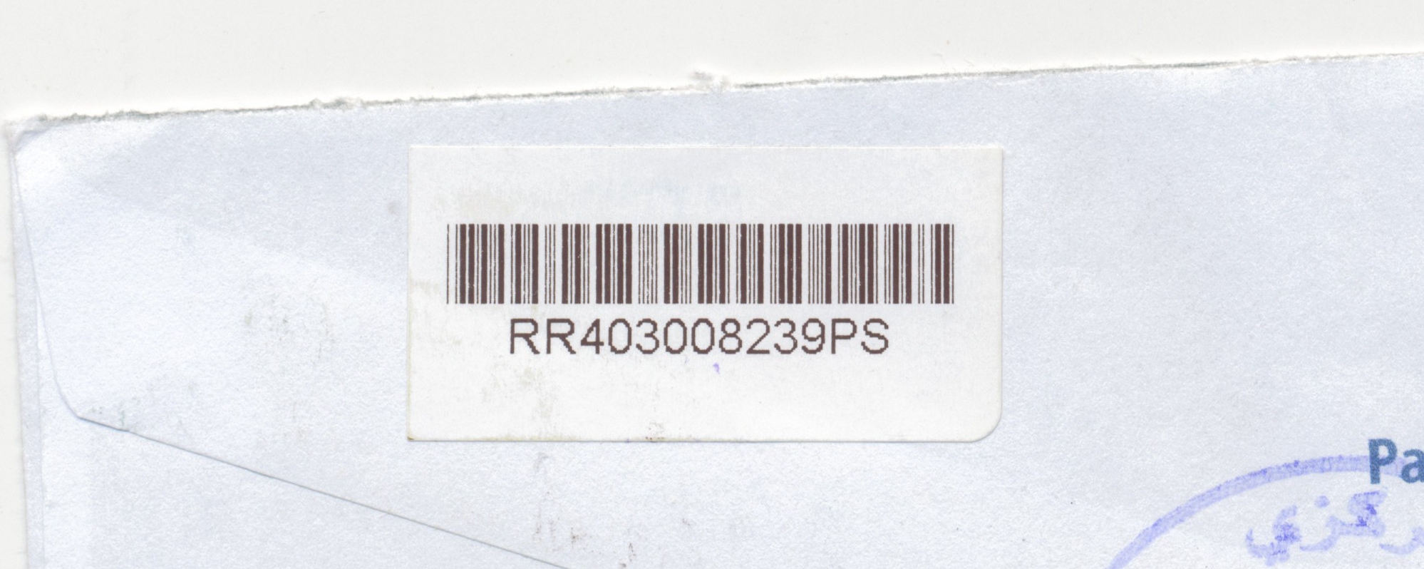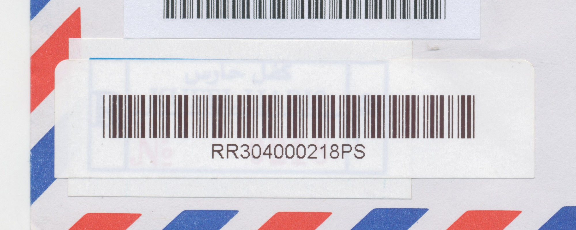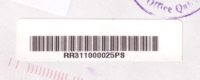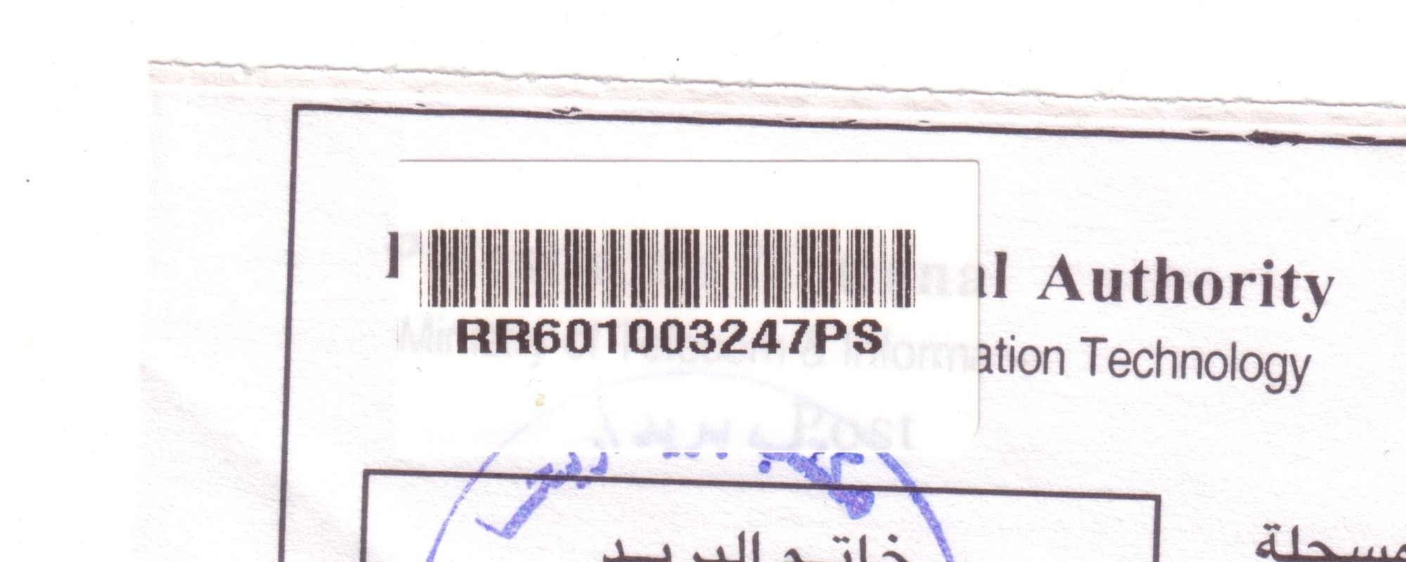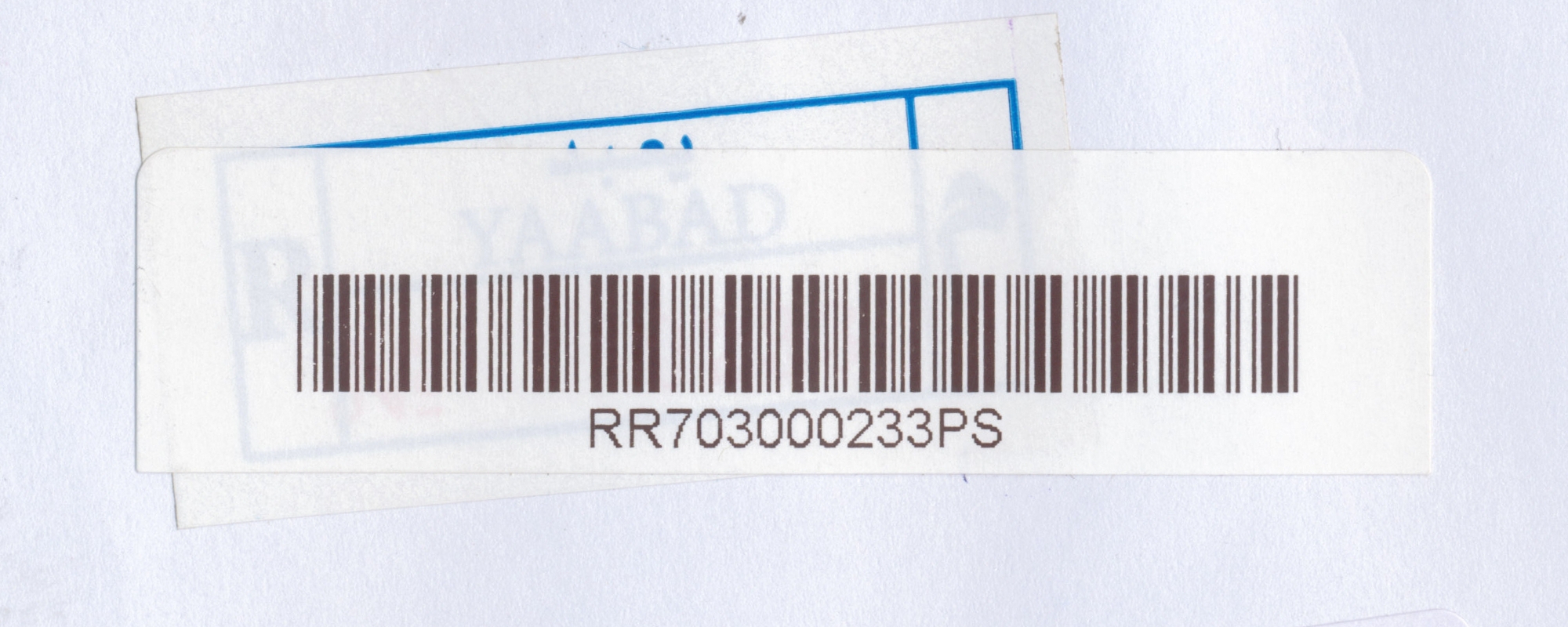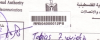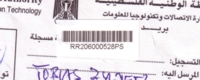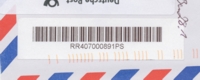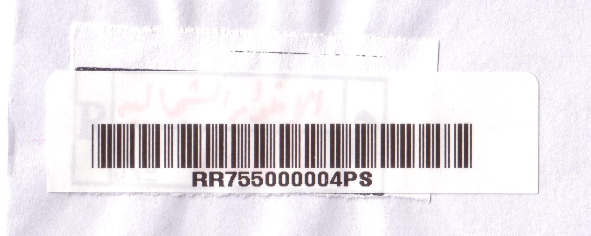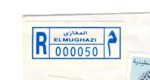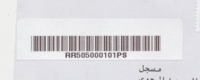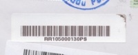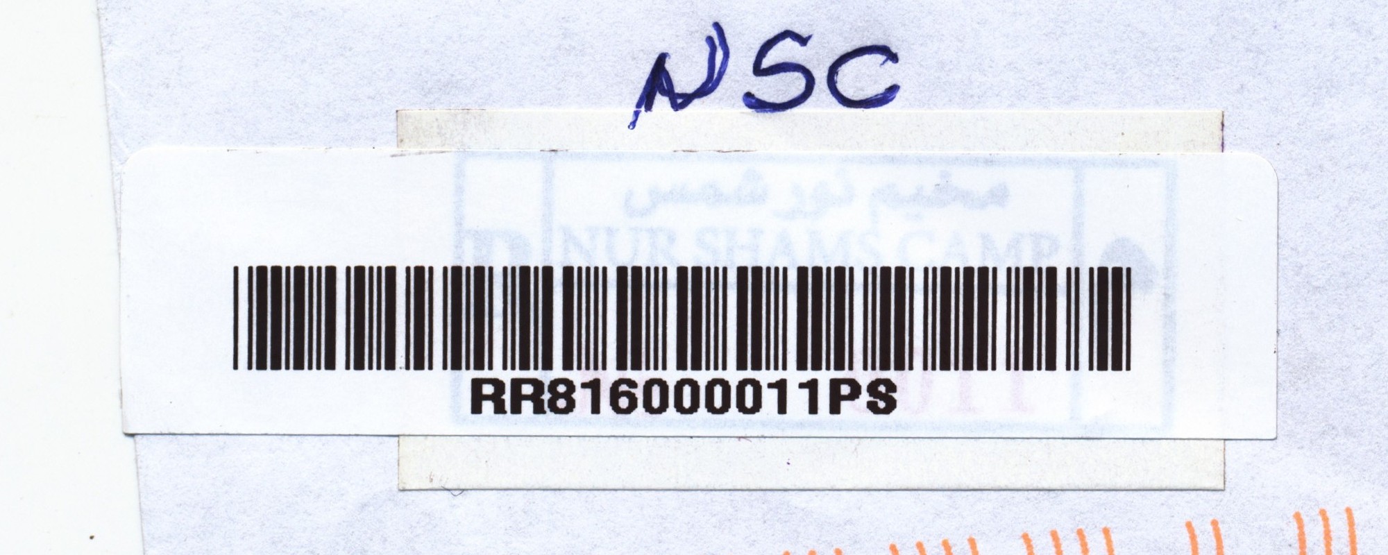 - white self-adhesive labels, printed in black. "IPS Light" linear barcode. With or without "Palestine Post" on top of imprinted numerator (9 digits) with prefixed RR and suffixed PS or ps. Label size varies.