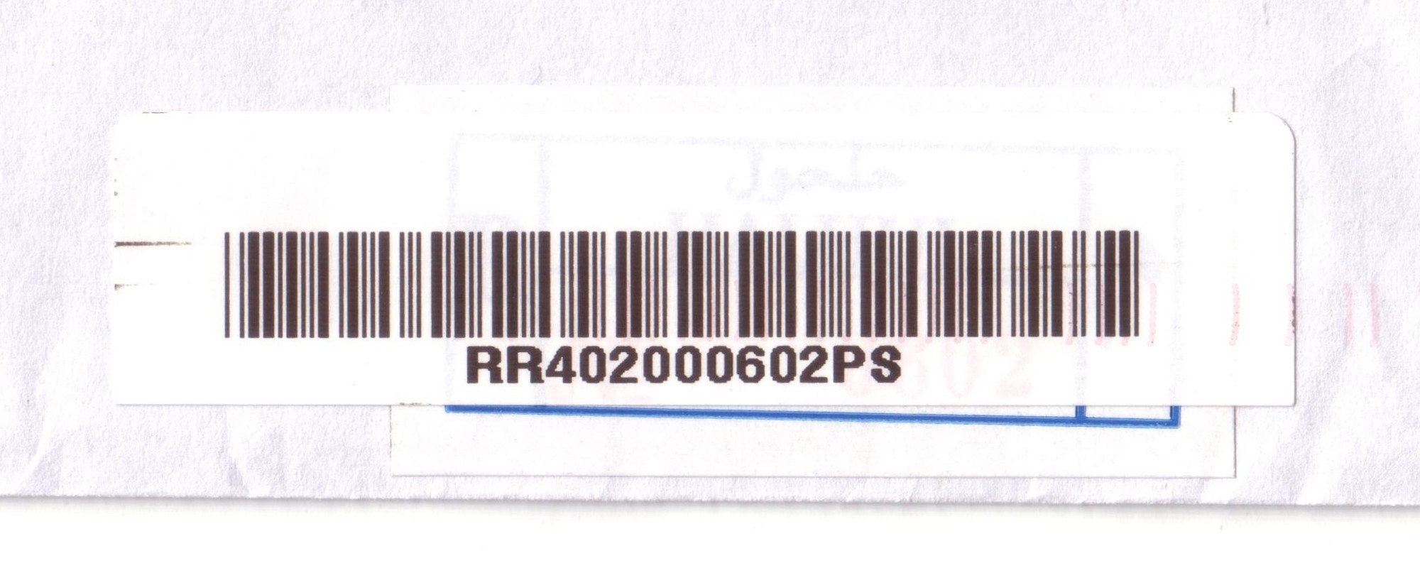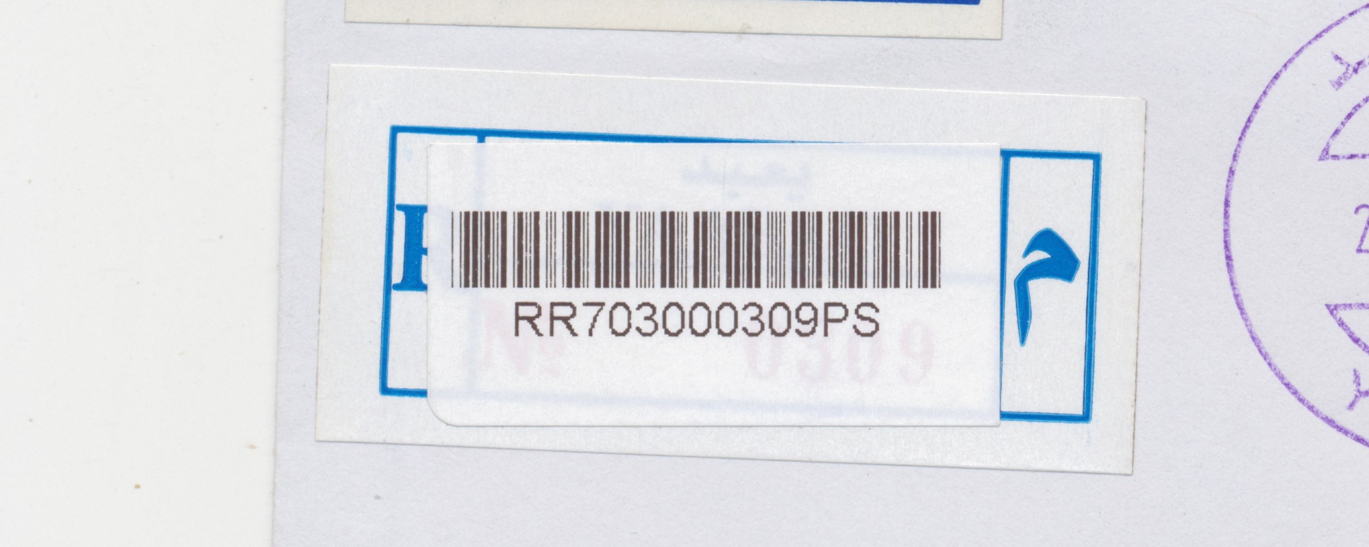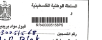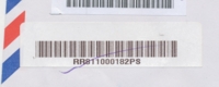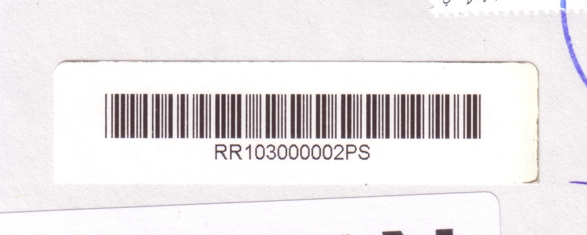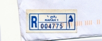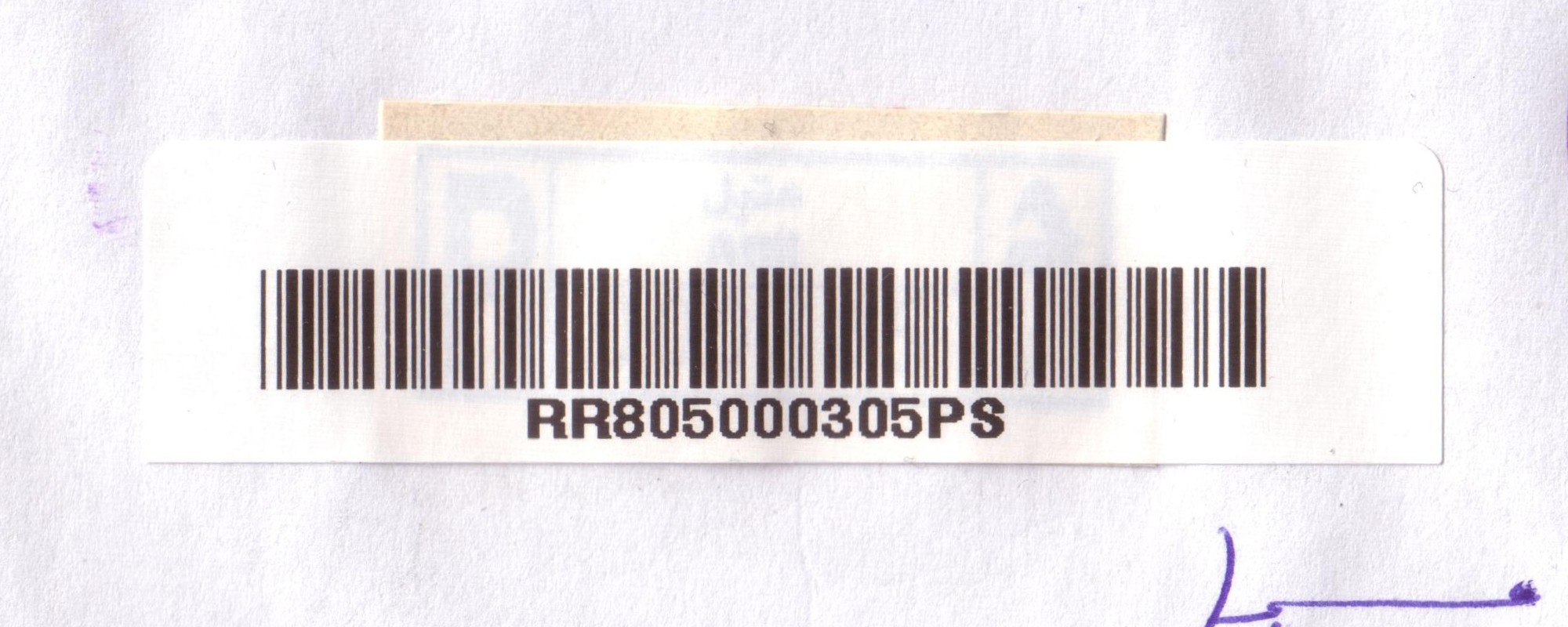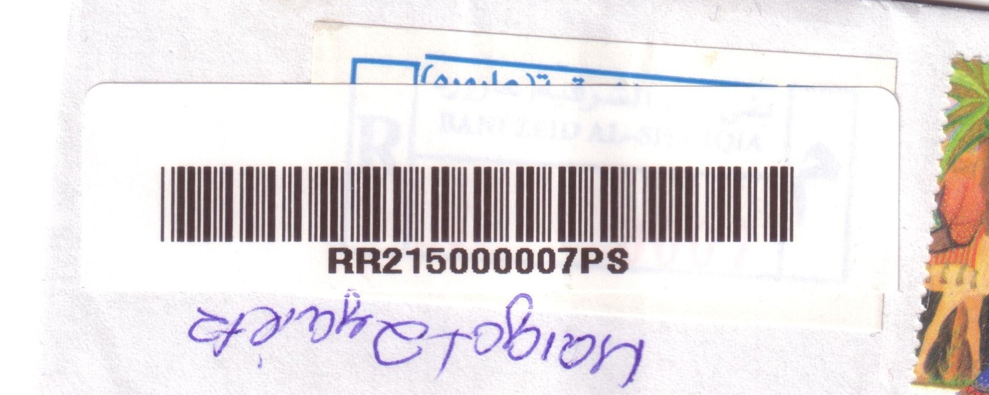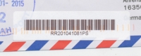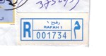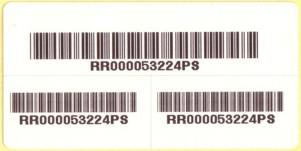 - white self-adhesive labels, printed in black. "IPS Light" linear barcode. With or without "Palestine Post" on top of imprinted numerator (9 digits) with prefixed RR and suffixed PS or ps. Label size varies.