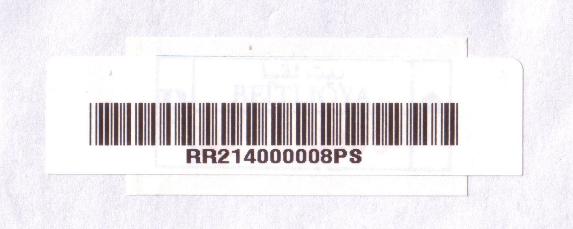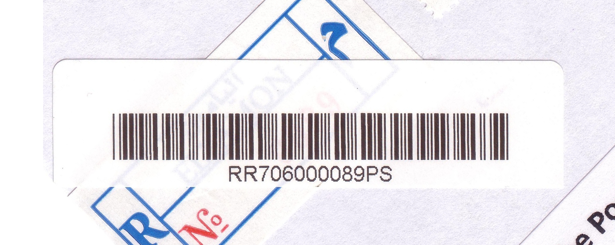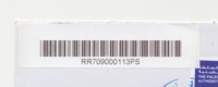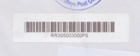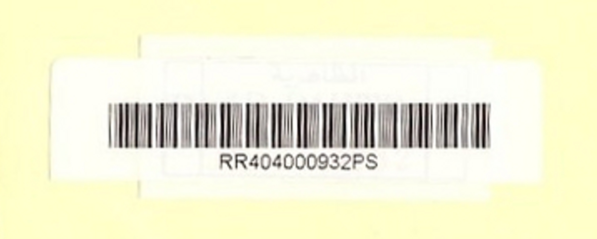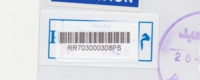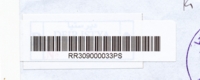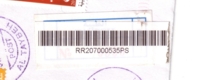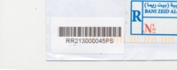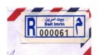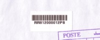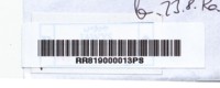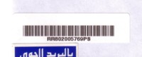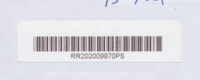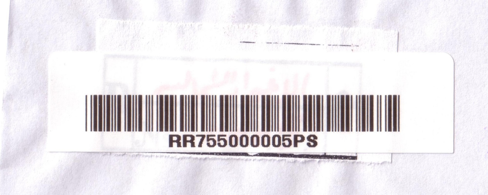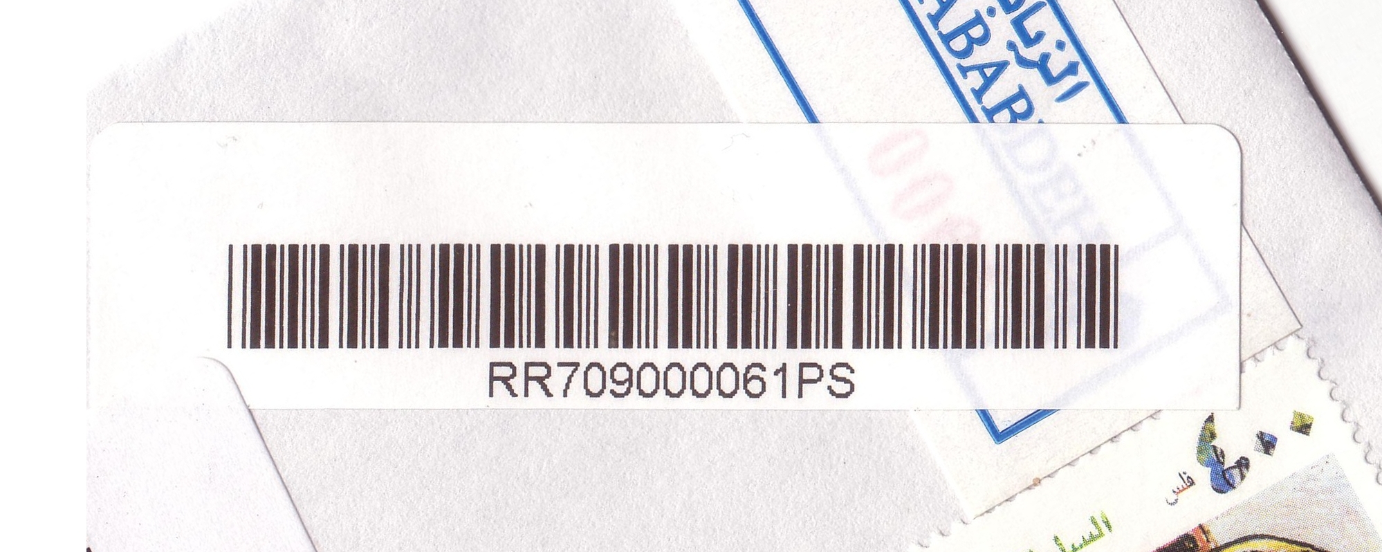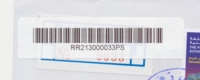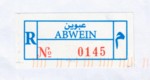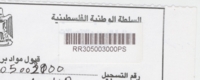 - white self-adhesive labels, printed in black. "IPS Light" linear barcode. With or without "Palestine Post" on top of imprinted numerator (9 digits) with prefixed RR and suffixed PS or ps. Label size varies.