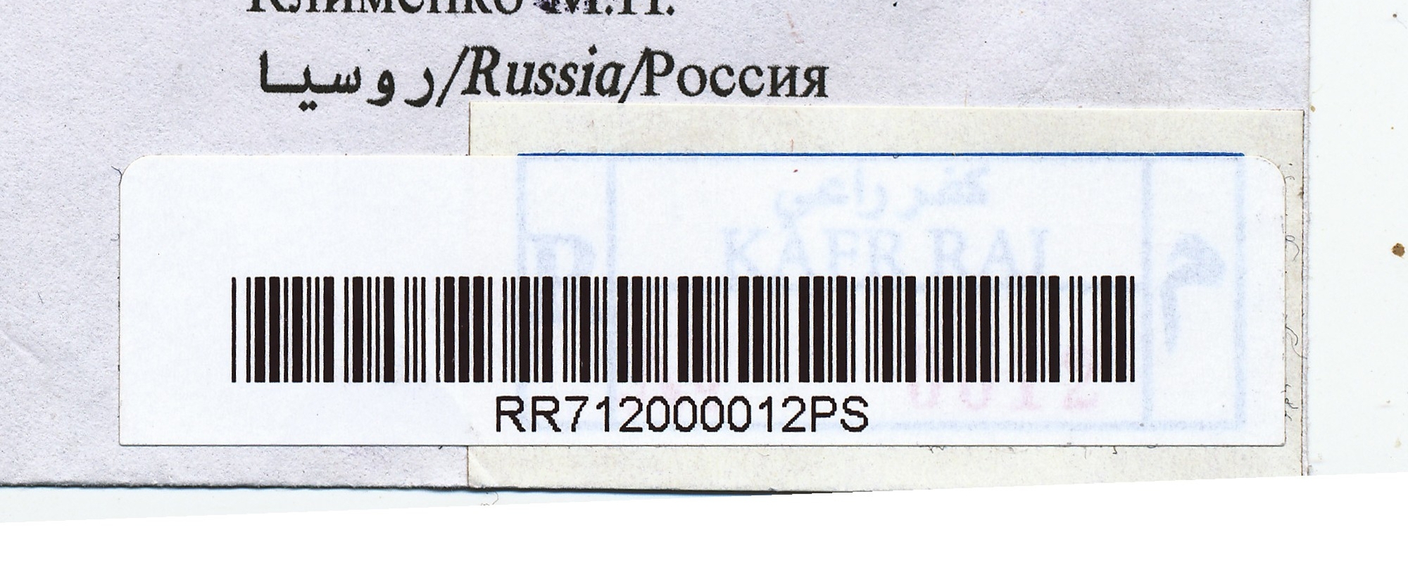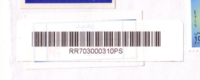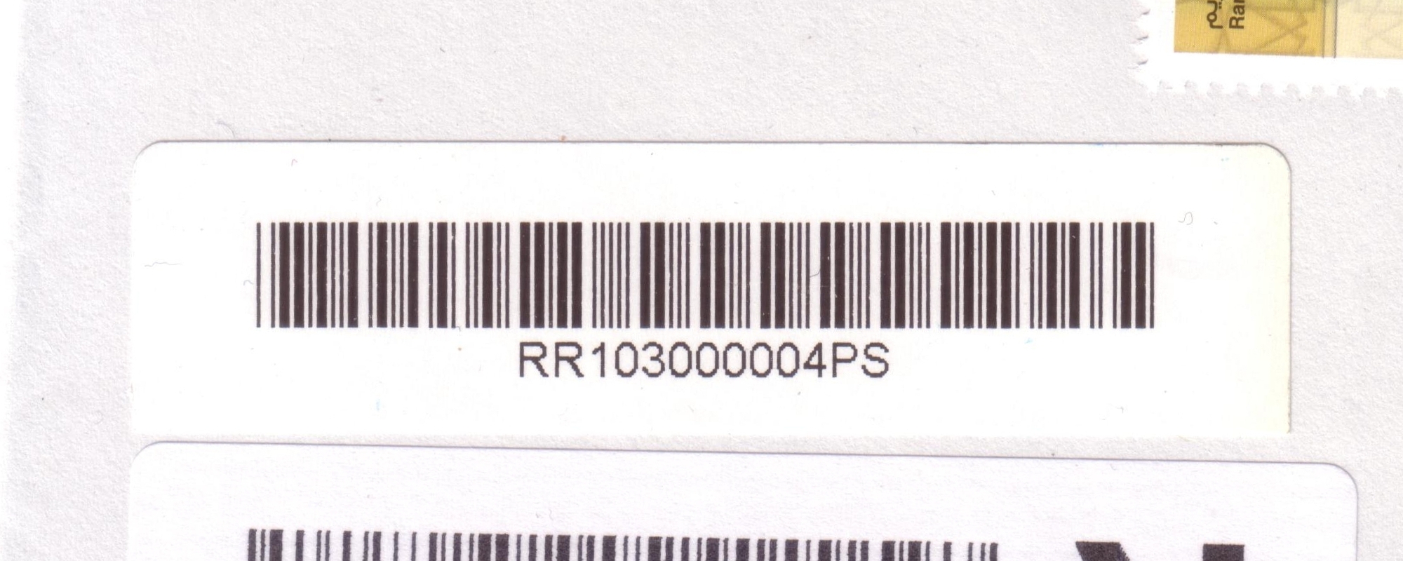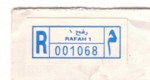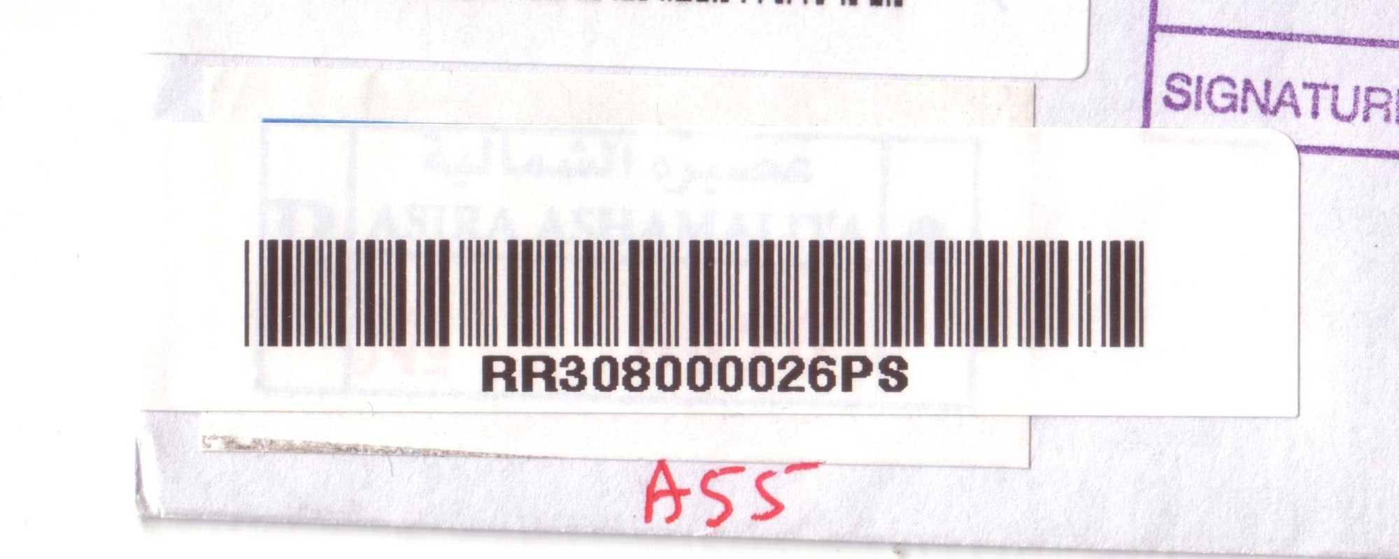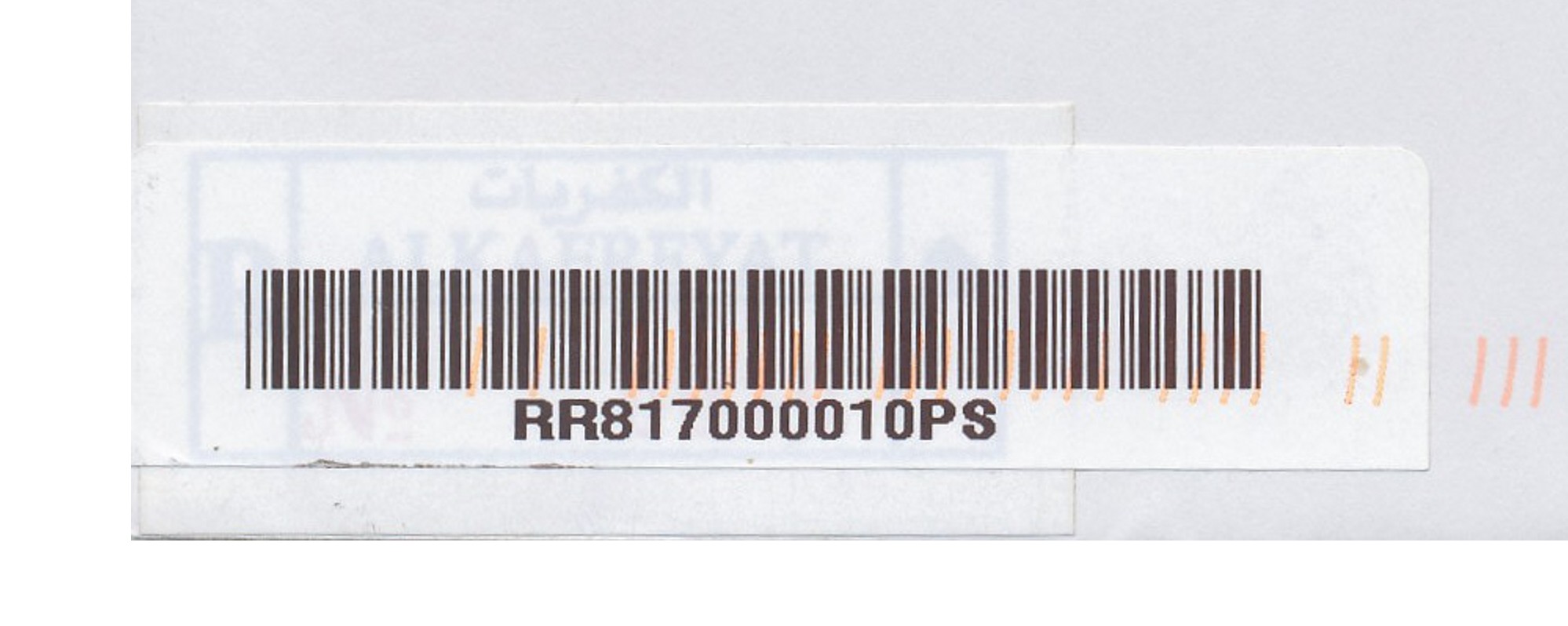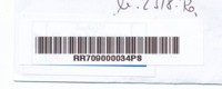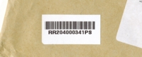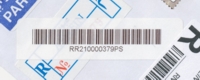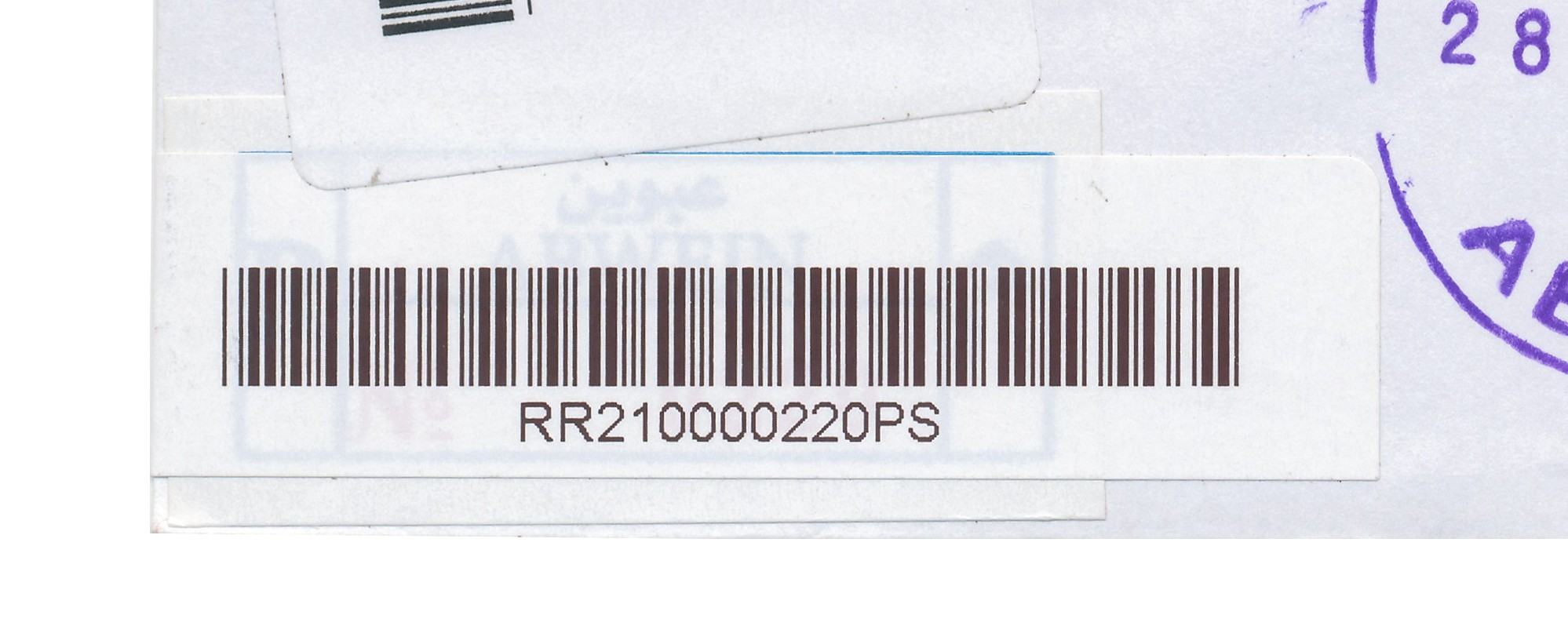 - white self-adhesive labels, printed in black. "IPS Light" linear barcode. With or without "Palestine Post" on top of imprinted numerator (9 digits) with prefixed RR and suffixed PS or ps. Label size varies.