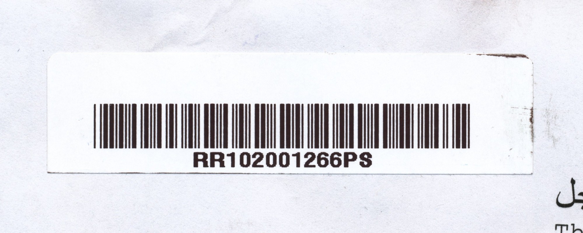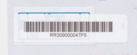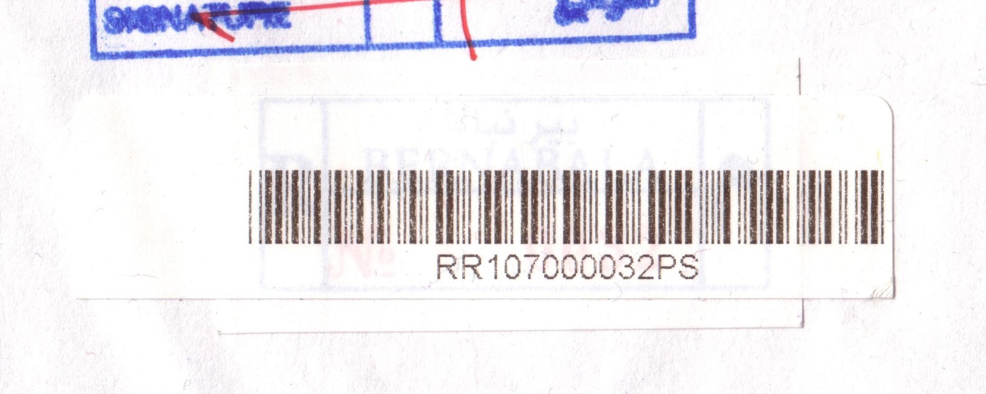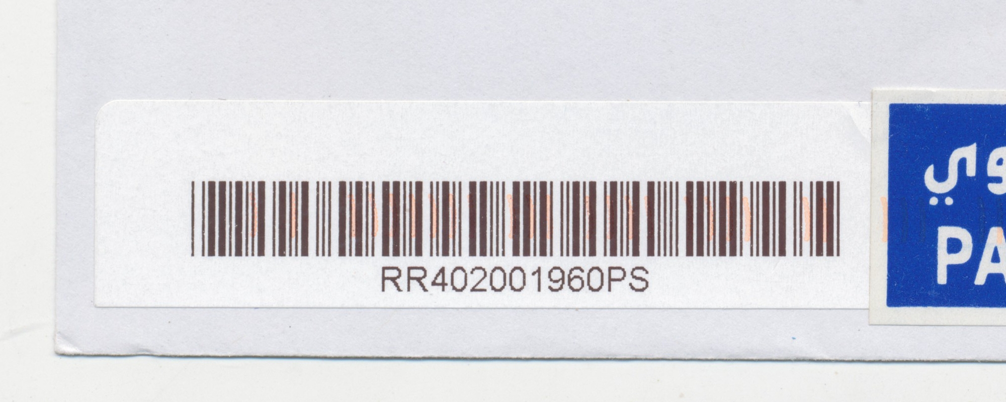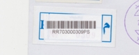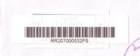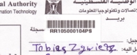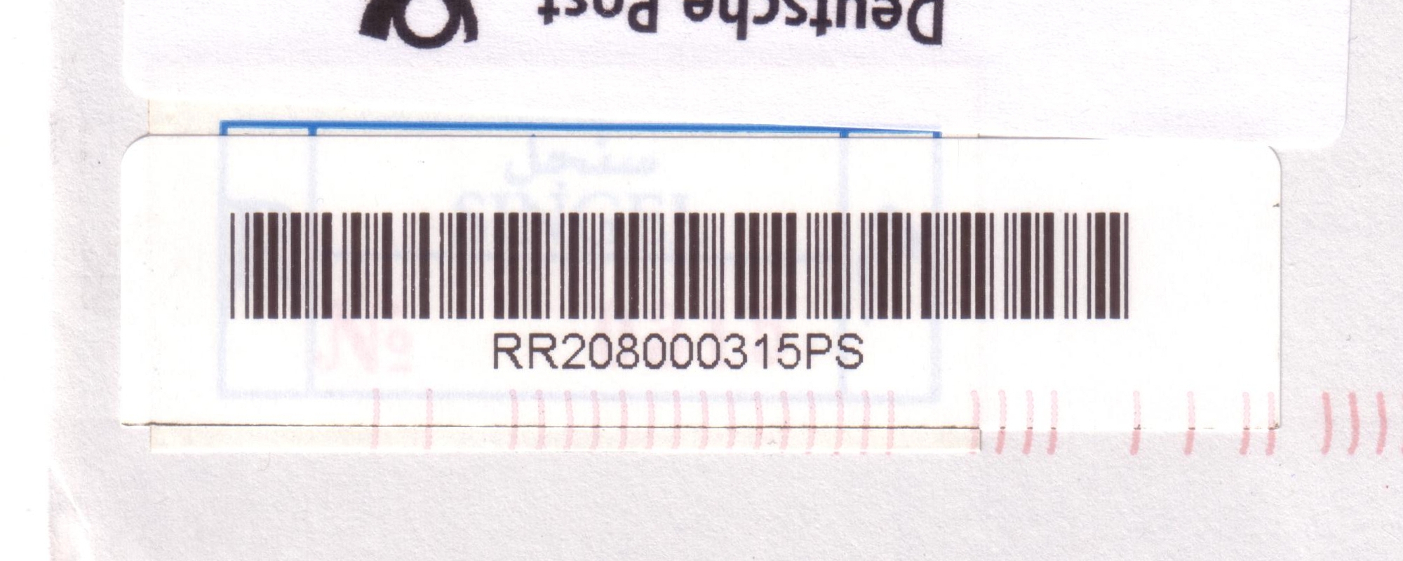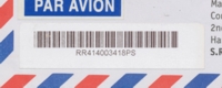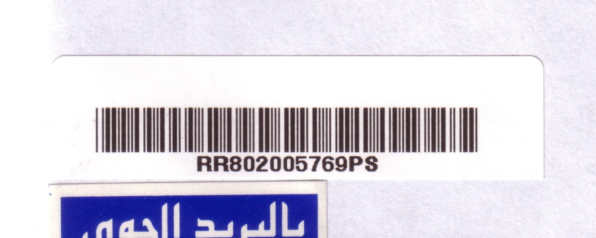 - white self-adhesive labels, printed in black. "IPS Light" linear barcode. With or without "Palestine Post" on top of imprinted numerator (9 digits) with prefixed RR and suffixed PS or ps. Label size varies.