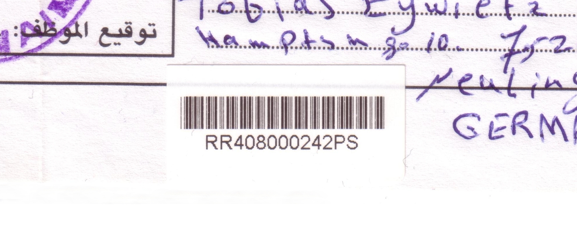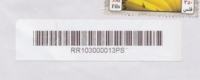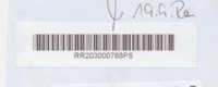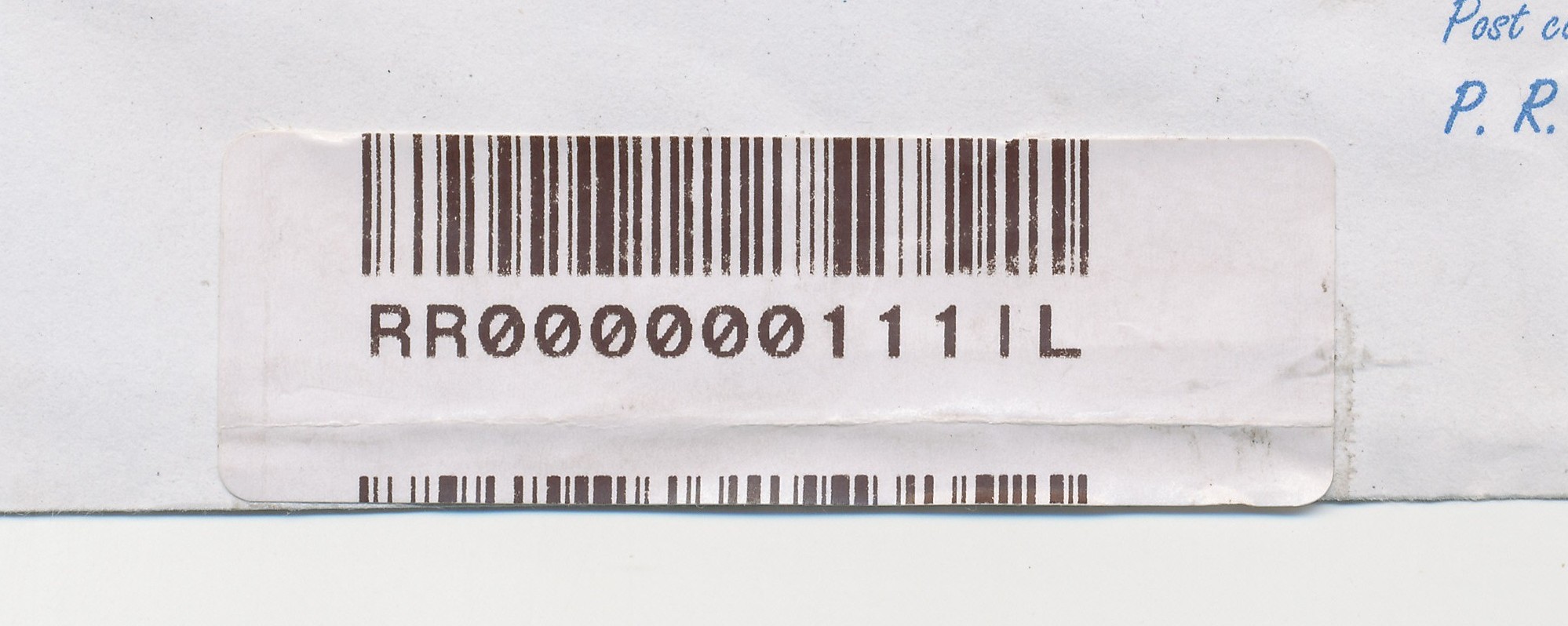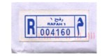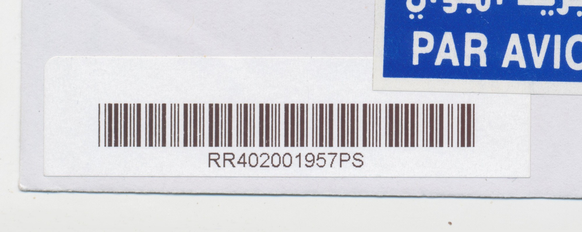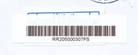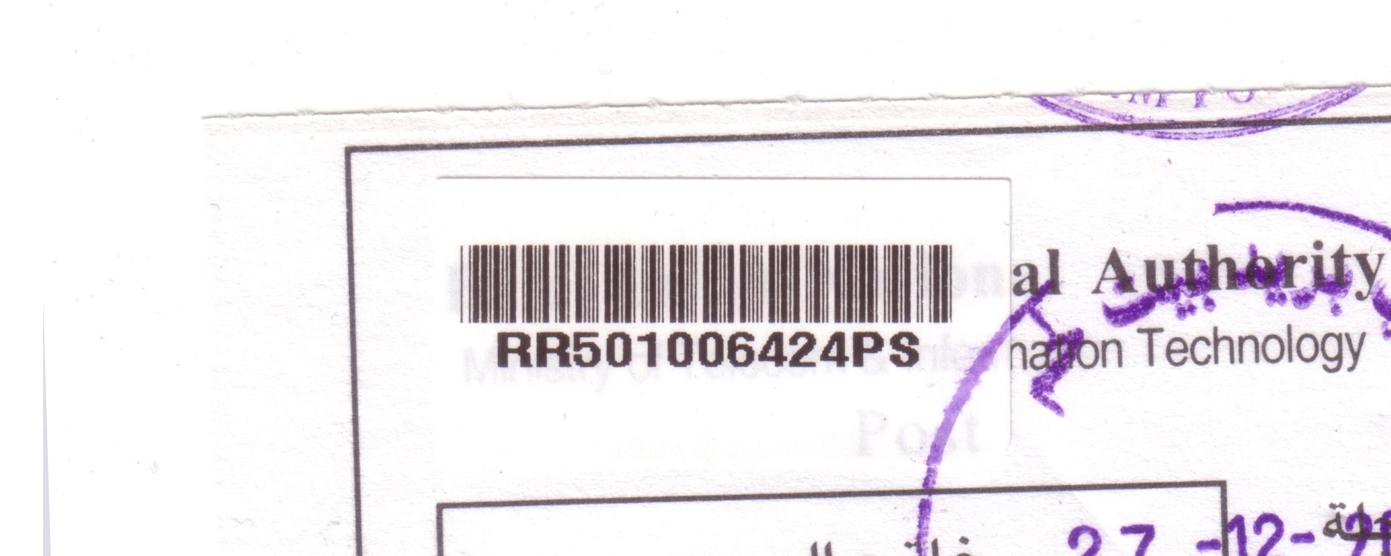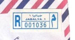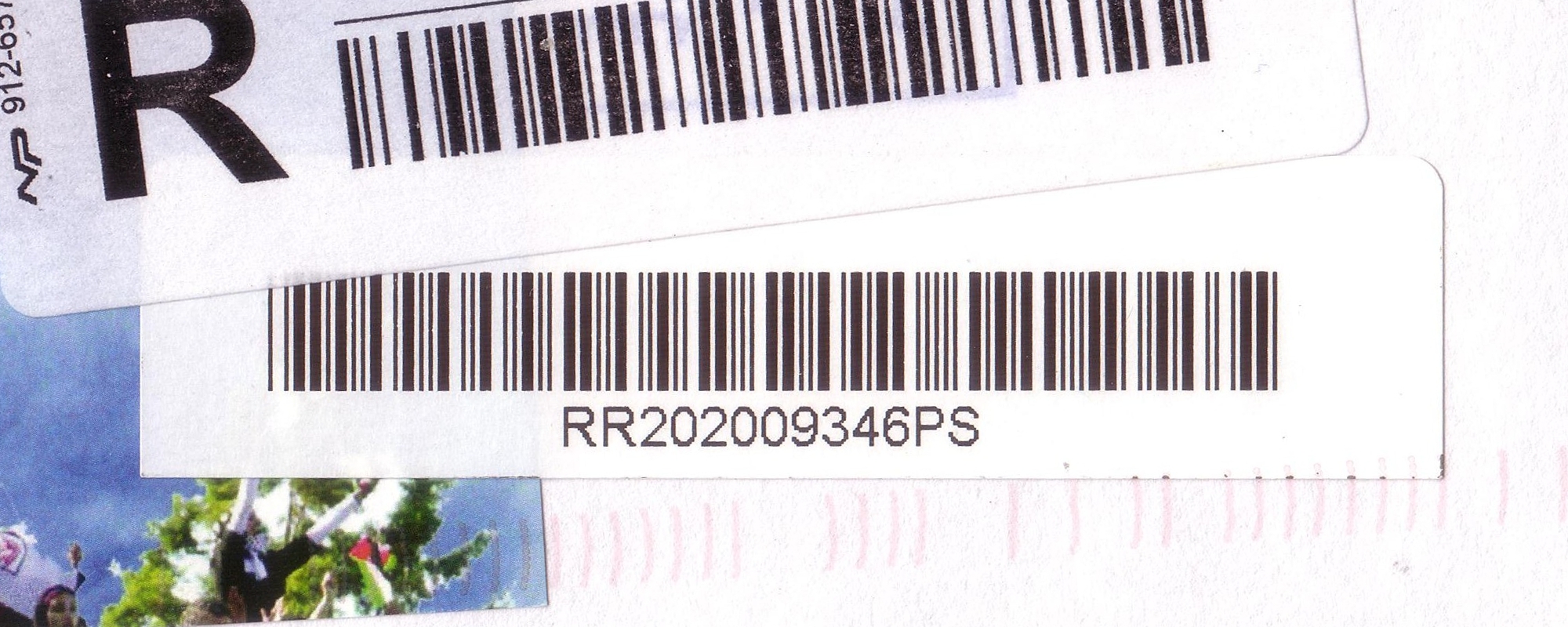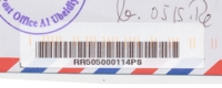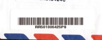 - white self-adhesive labels, printed in black. "IPS Light" linear barcode. With or without "Palestine Post" on top of imprinted numerator (9 digits) with prefixed RR and suffixed PS or ps. Label size varies.