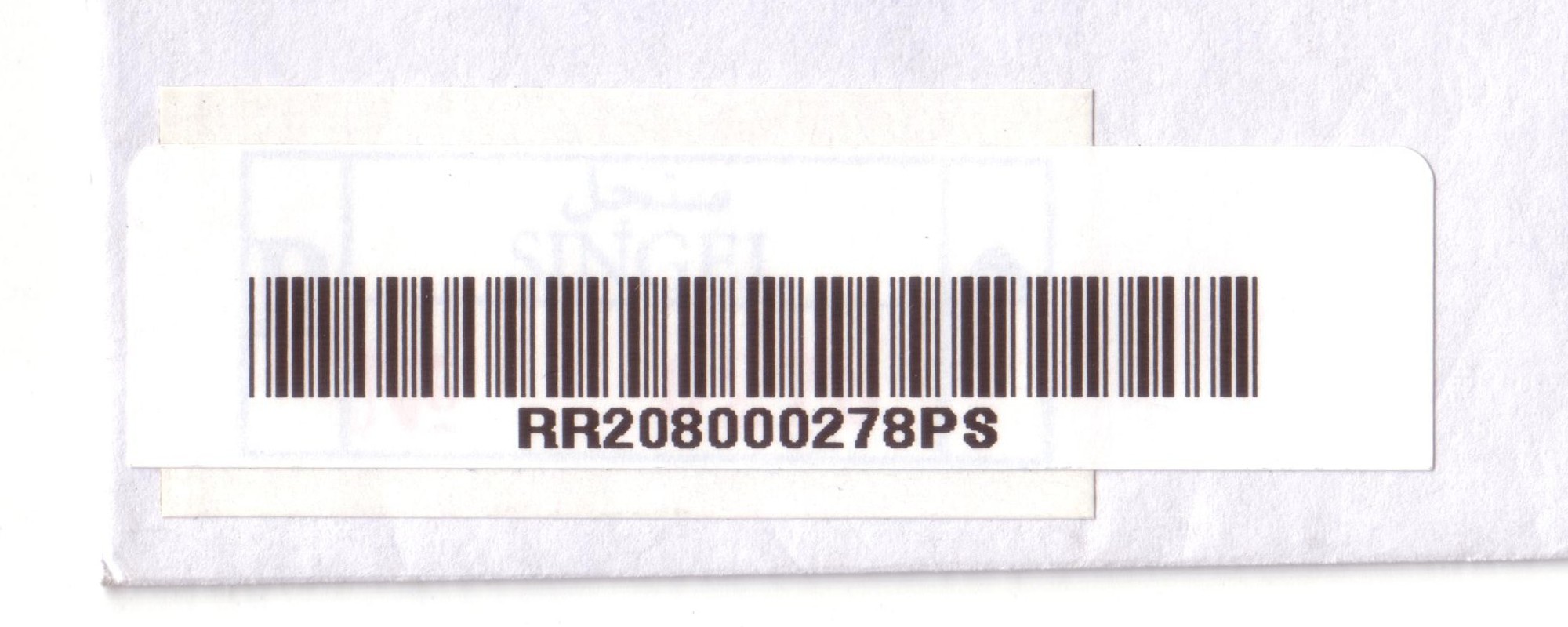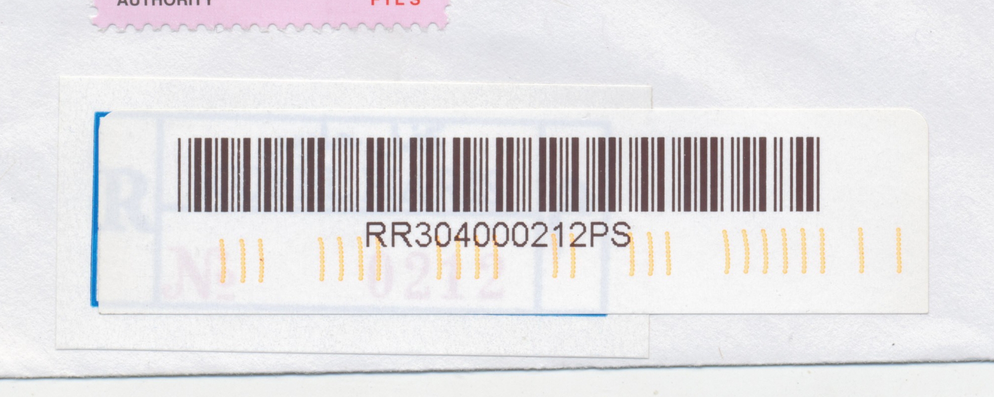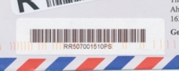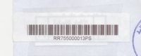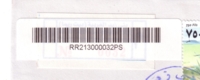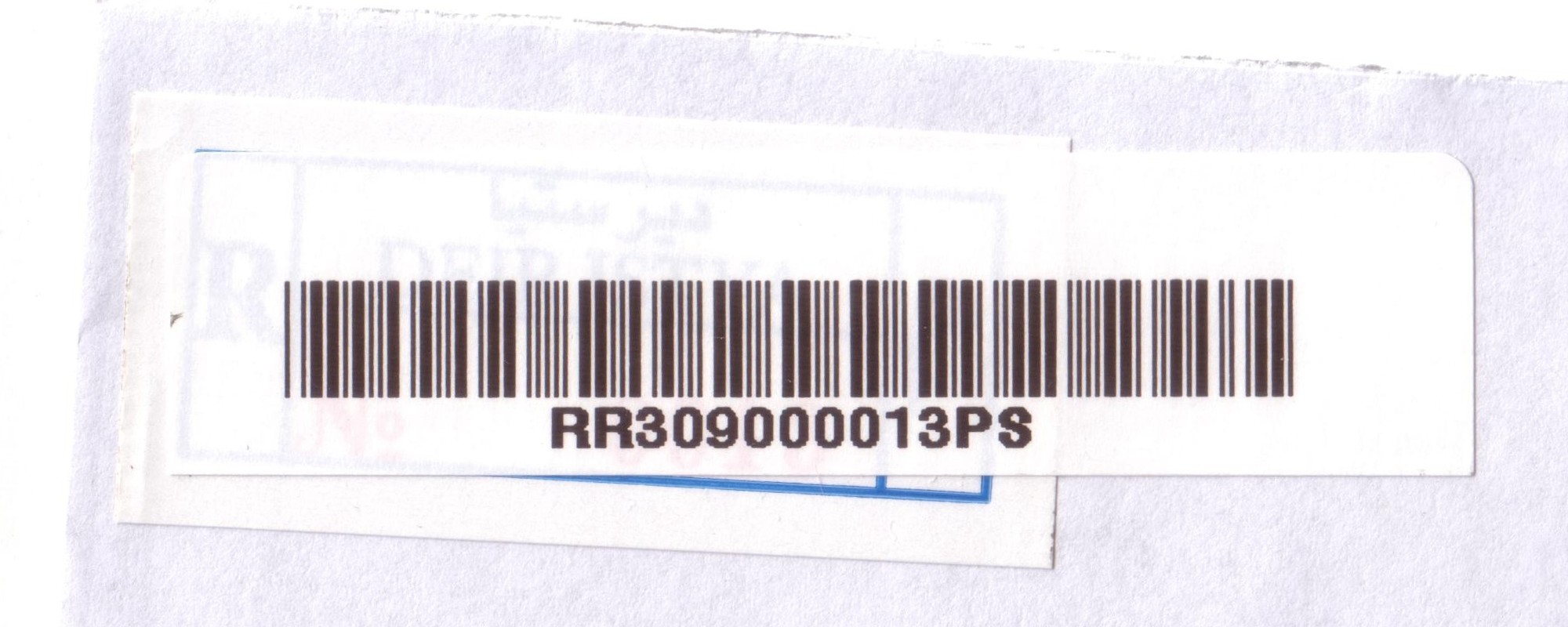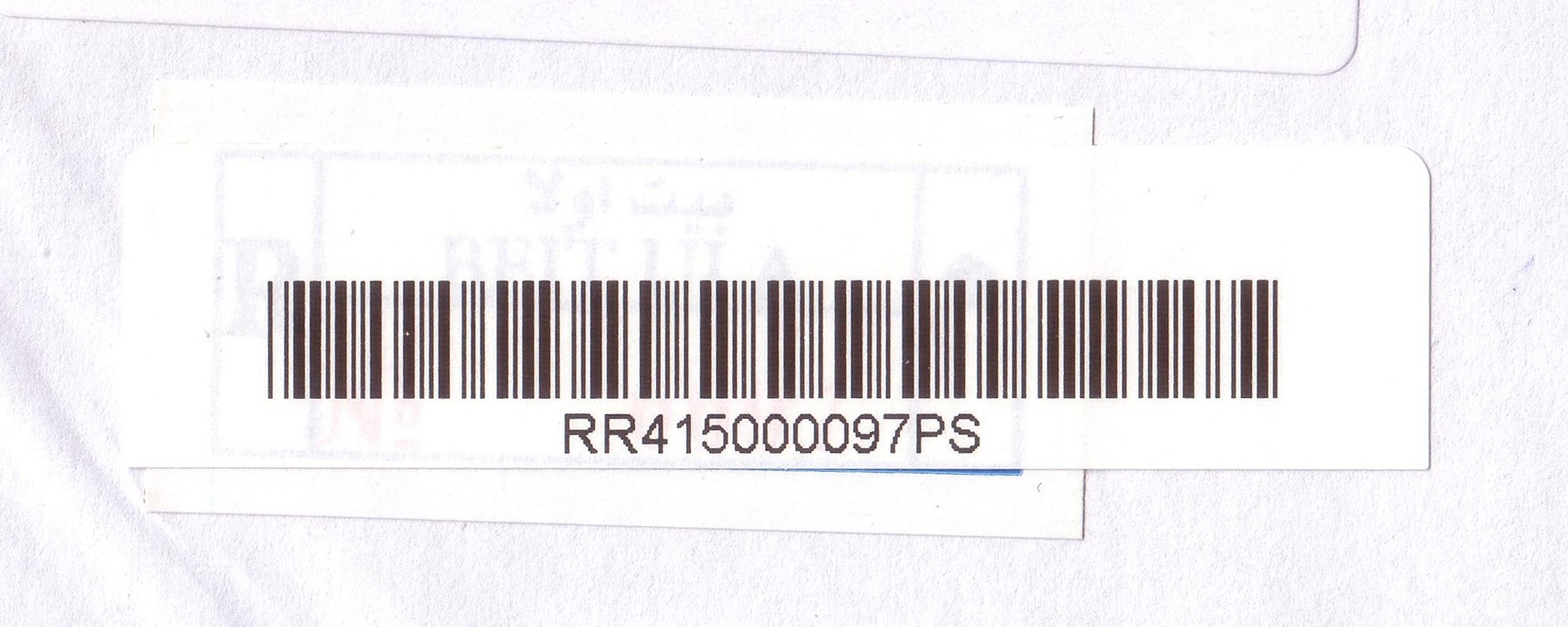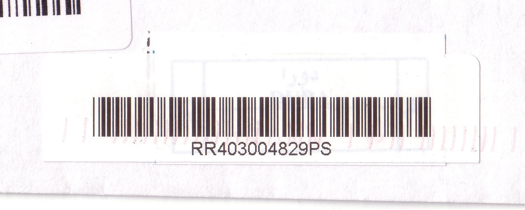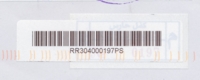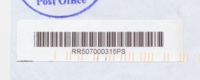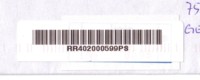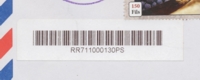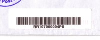 - white self-adhesive labels, printed in black. "IPS Light" linear barcode. With or without "Palestine Post" on top of imprinted numerator (9 digits) with prefixed RR and suffixed PS or ps. Label size varies.