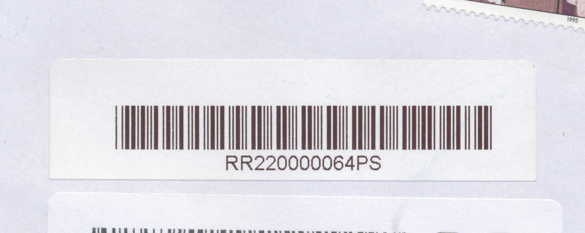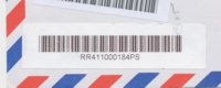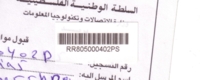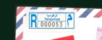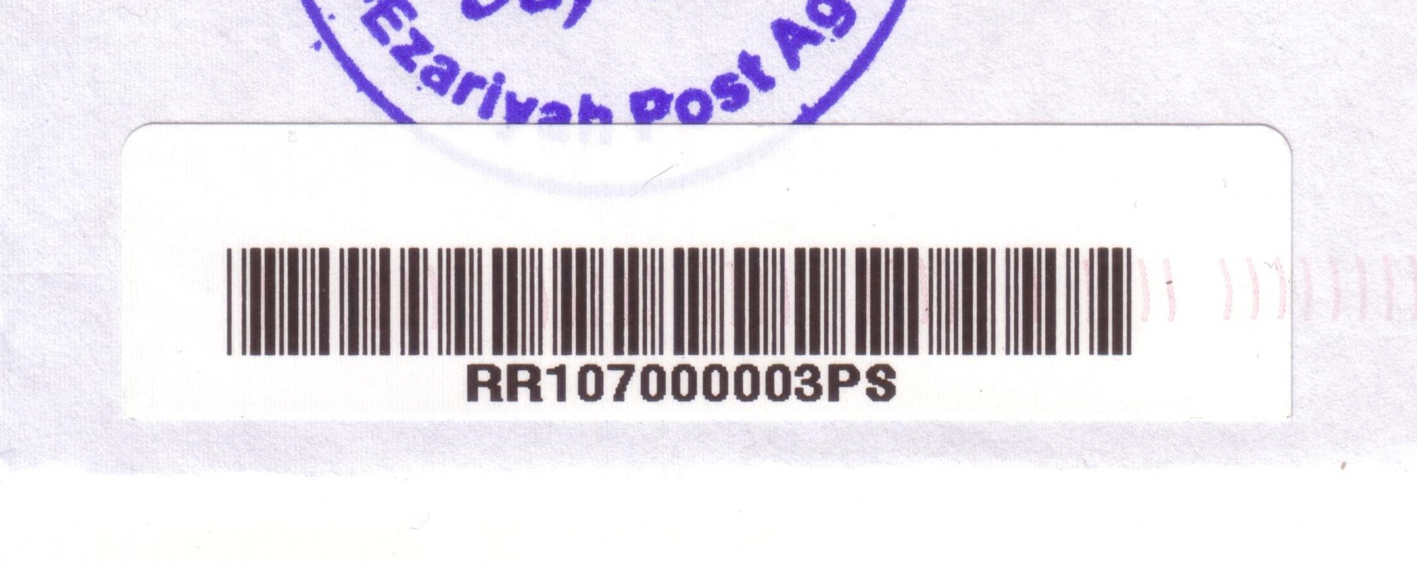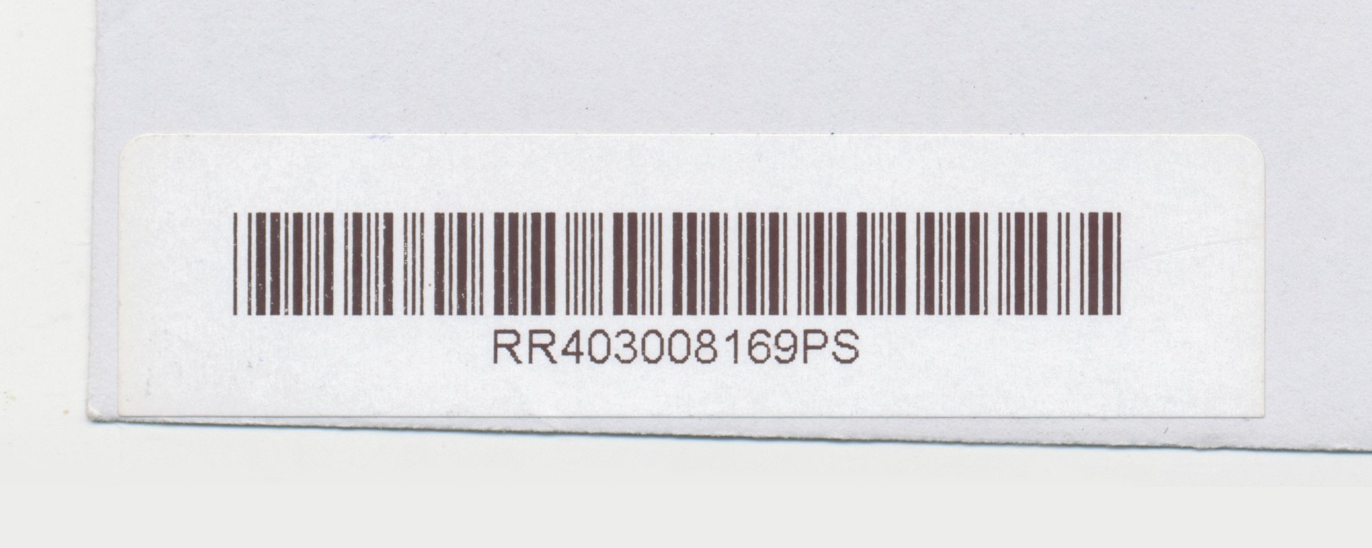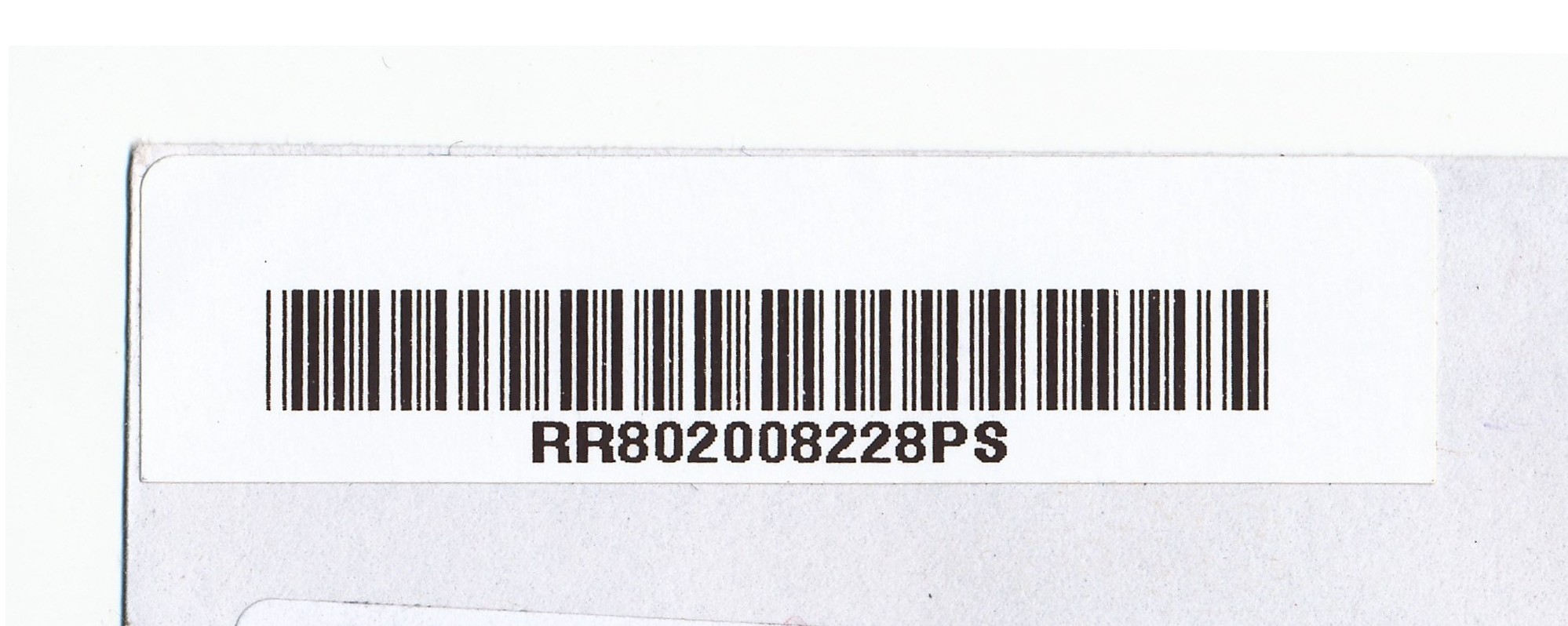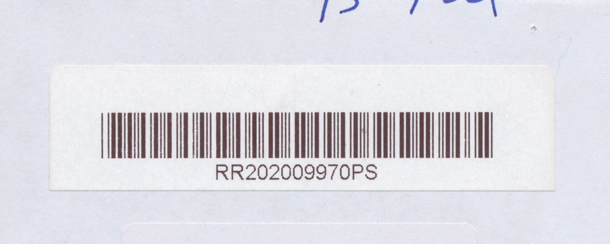 - white self-adhesive labels, printed in black. "IPS Light" linear barcode. With or without "Palestine Post" on top of imprinted numerator (9 digits) with prefixed RR and suffixed PS or ps. Label size varies.