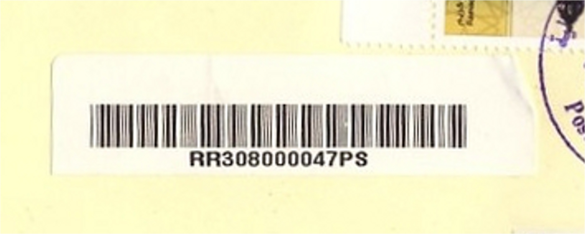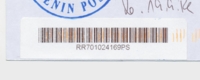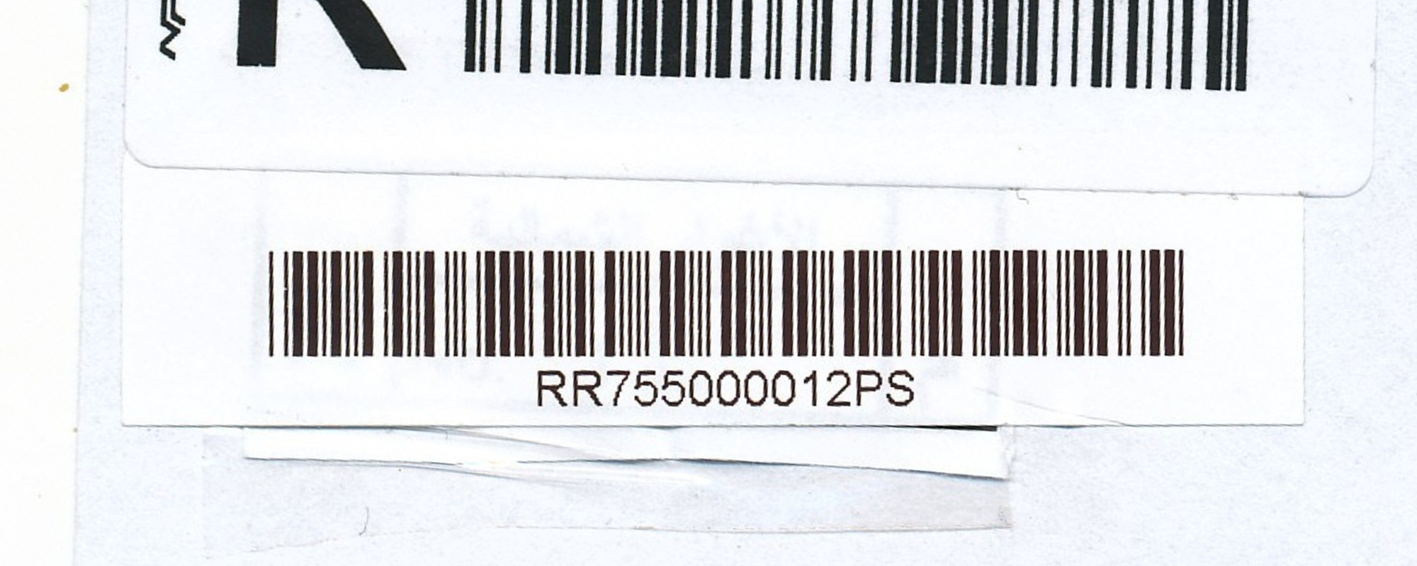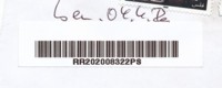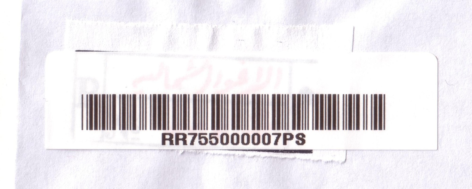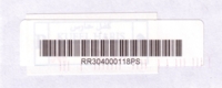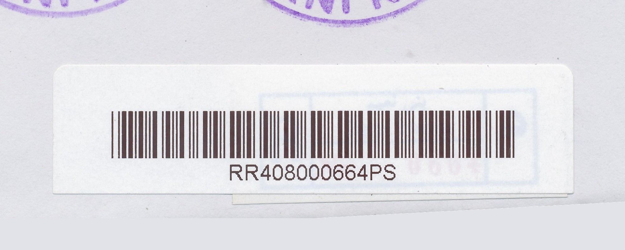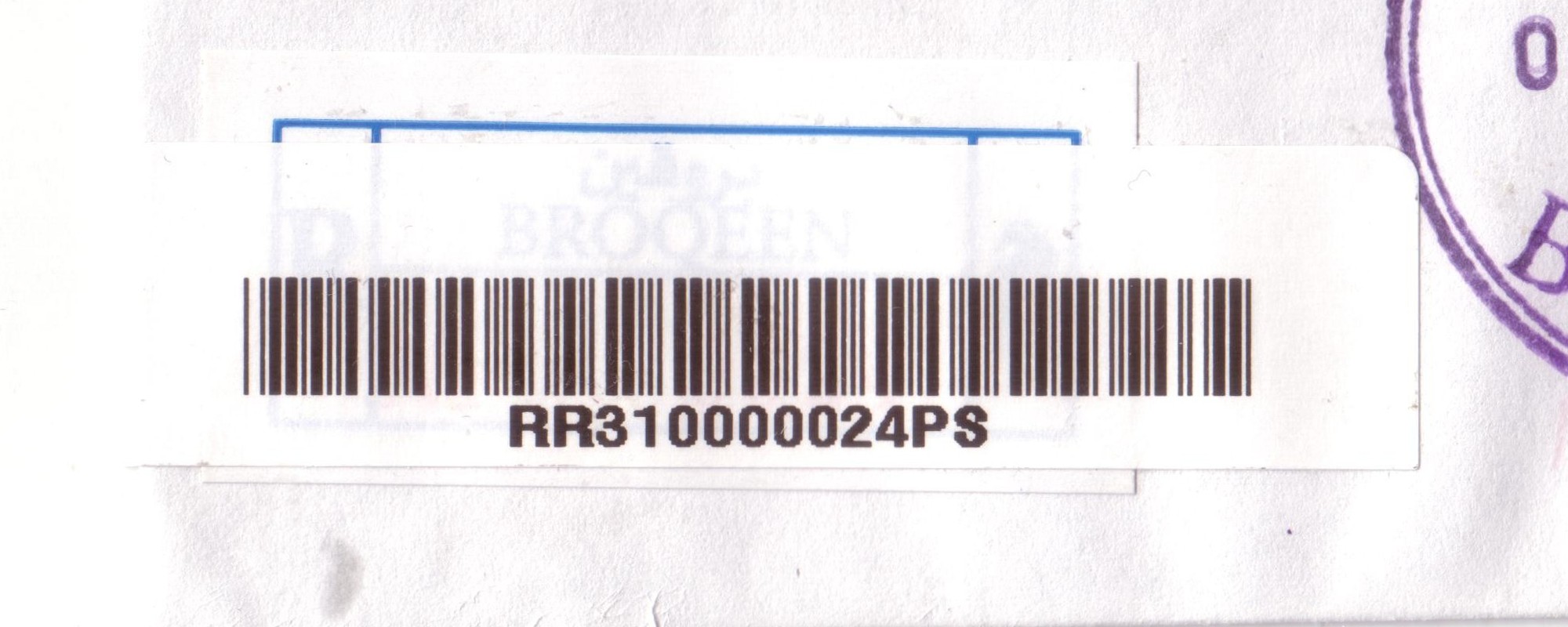 - white self-adhesive labels, printed in black. "IPS Light" linear barcode. With or without "Palestine Post" on top of imprinted numerator (9 digits) with prefixed RR and suffixed PS or ps. Label size varies.