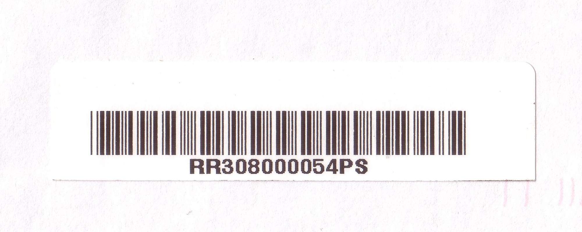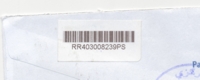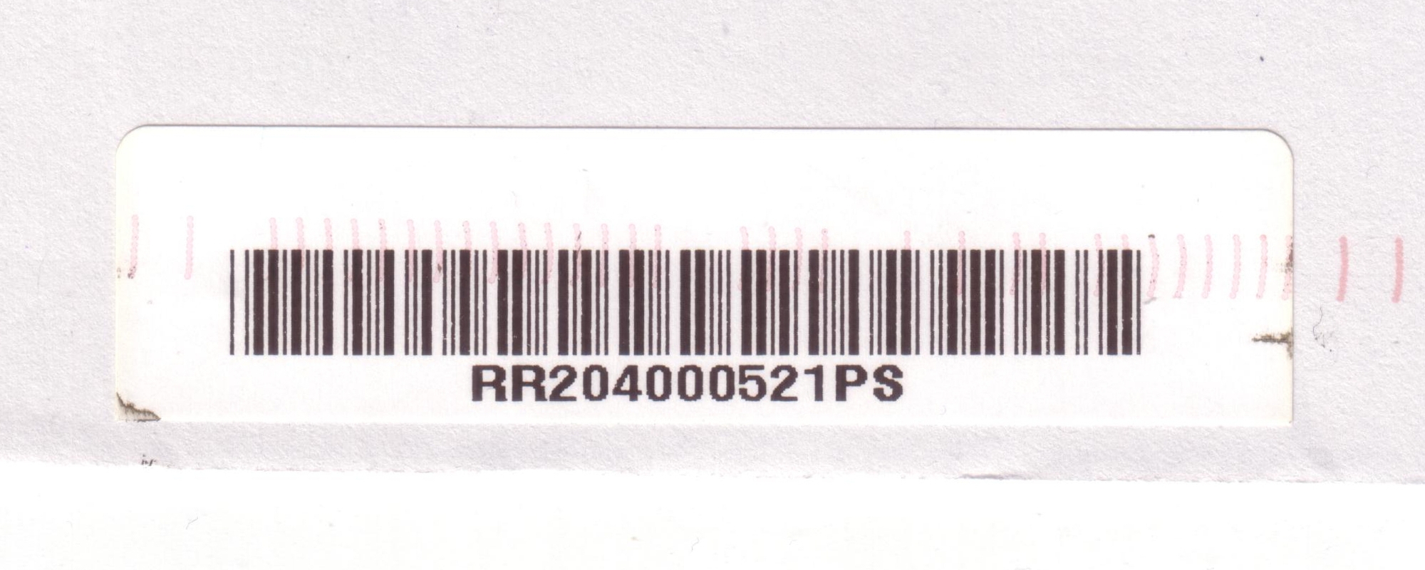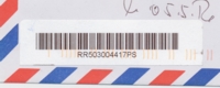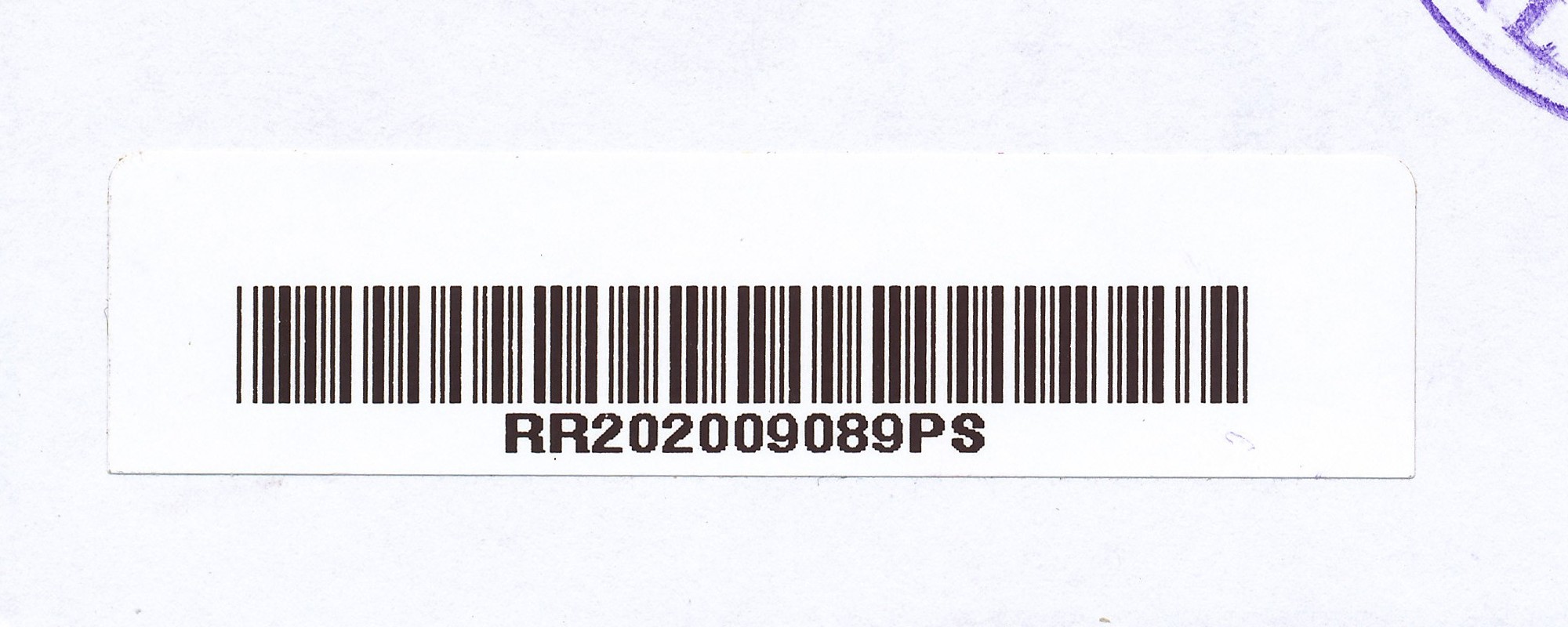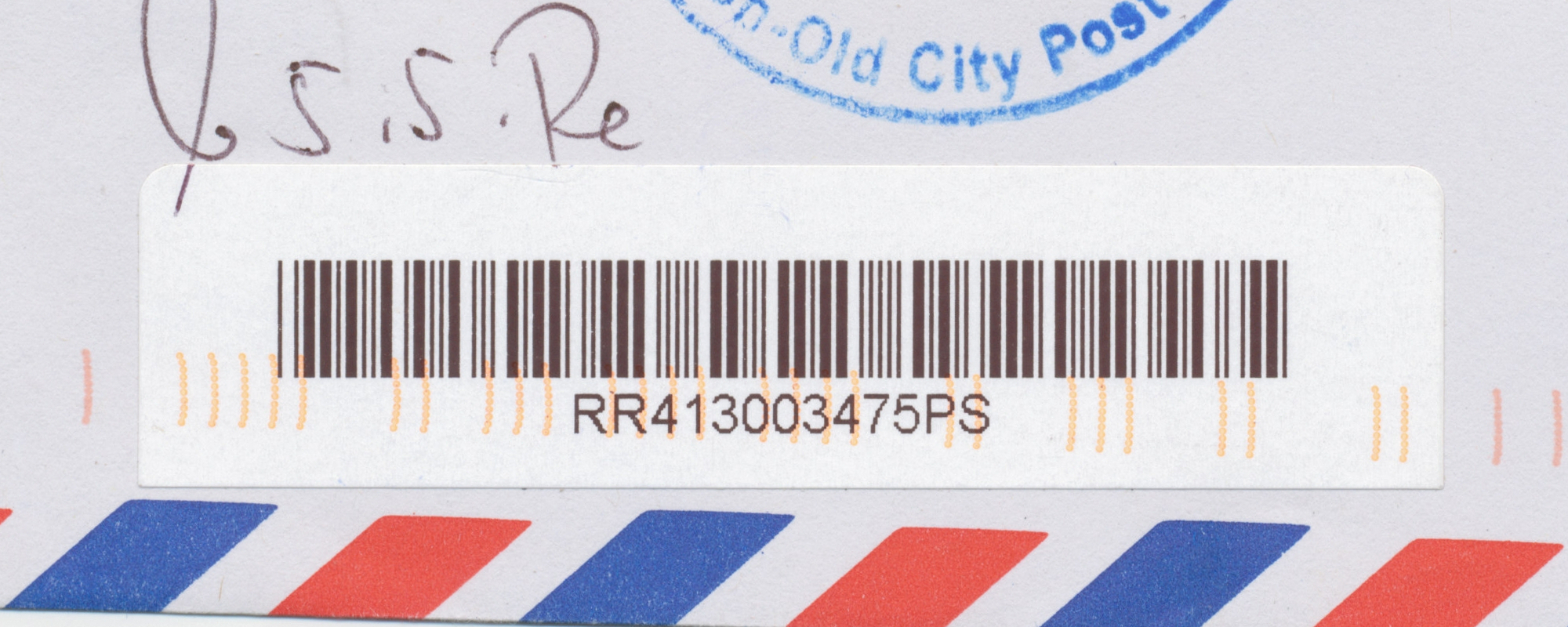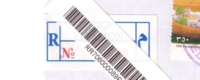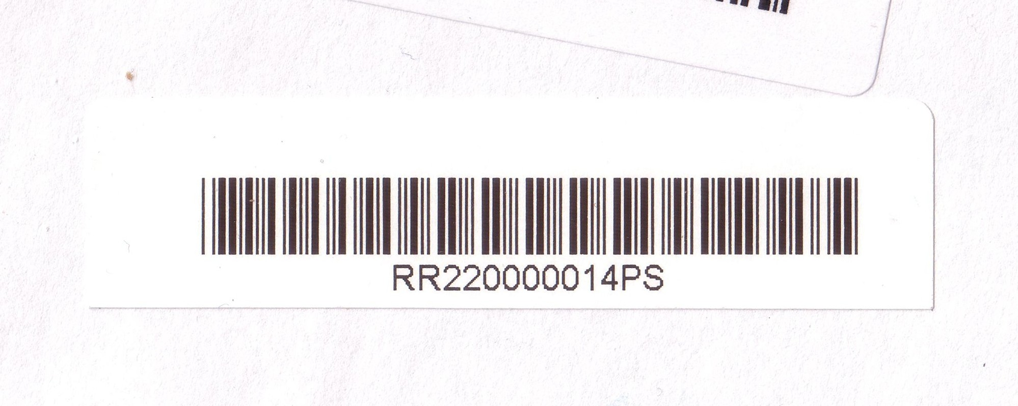 - white self-adhesive labels, printed in black. "IPS Light" linear barcode. With or without "Palestine Post" on top of imprinted numerator (9 digits) with prefixed RR and suffixed PS or ps. Label size varies.