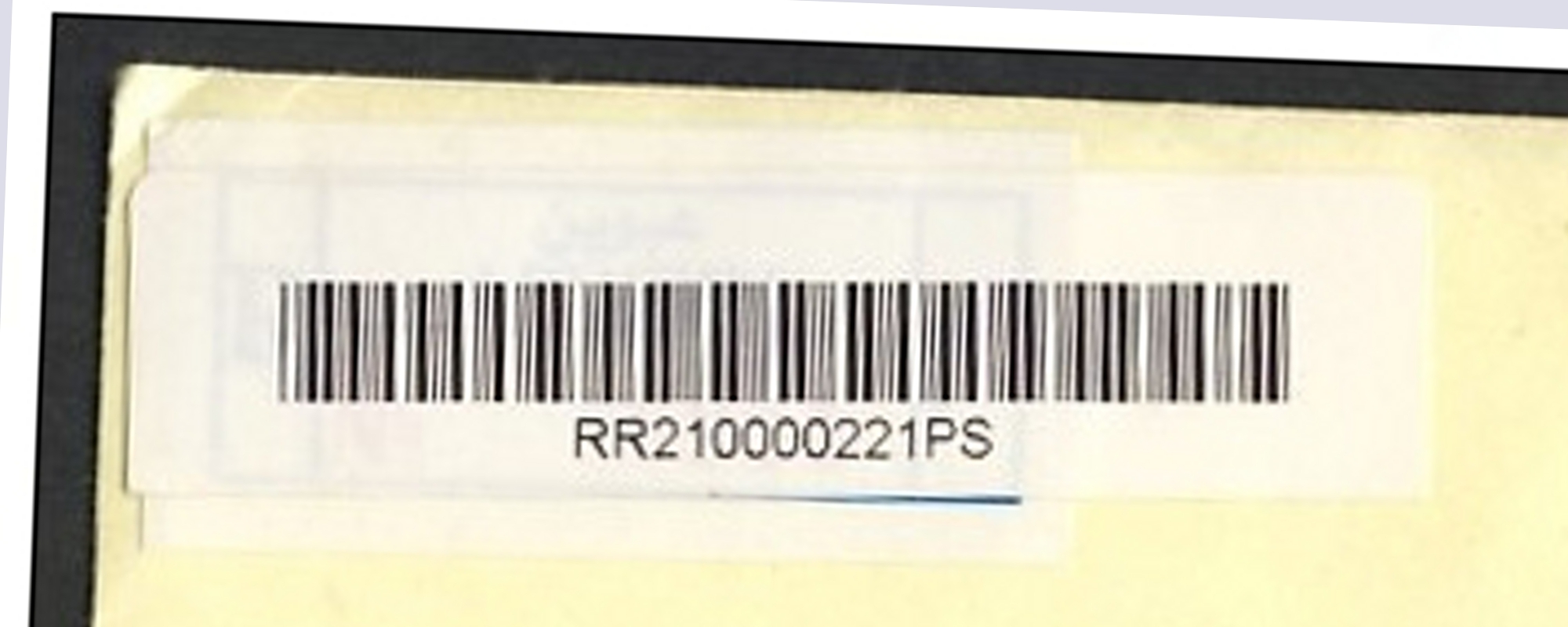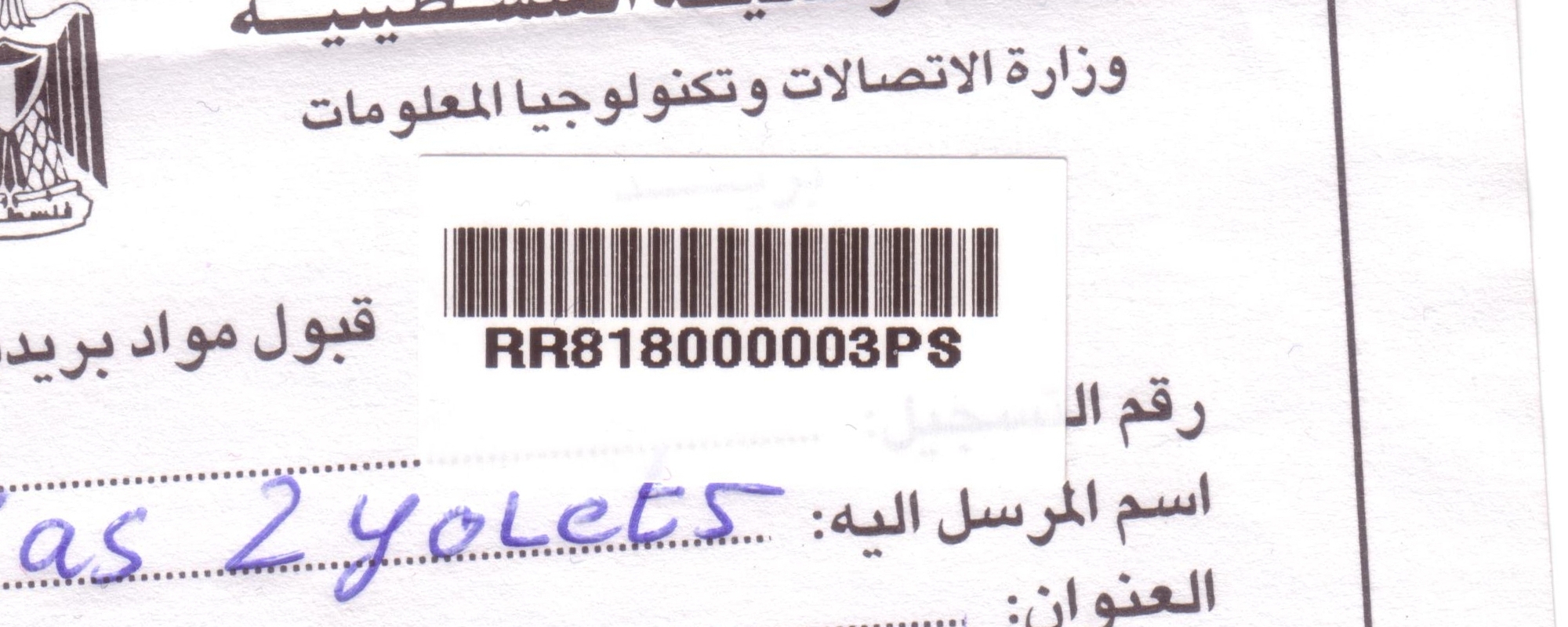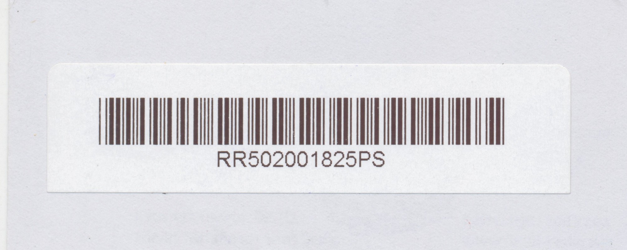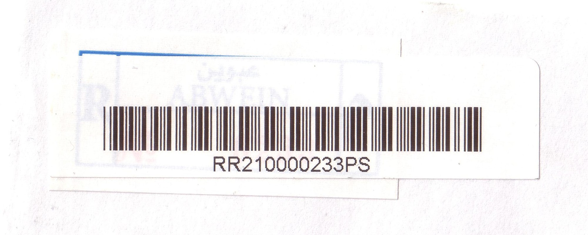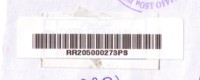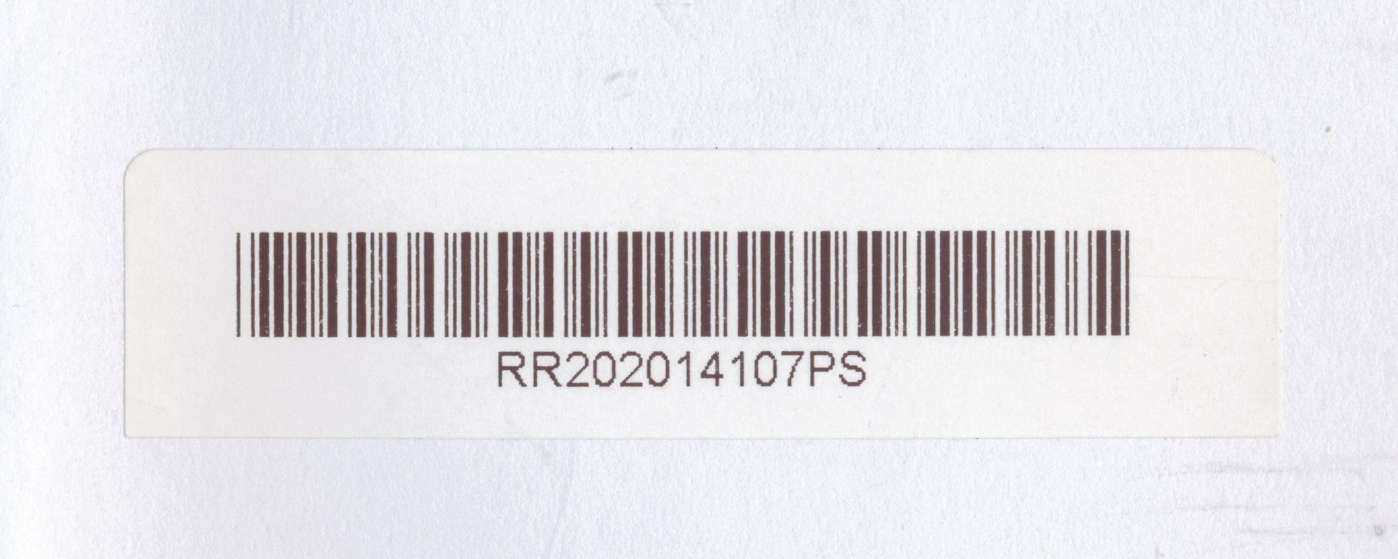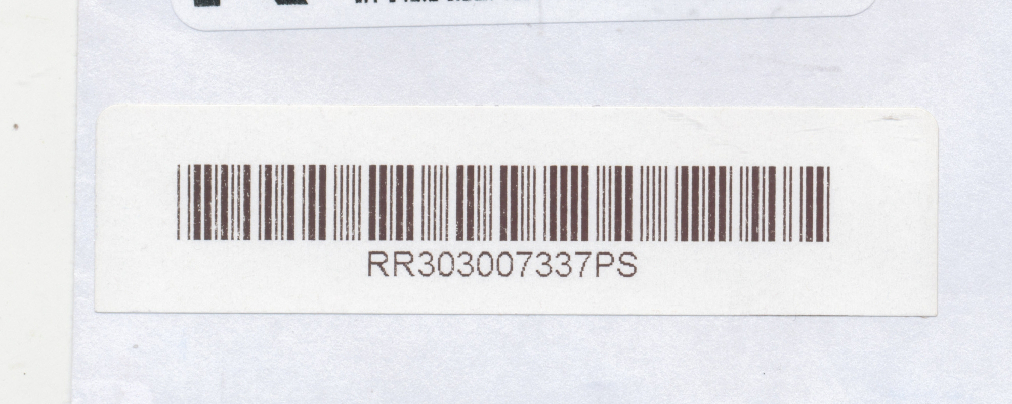 - white self-adhesive labels, printed in black. "IPS Light" linear barcode. With or without "Palestine Post" on top of imprinted numerator (9 digits) with prefixed RR and suffixed PS or ps. Label size varies.