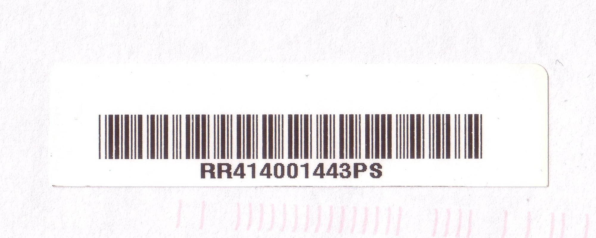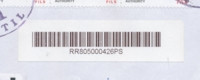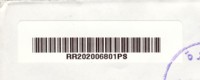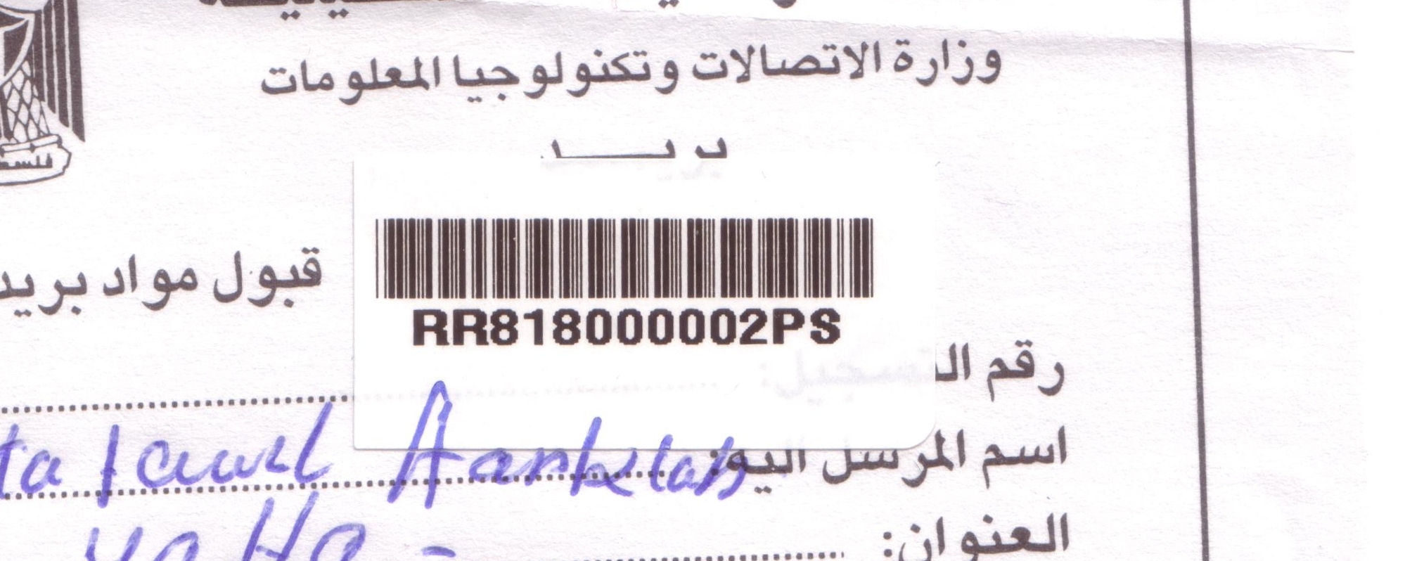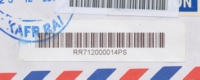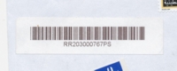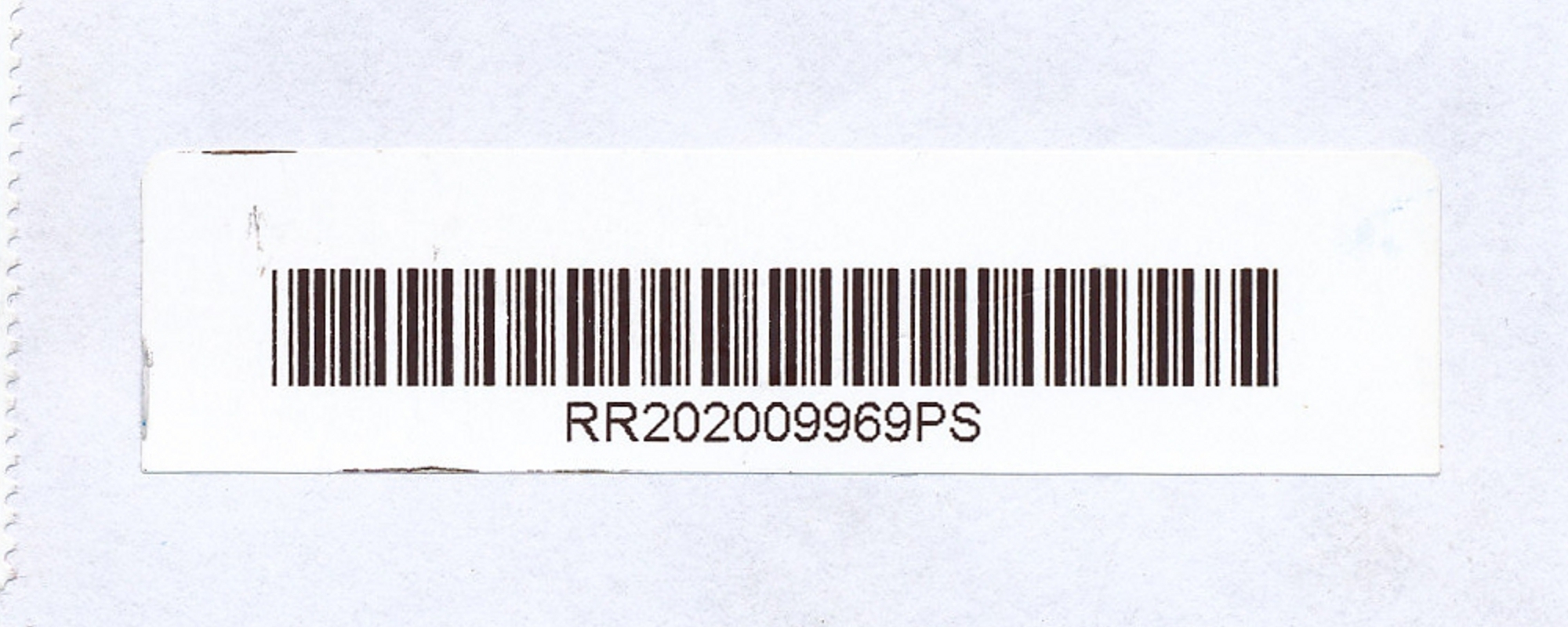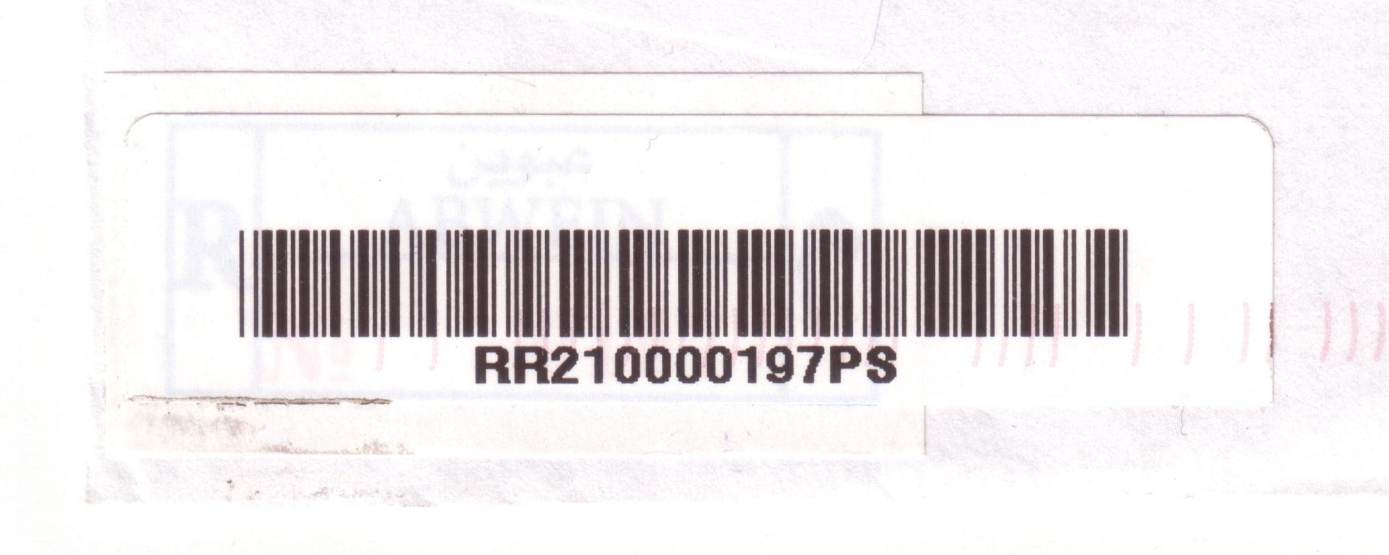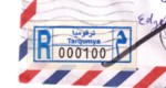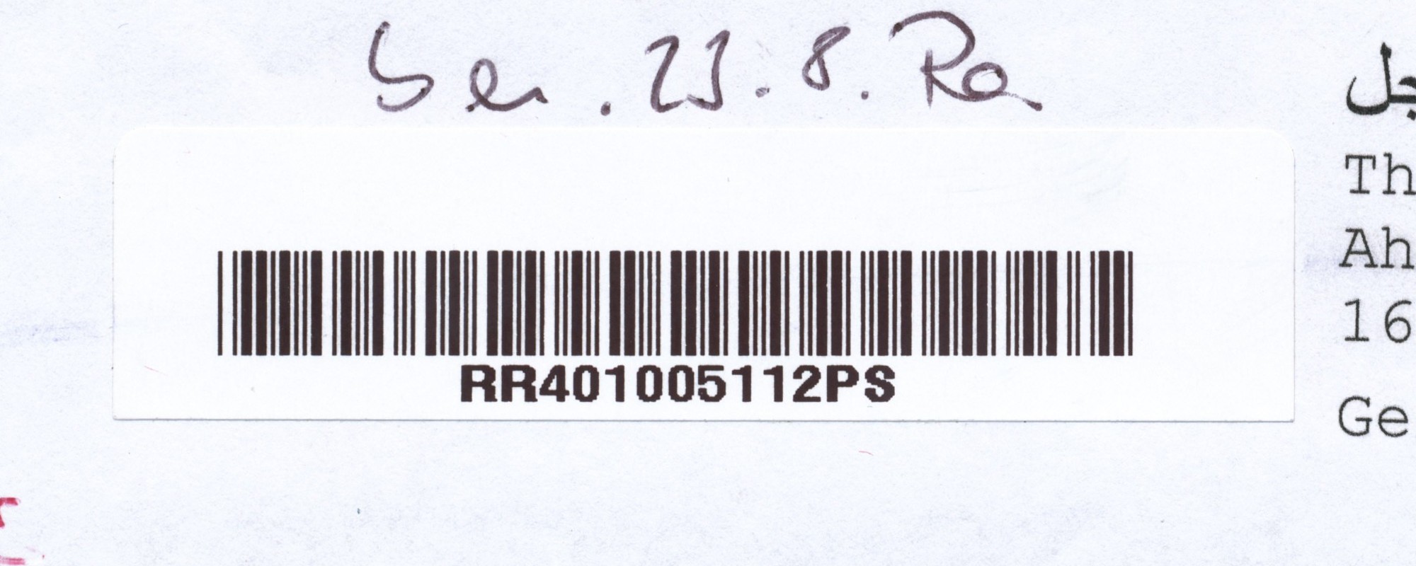 - white self-adhesive labels, printed in black. "IPS Light" linear barcode. With or without "Palestine Post" on top of imprinted numerator (9 digits) with prefixed RR and suffixed PS or ps. Label size varies.