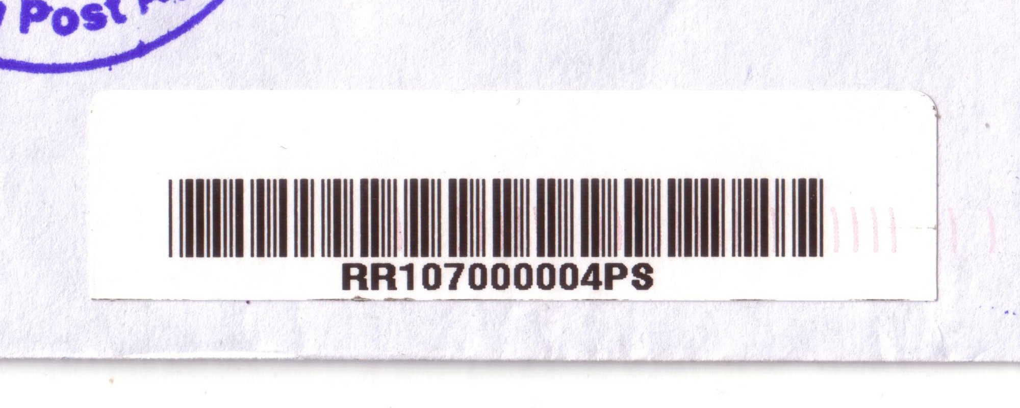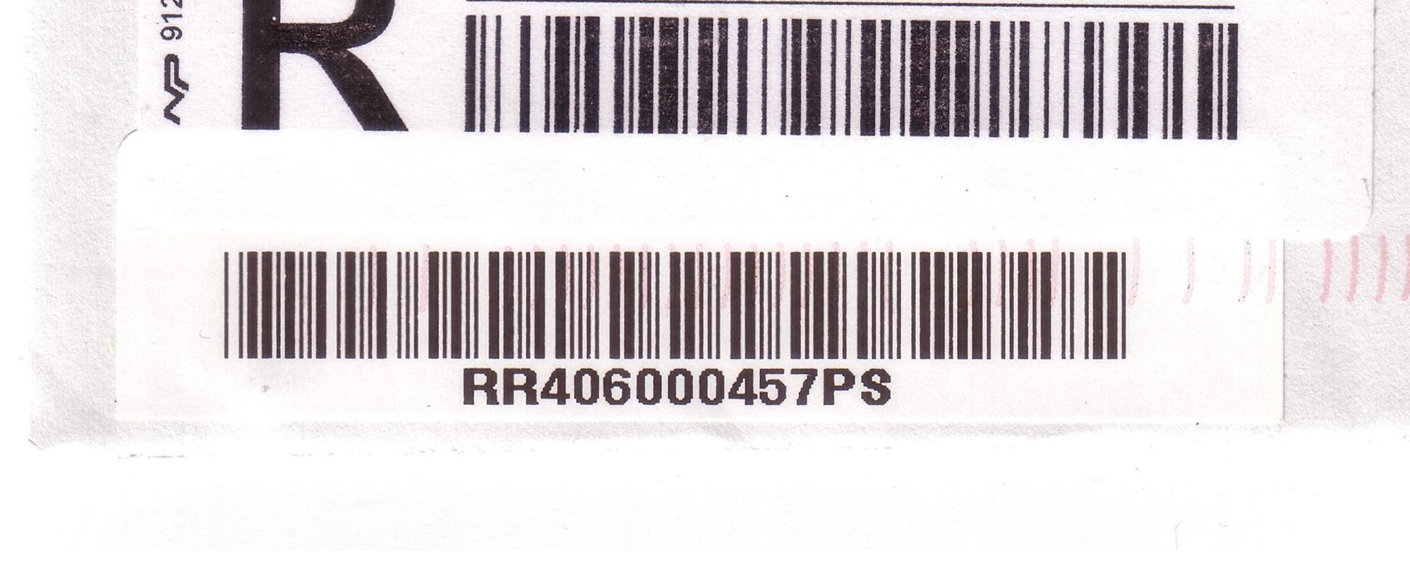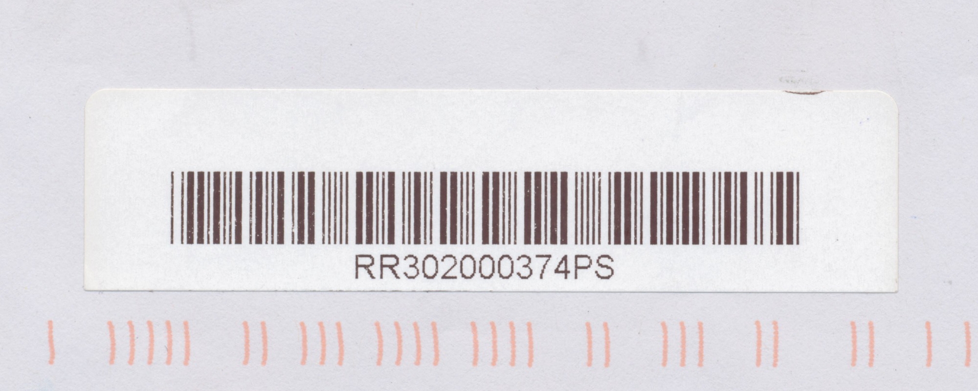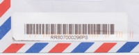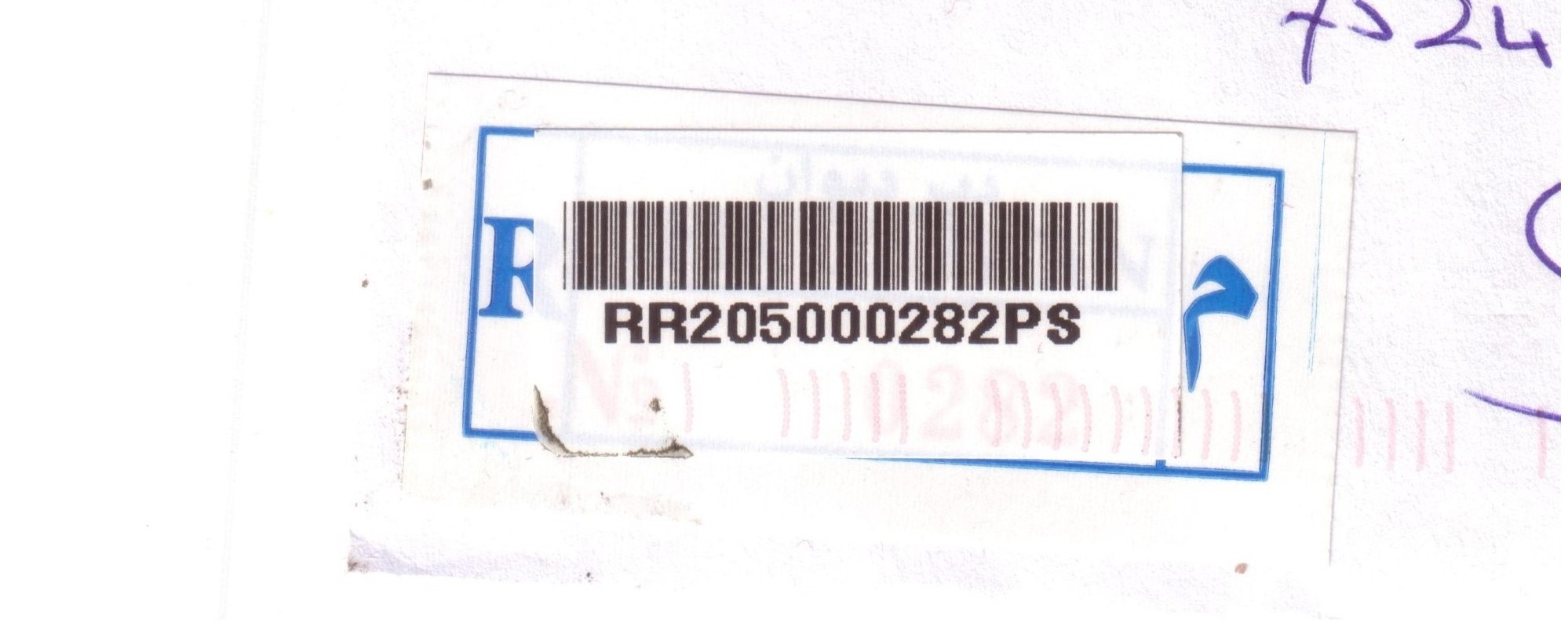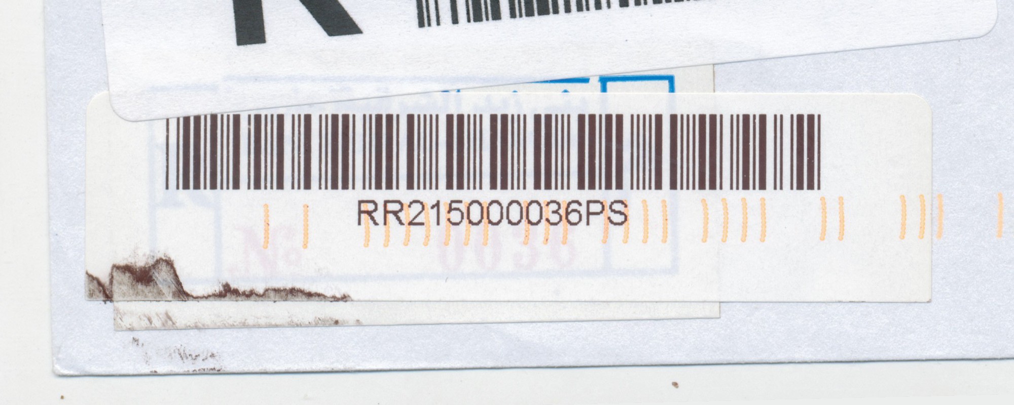 - white self-adhesive labels, printed in black. "IPS Light" linear barcode. With or without "Palestine Post" on top of imprinted numerator (9 digits) with prefixed RR and suffixed PS or ps. Label size varies.